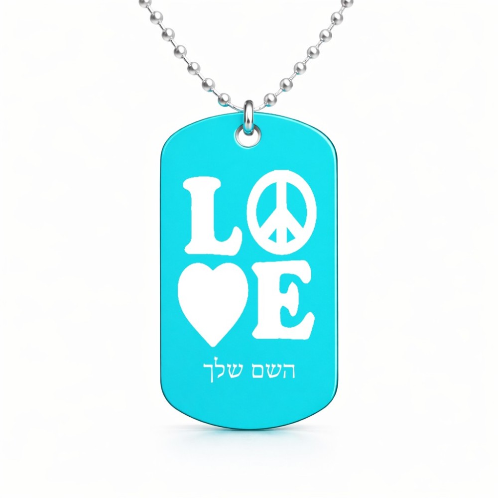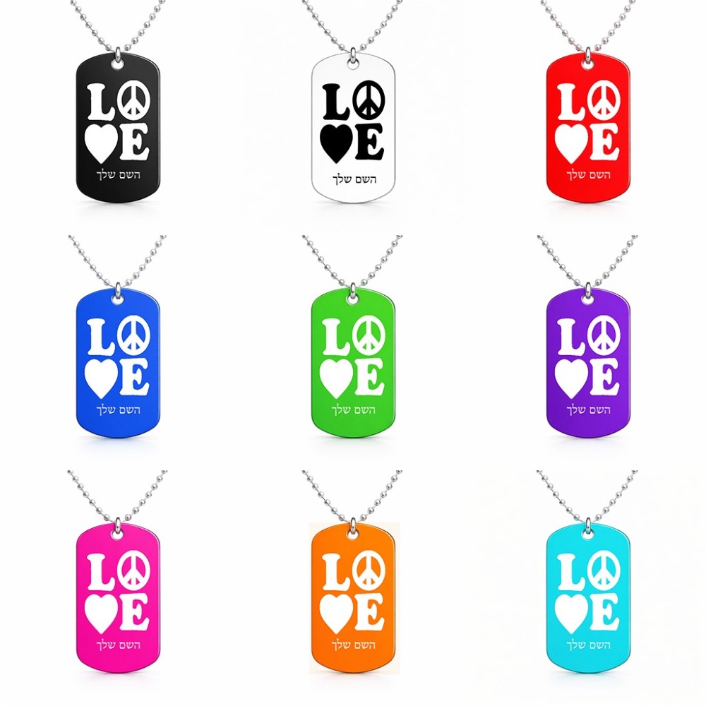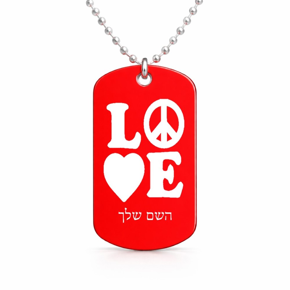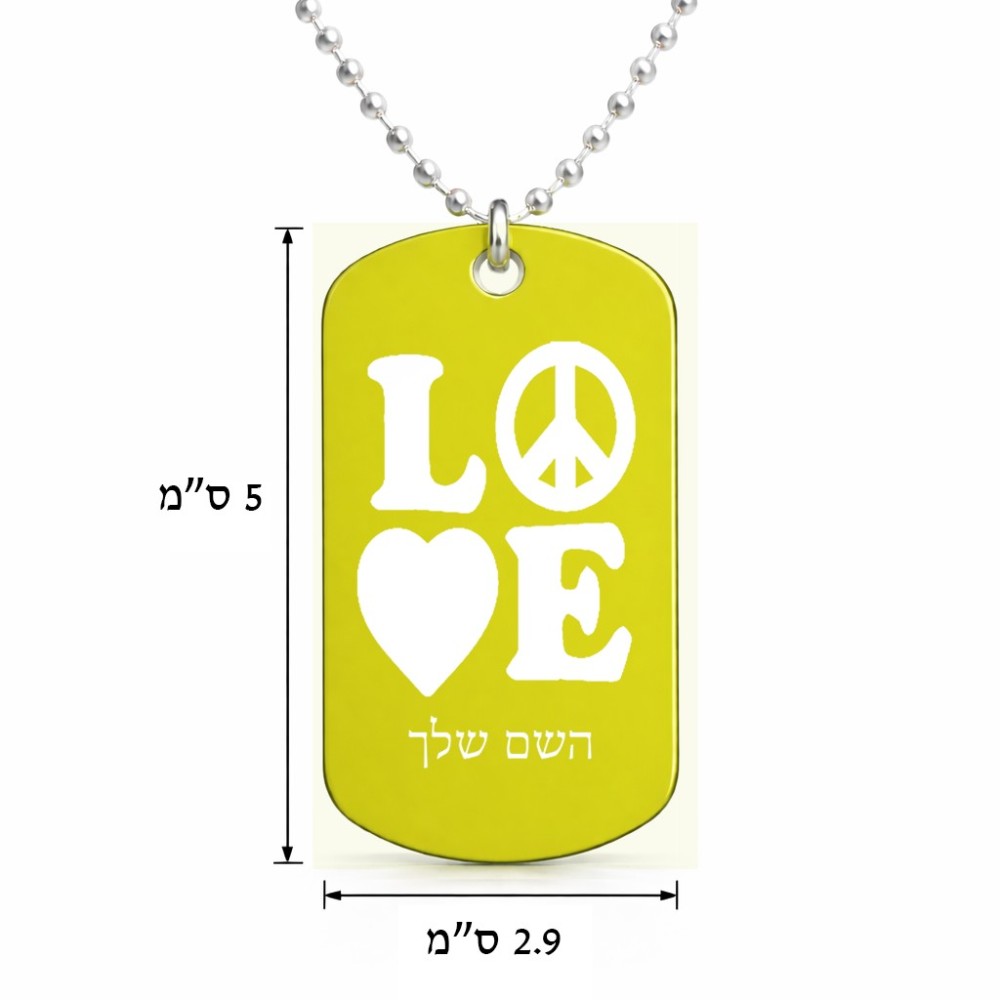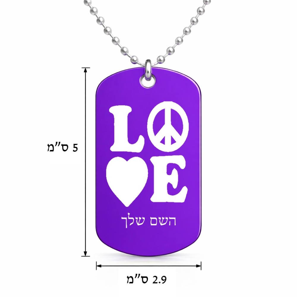 שרשרת דיסקיט מאלומיניום בעיצוב אישי עם השם שלך בעיצוב אהבה גודל הדיסקיט 2.9 × 5 ס"מ. את השם המבוקש ניתן לציין בהזמנה, אם לא צויין אנחנו ניצור קשר לבירור.