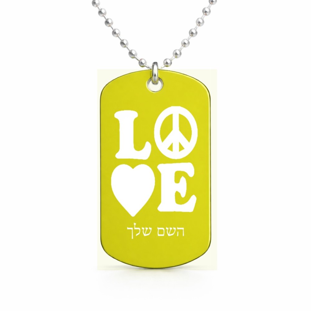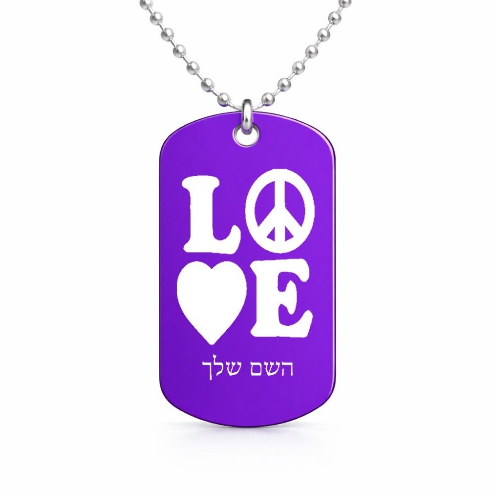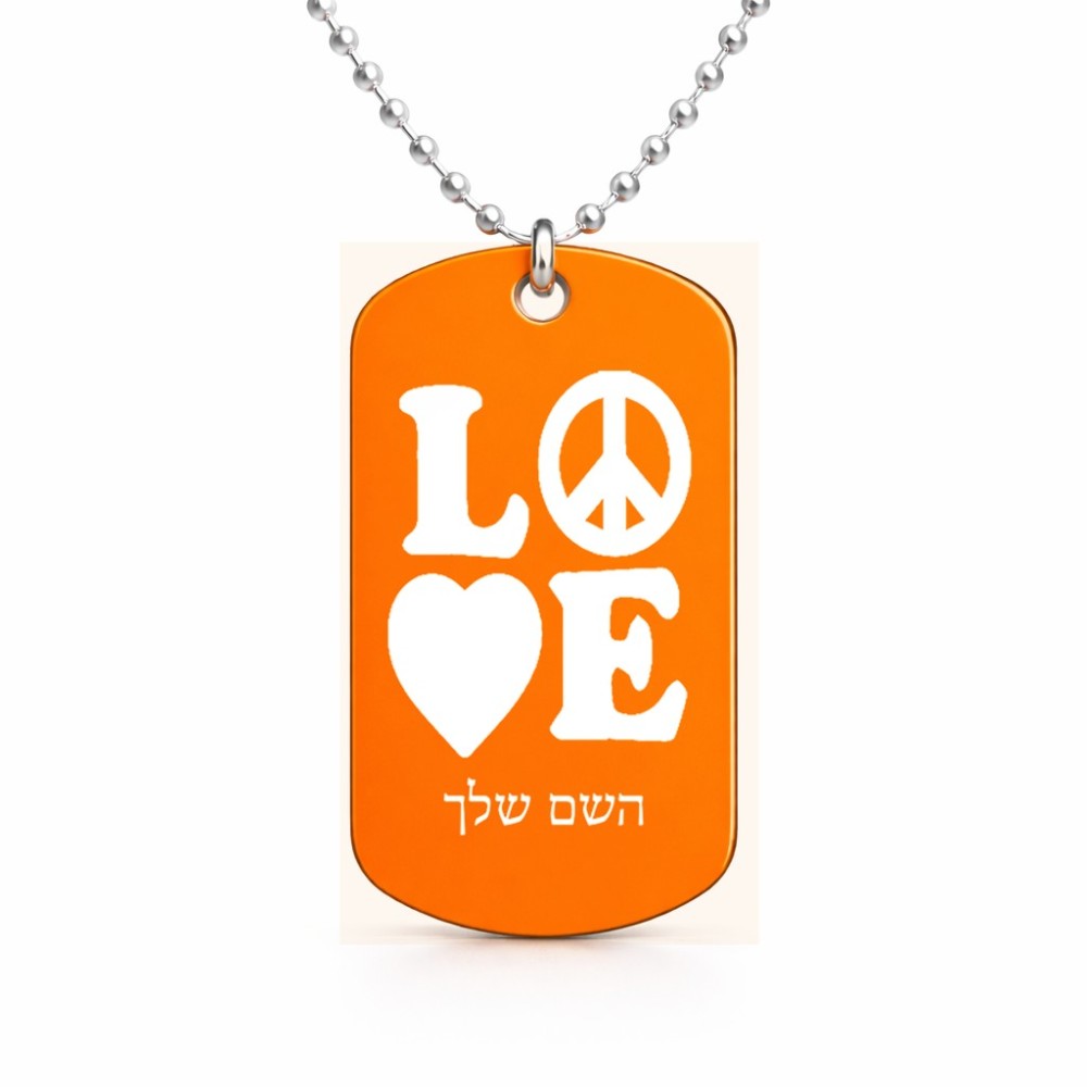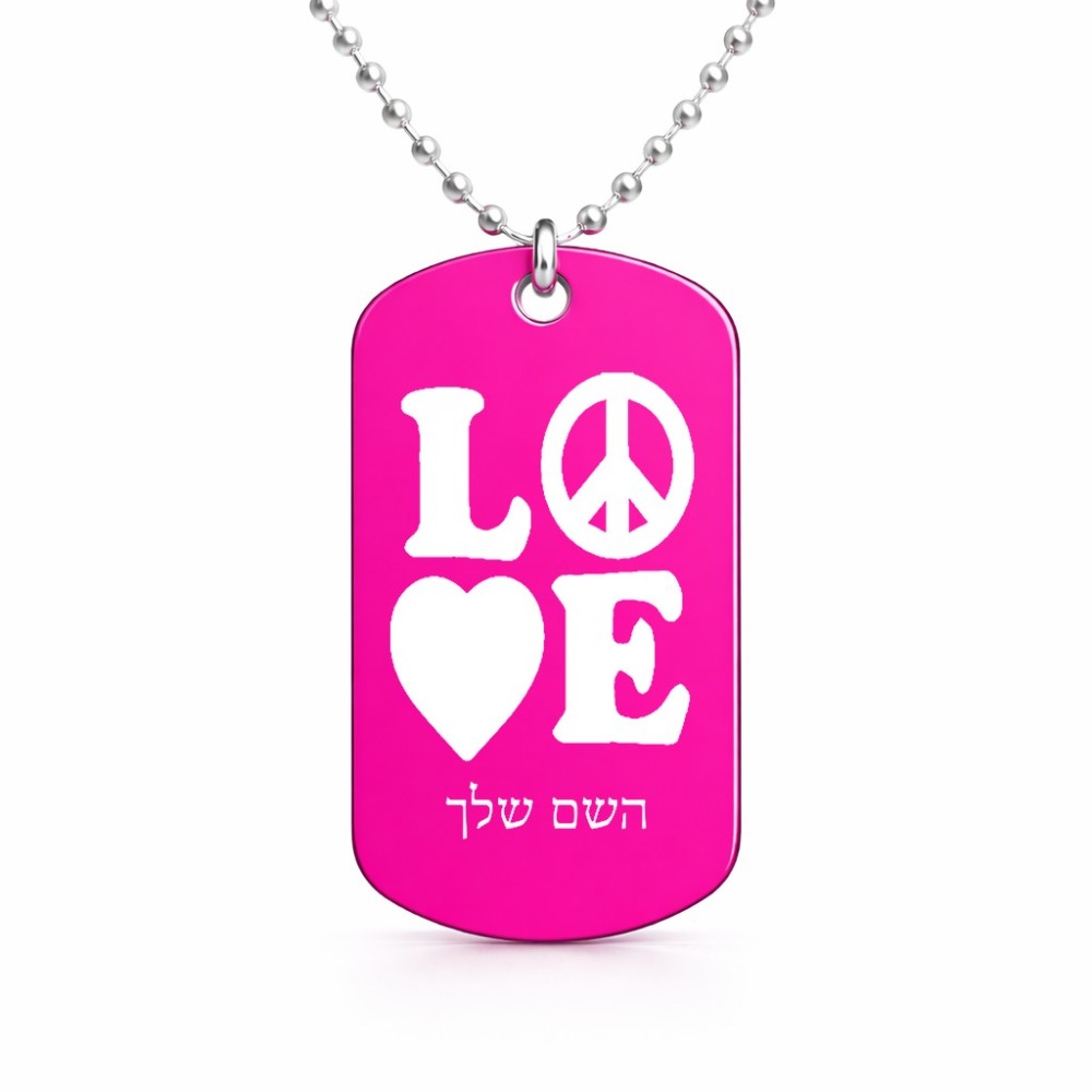 שרשרת דיסקיט מאלומיניום בעיצוב אישי עם השם שלך בעיצוב אהבה גודל הדיסקיט 2.9 × 5 ס"מ. את השם המבוקש ניתן לציין בהזמנה, אם לא צויין אנחנו ניצור קשר לבירור.