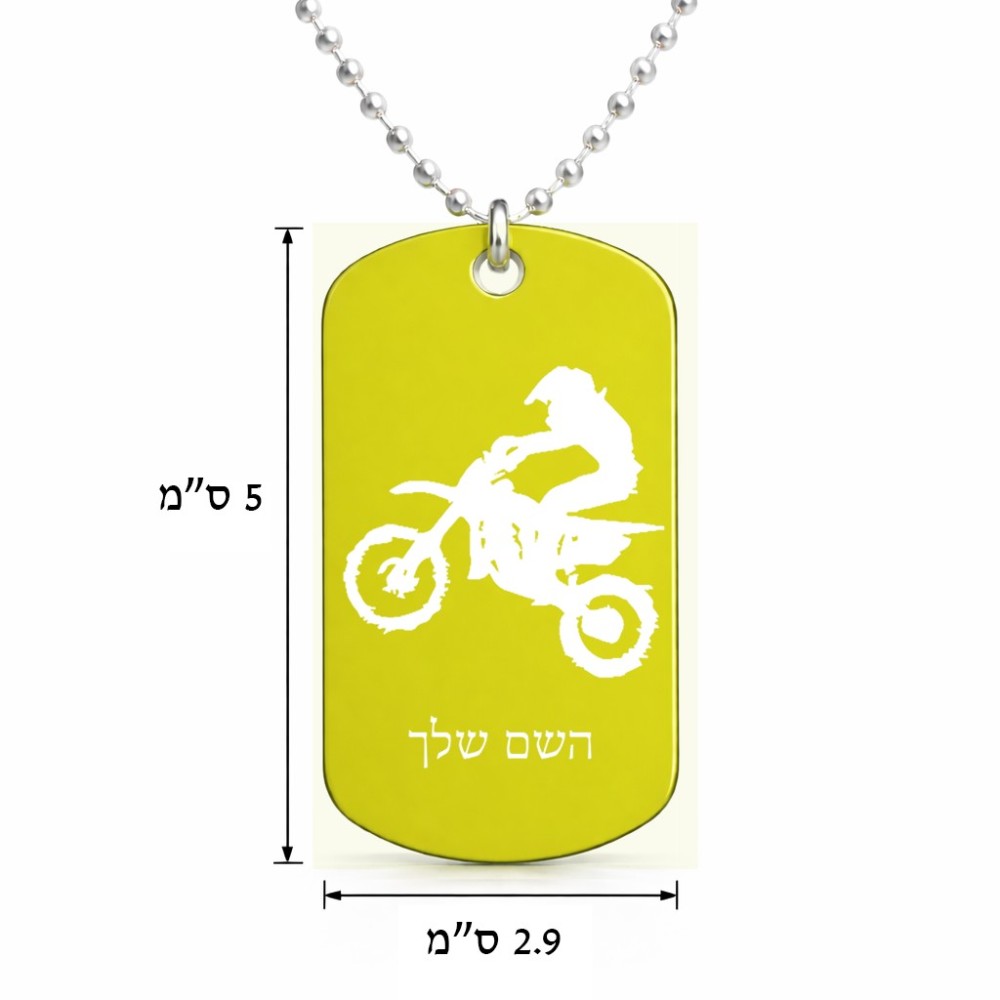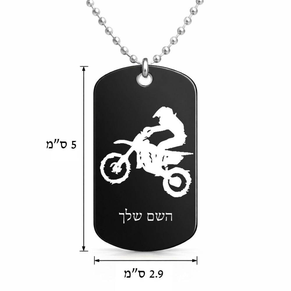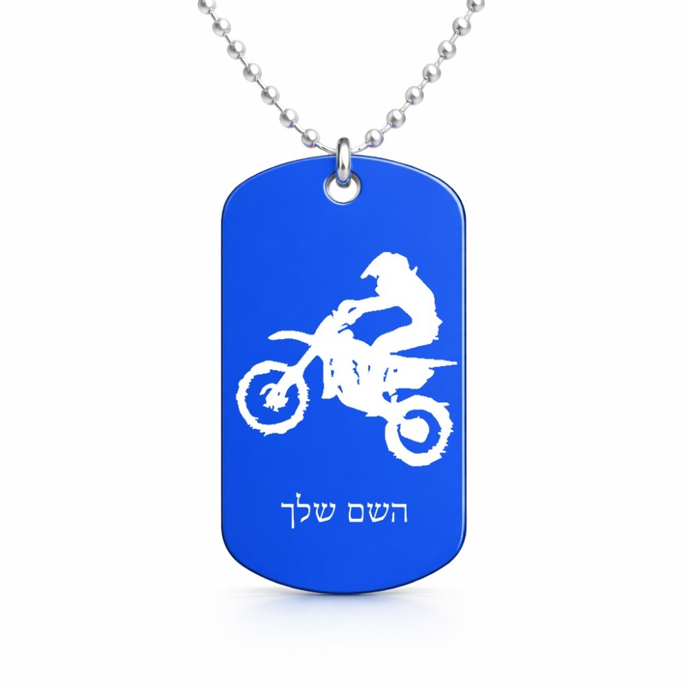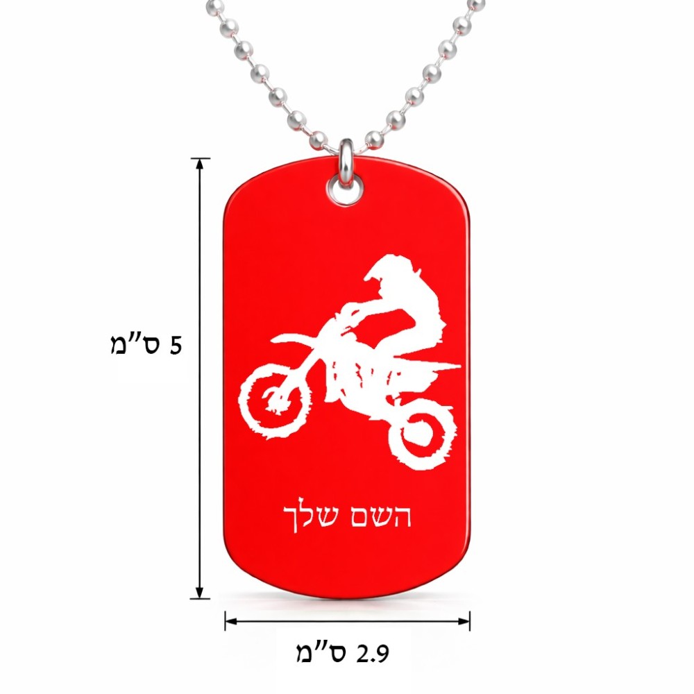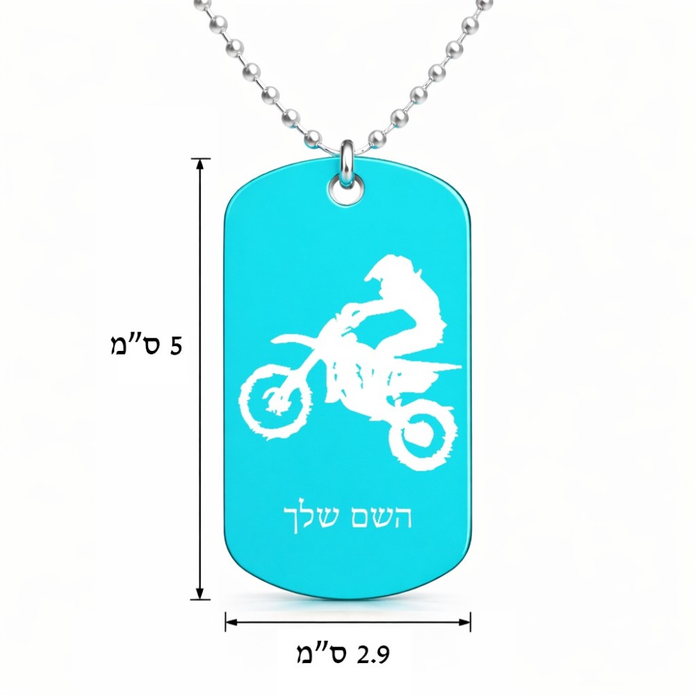 שרשרת דיסקיט מאלומיניום בעיצוב אישי עם השם שלך בעיצוב מוטוקרוס גודל הדיסקיט 2.9 × 5 ס"מ. את השם המבוקש ניתן לציין בהזמנה, אם לא צויין אנחנו ניצור קשר לבירור.