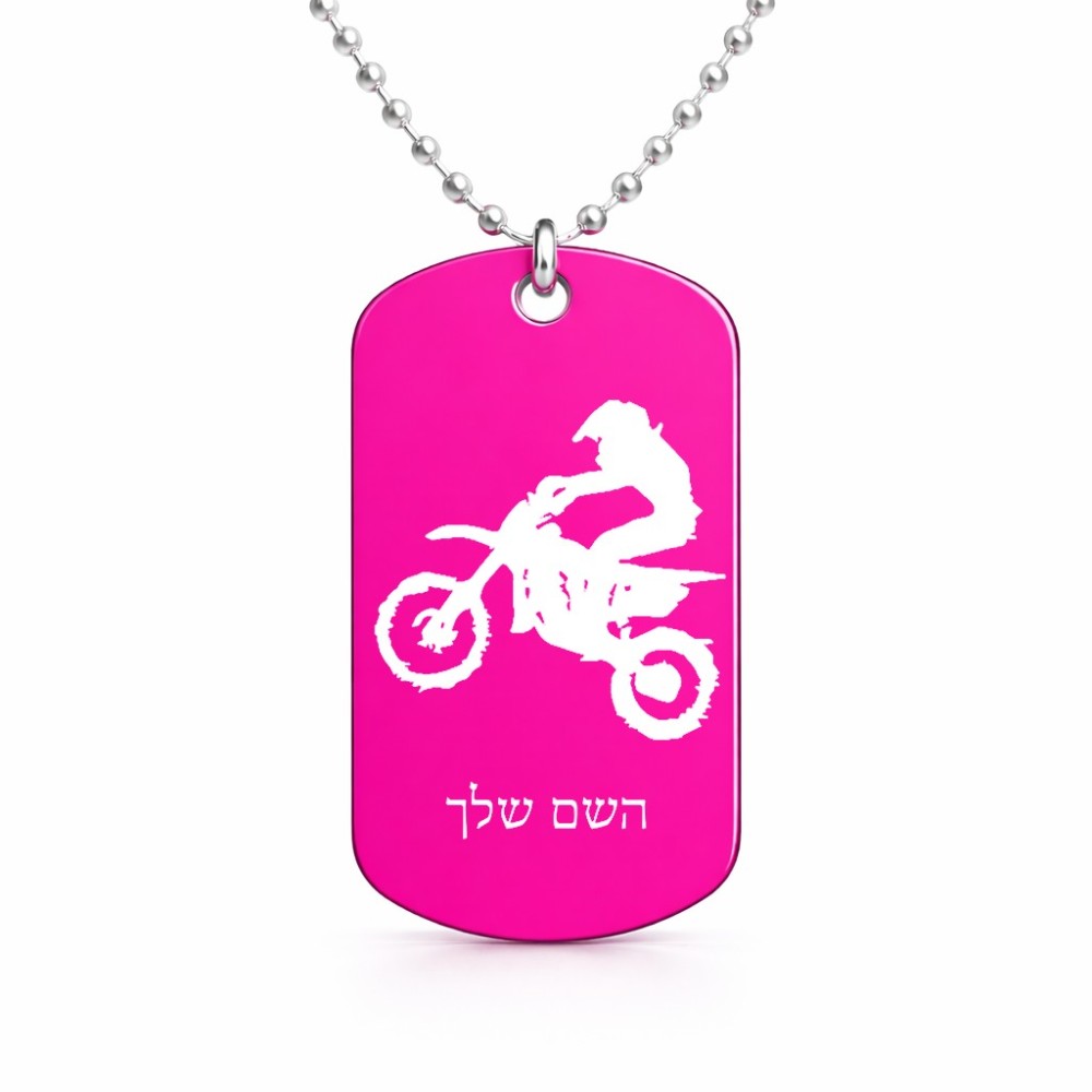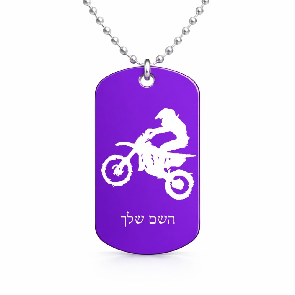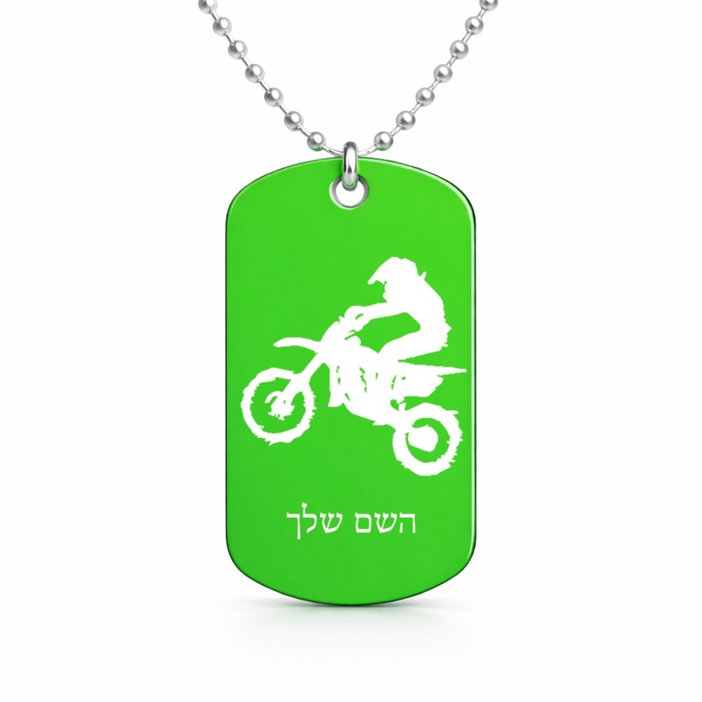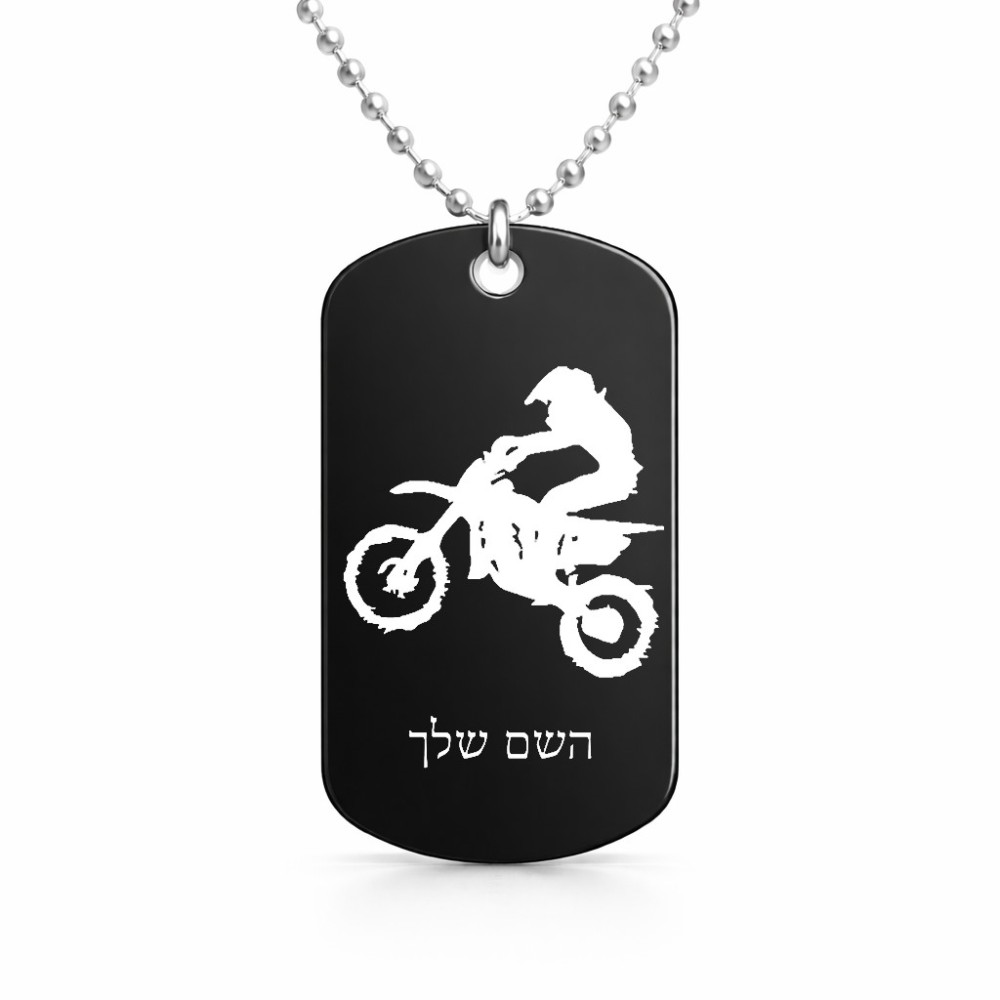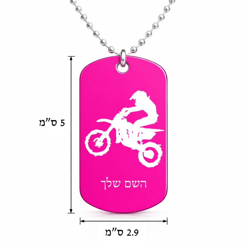 שרשרת דיסקיט מאלומיניום בעיצוב אישי עם השם שלך בעיצוב מוטוקרוס גודל הדיסקיט 2.9 × 5 ס"מ. את השם המבוקש ניתן לציין בהזמנה, אם לא צויין אנחנו ניצור קשר לבירור.