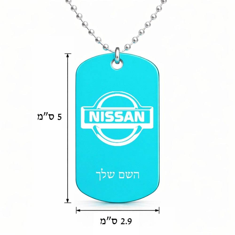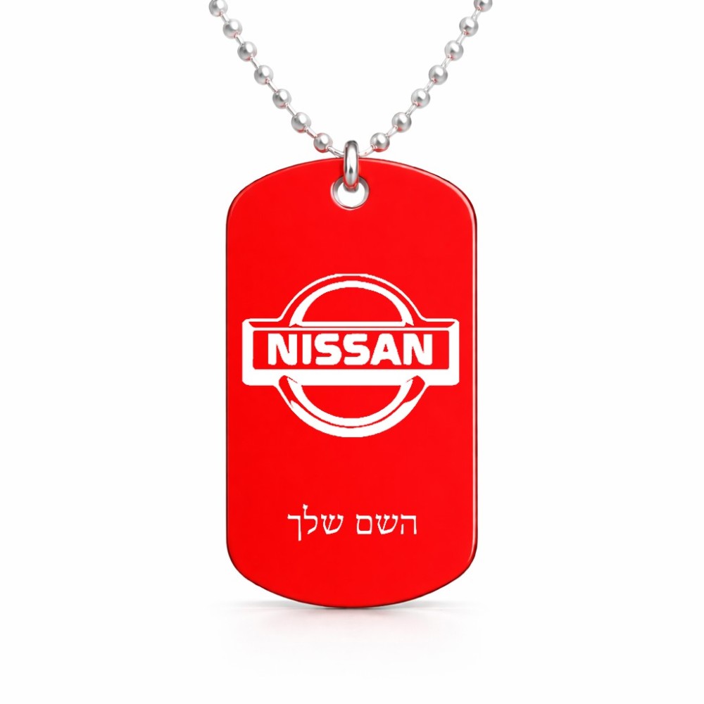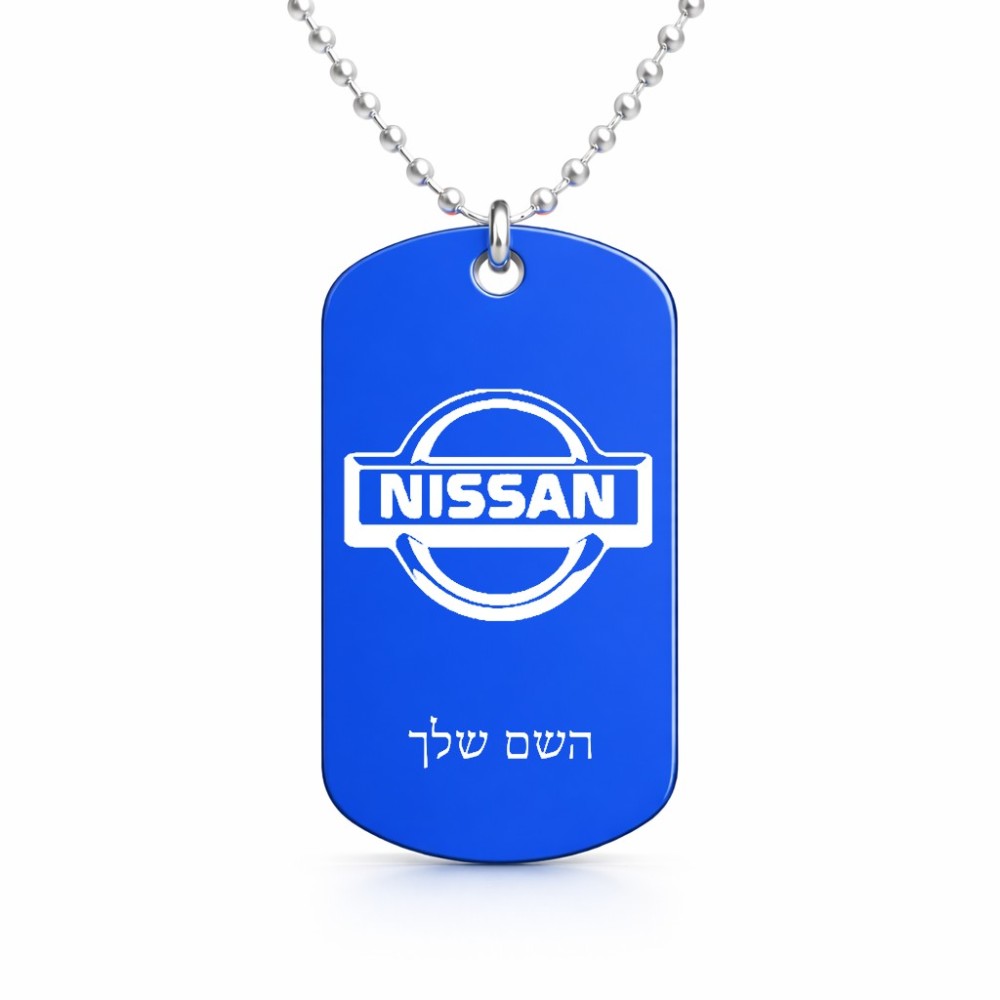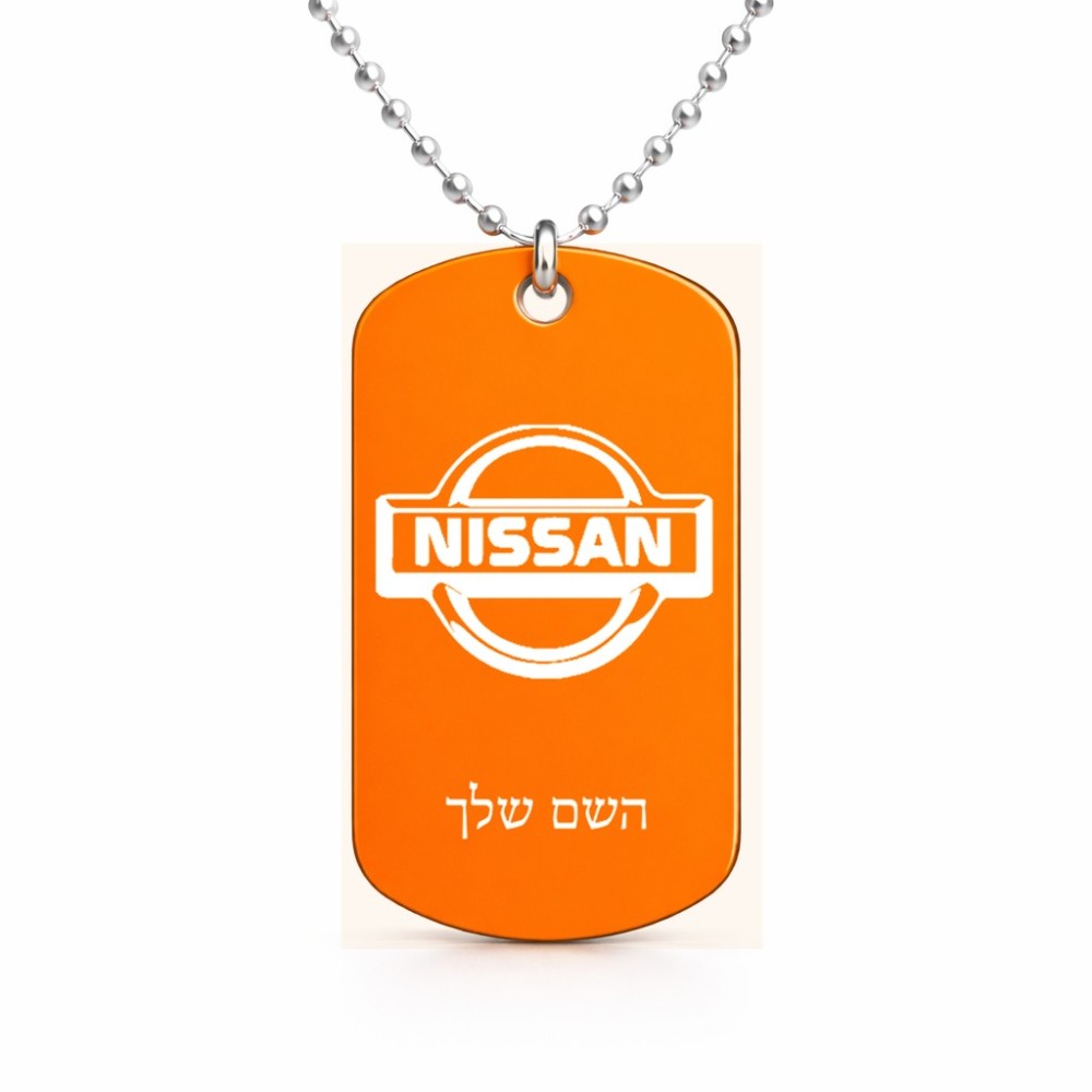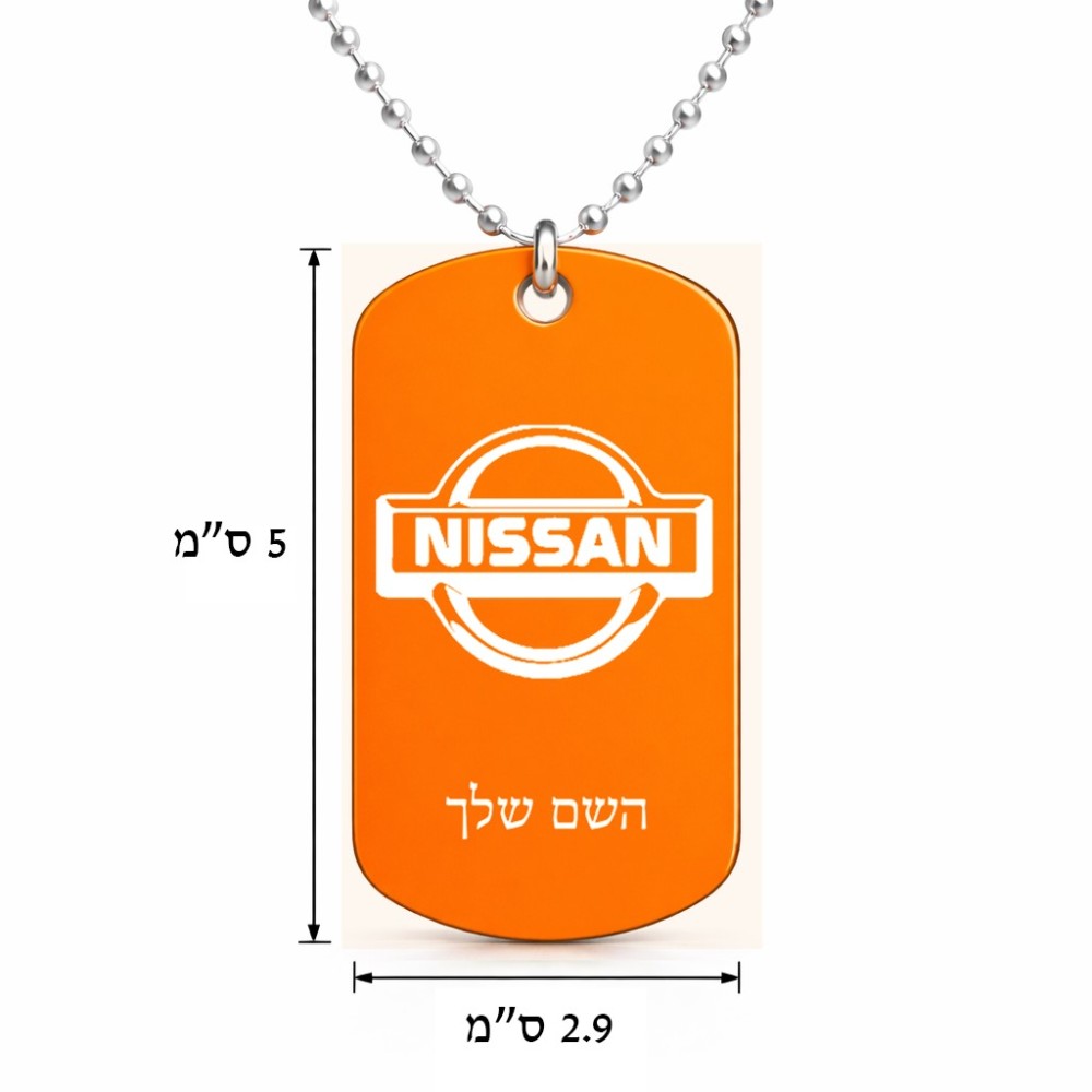 שרשרת דיסקיט מאלומיניום בעיצוב אישי עם השם שלך בעיצוב ניסאן גודל הדיסקיט 2.9 × 5 ס"מ. את השם המבוקש ניתן לציין בהזמנה, אם לא צויין אנחנו ניצור קשר לבירור.