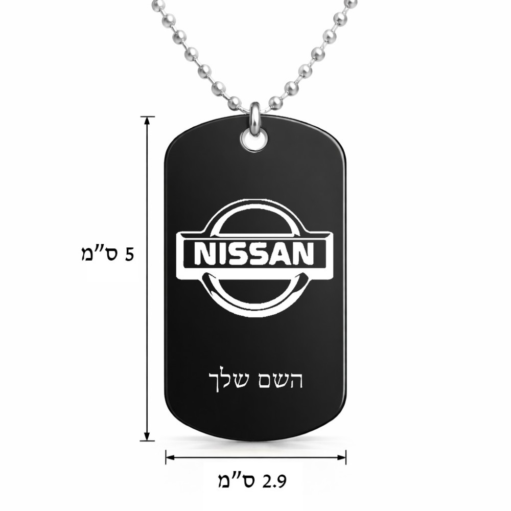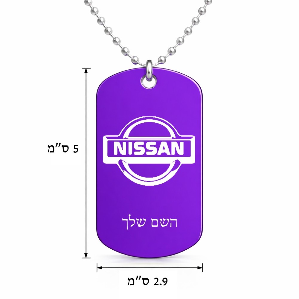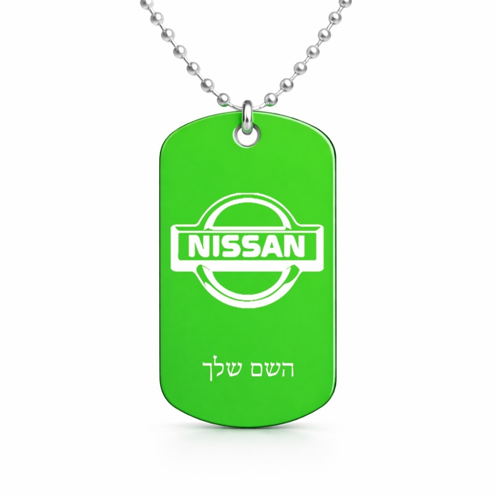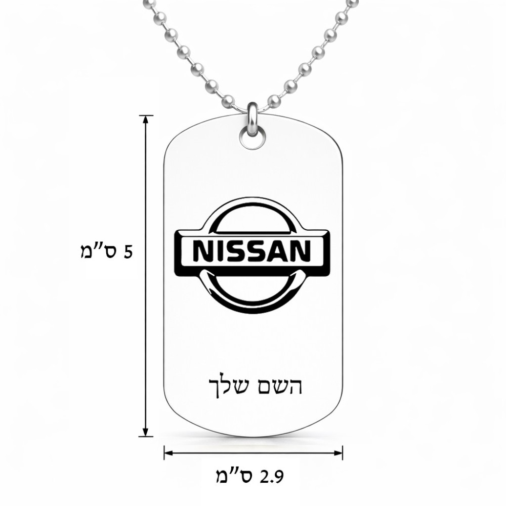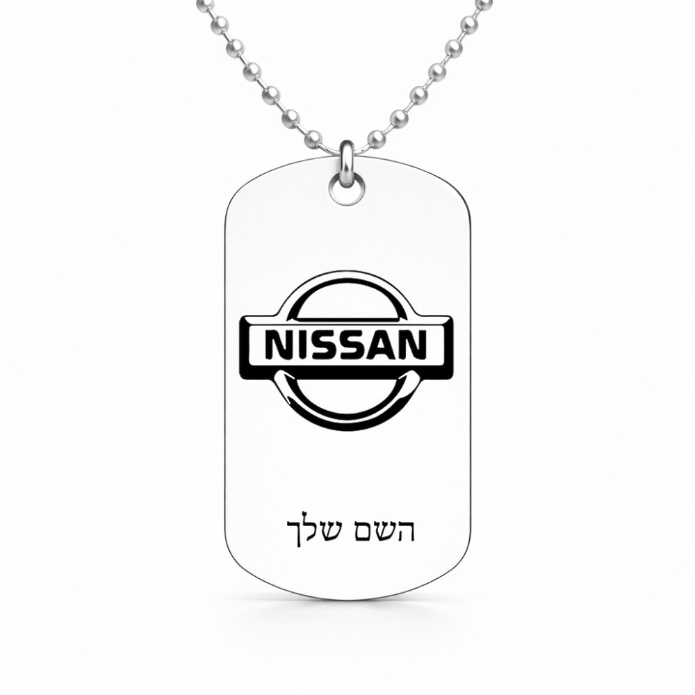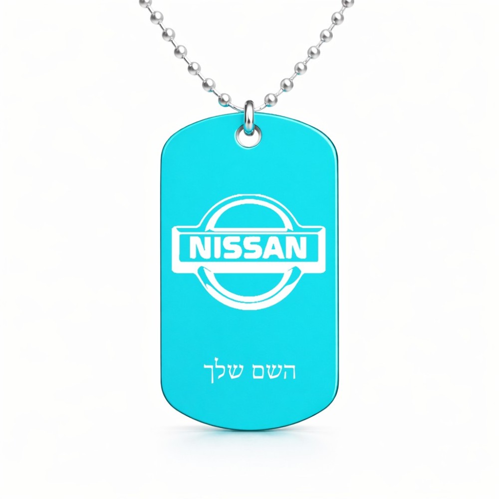 שרשרת דיסקיט מאלומיניום בעיצוב אישי עם השם שלך בעיצוב ניסאן גודל הדיסקיט 2.9 × 5 ס"מ. את השם המבוקש ניתן לציין בהזמנה, אם לא צויין אנחנו ניצור קשר לבירור.