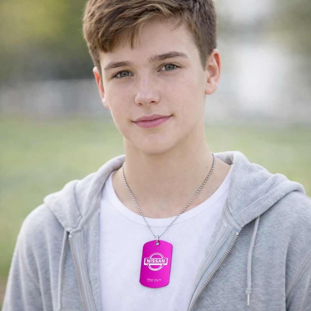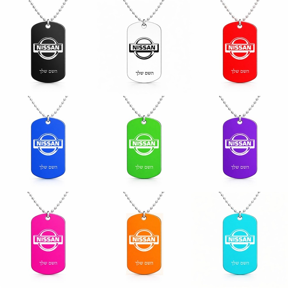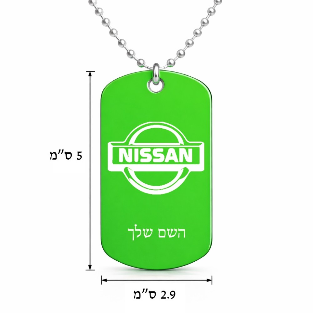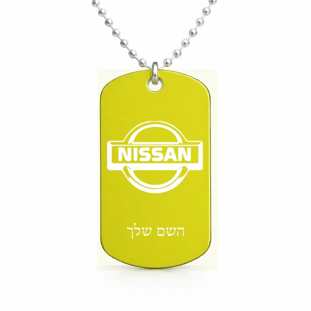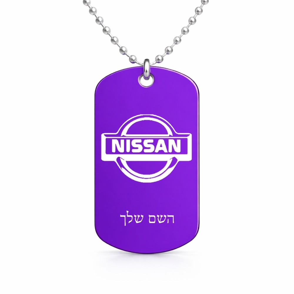 שרשרת דיסקיט מאלומיניום בעיצוב אישי עם השם שלך בעיצוב ניסאן גודל הדיסקיט 2.9 × 5 ס"מ. את השם המבוקש ניתן לציין בהזמנה, אם לא צויין אנחנו ניצור קשר לבירור.