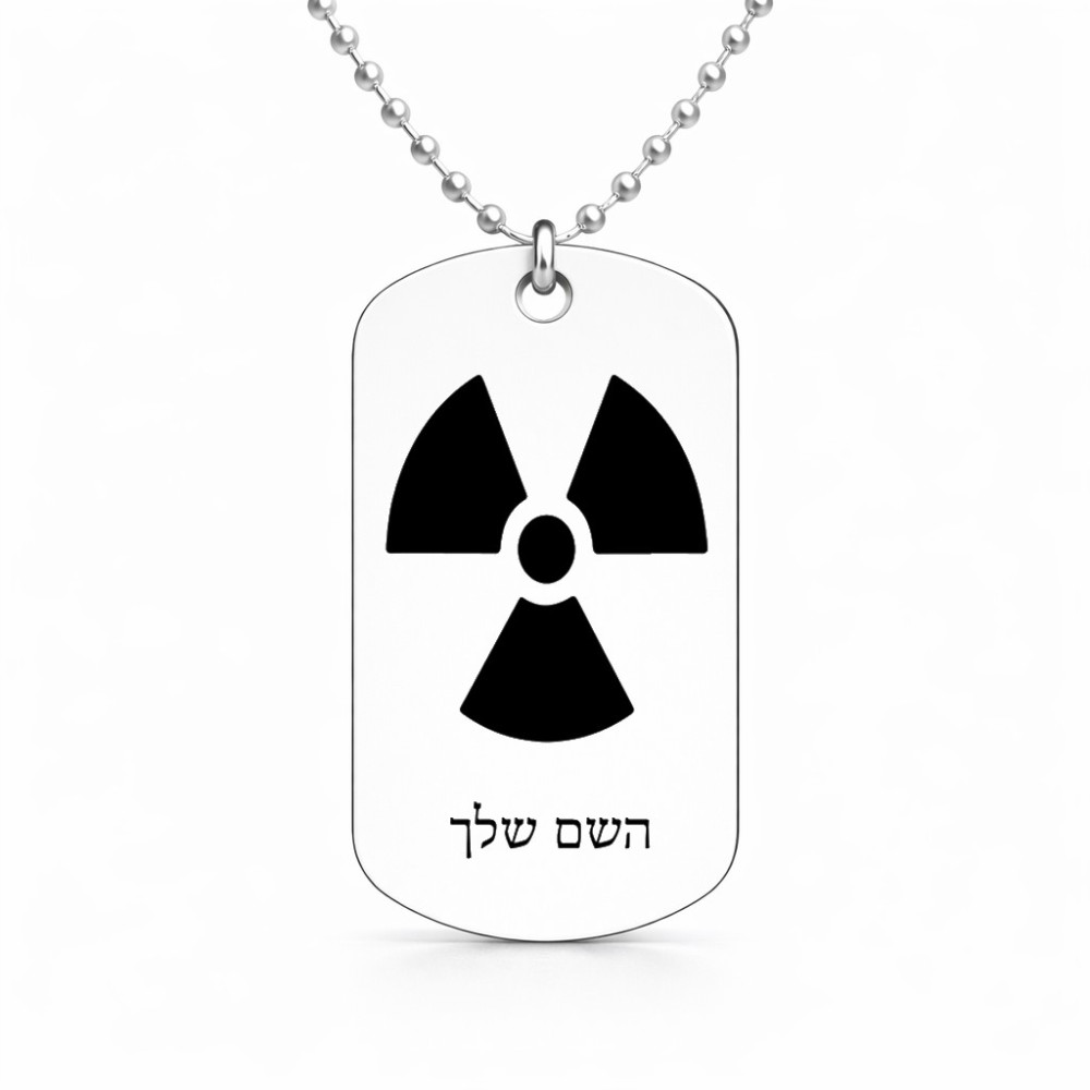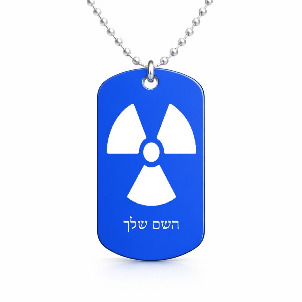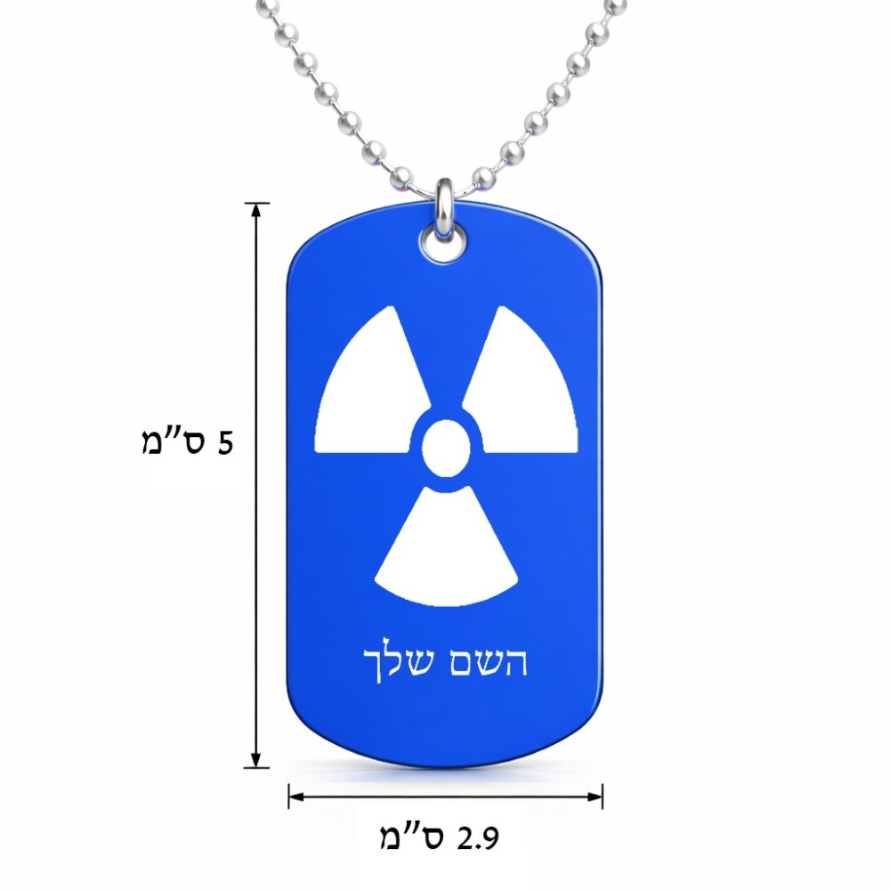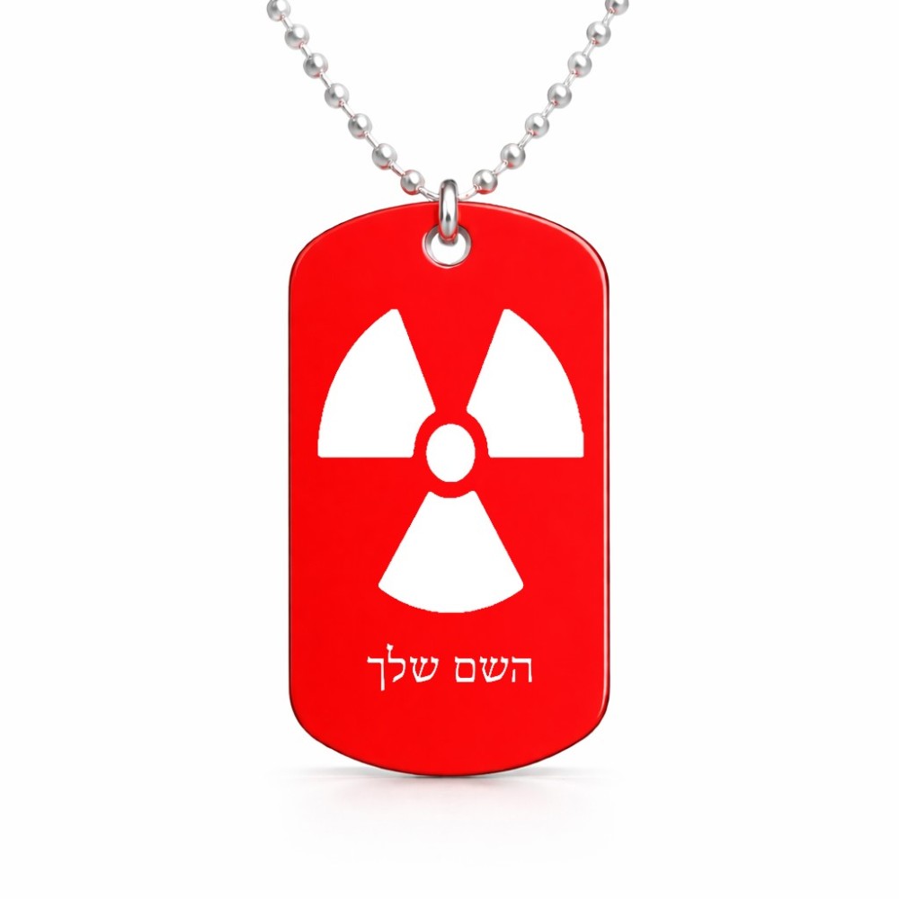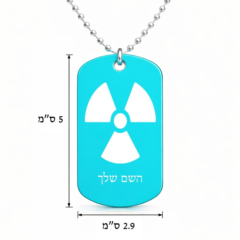 שרשרת דיסקיט מאלומיניום בעיצוב אישי עם השם שלך בעיצוב פצצת אטום גרעינית גודל הדיסקיט 2.9 × 5 ס"מ. את השם המבוקש ניתן לציין בהזמנה, אם לא צויין אנחנו ניצור קשר לבירור.