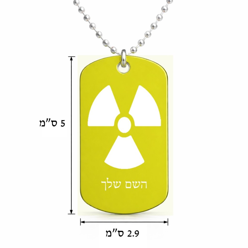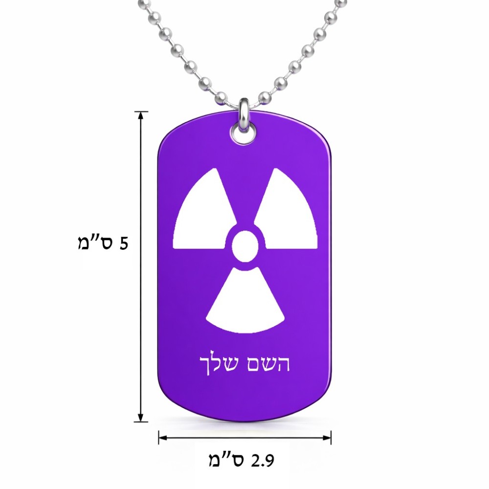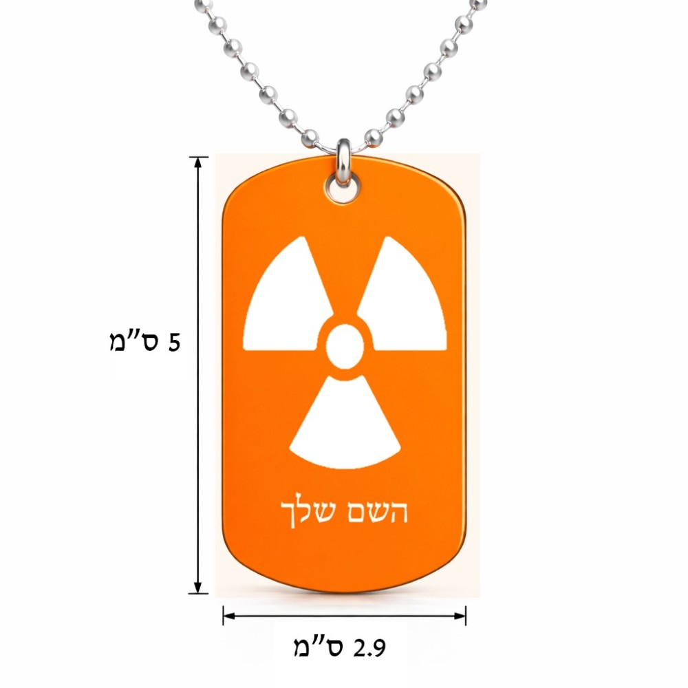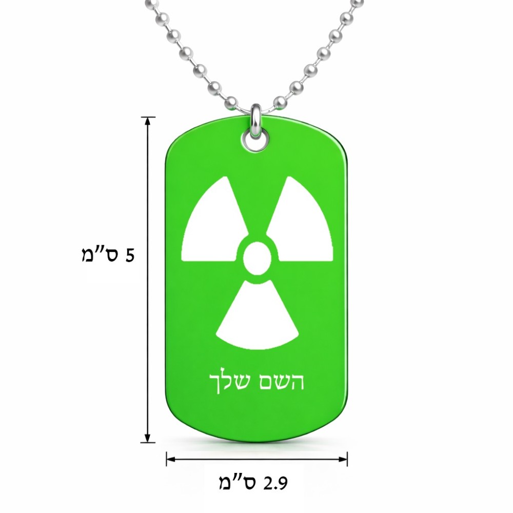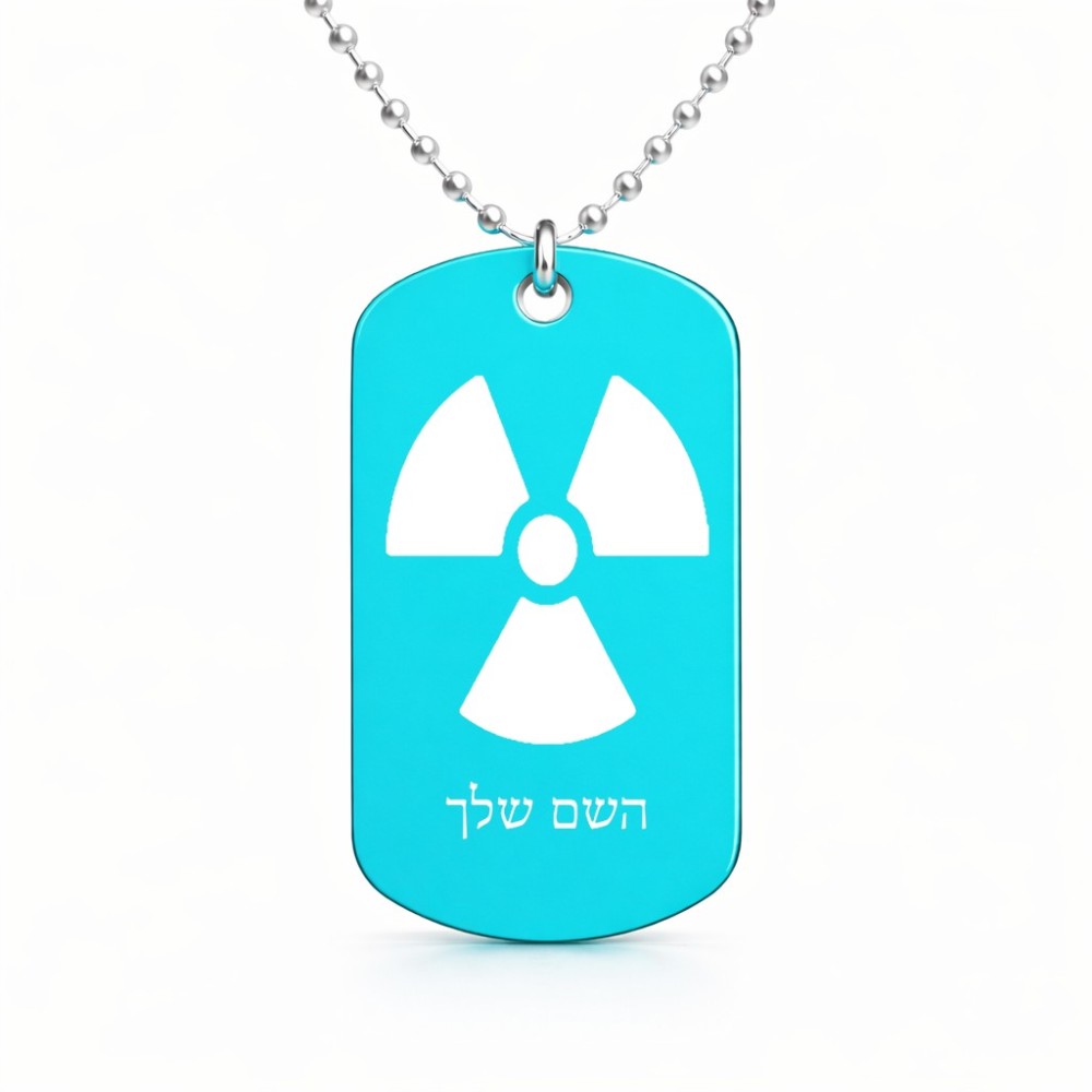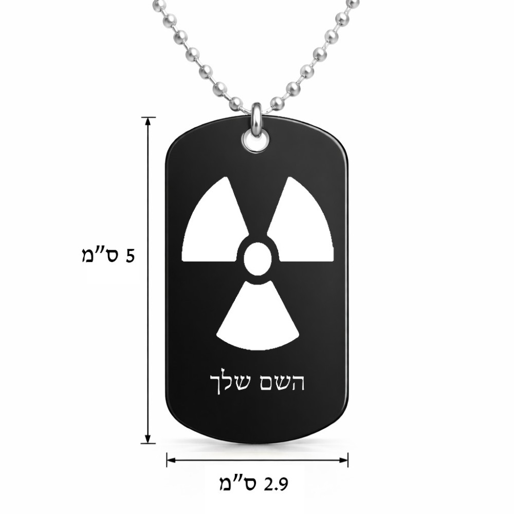 שרשרת דיסקיט מאלומיניום בעיצוב אישי עם השם שלך בעיצוב פצצת אטום גרעינית גודל הדיסקיט 2.9 × 5 ס"מ. את השם המבוקש ניתן לציין בהזמנה, אם לא צויין אנחנו ניצור קשר לבירור.