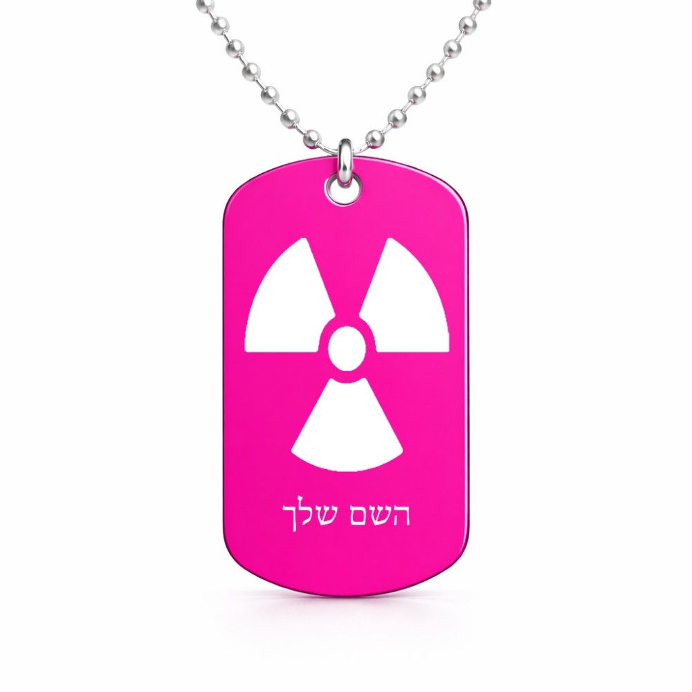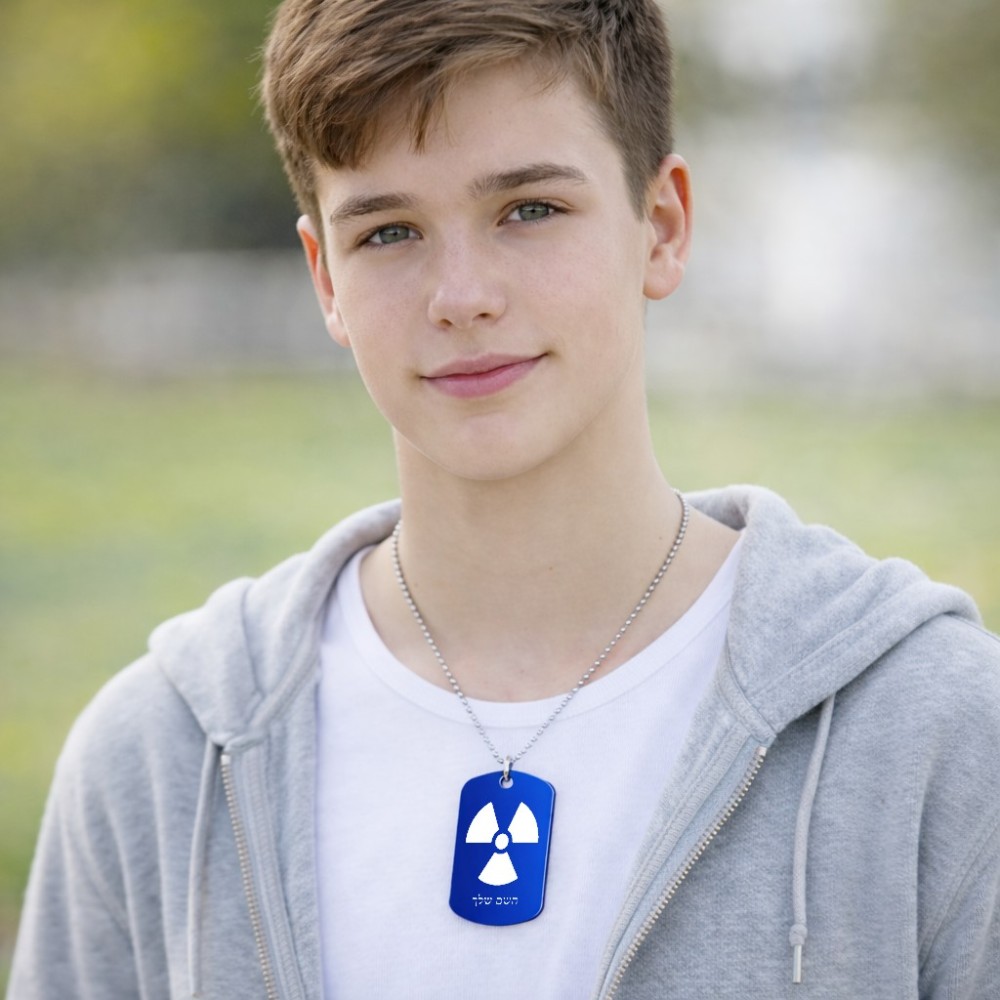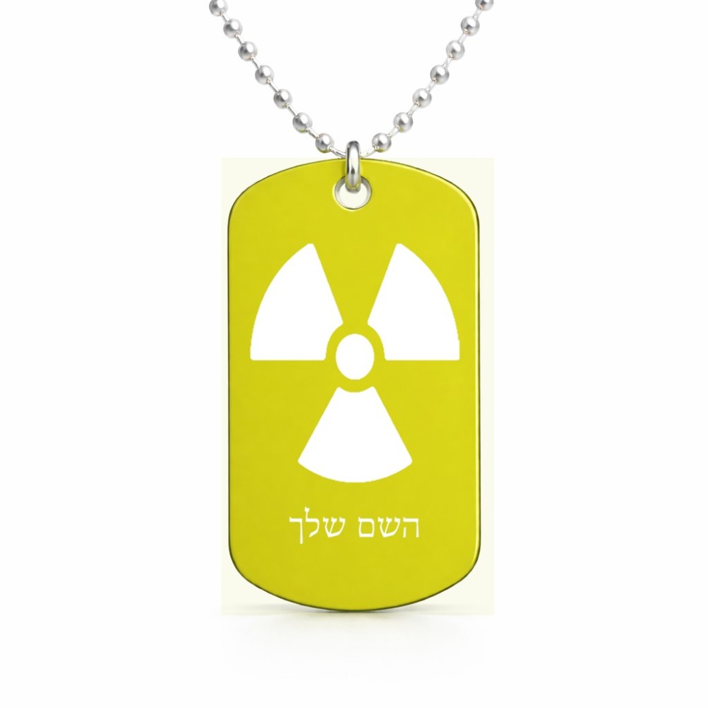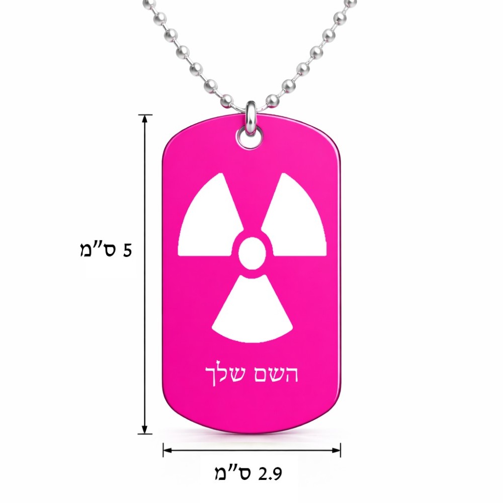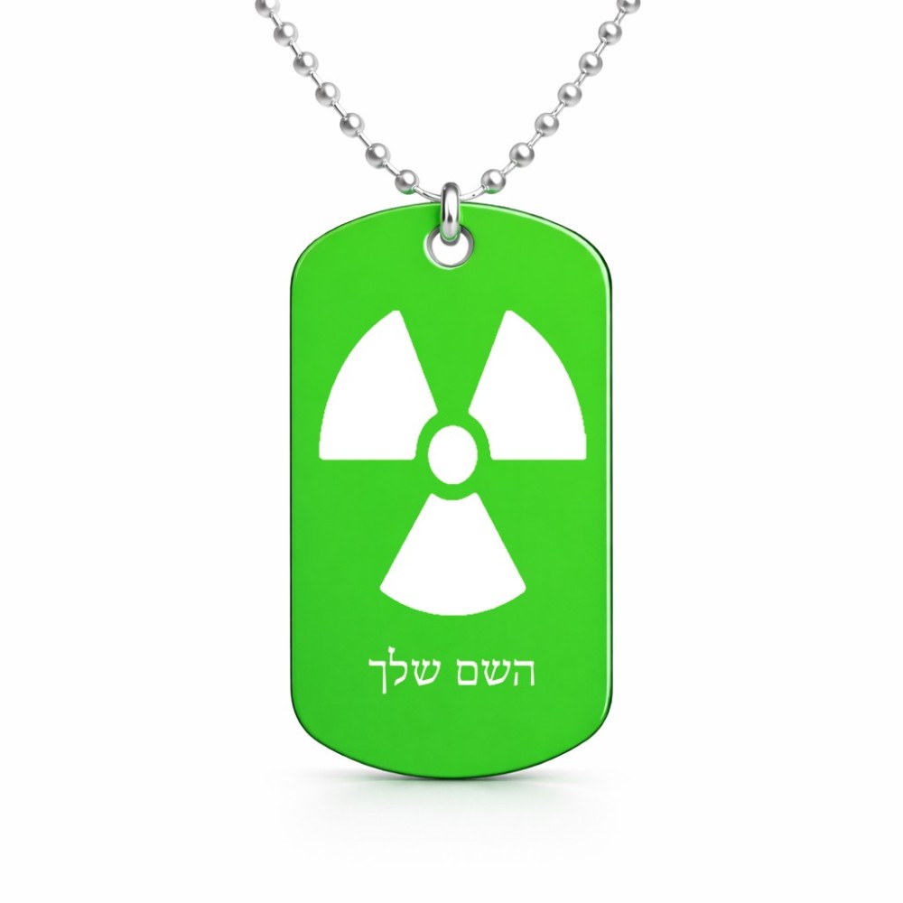 שרשרת דיסקיט מאלומיניום בעיצוב אישי עם השם שלך בעיצוב פצצת אטום גרעינית גודל הדיסקיט 2.9 × 5 ס"מ. את השם המבוקש ניתן לציין בהזמנה, אם לא צויין אנחנו ניצור קשר לבירור.
