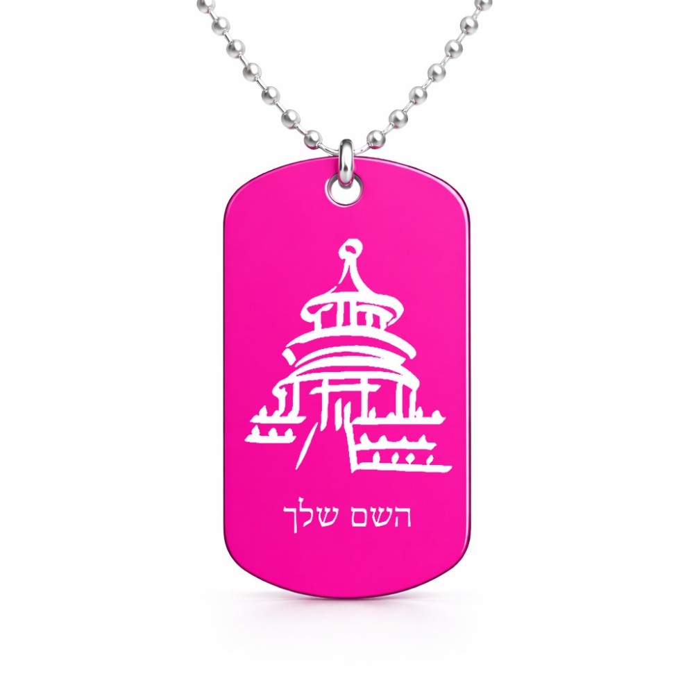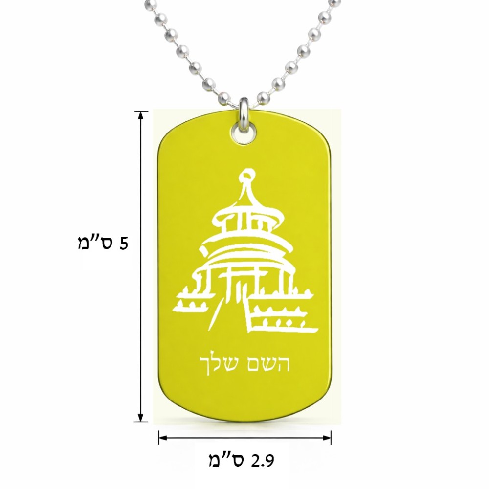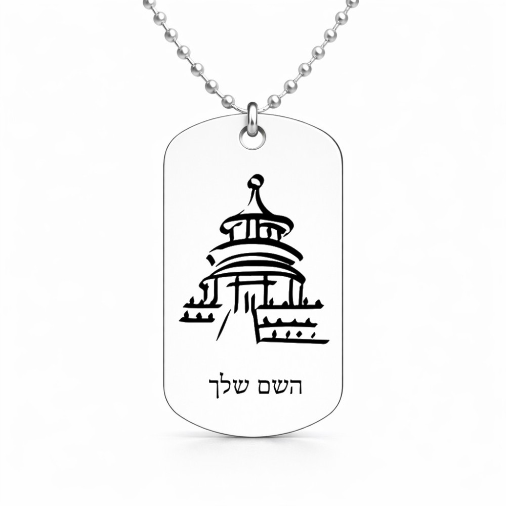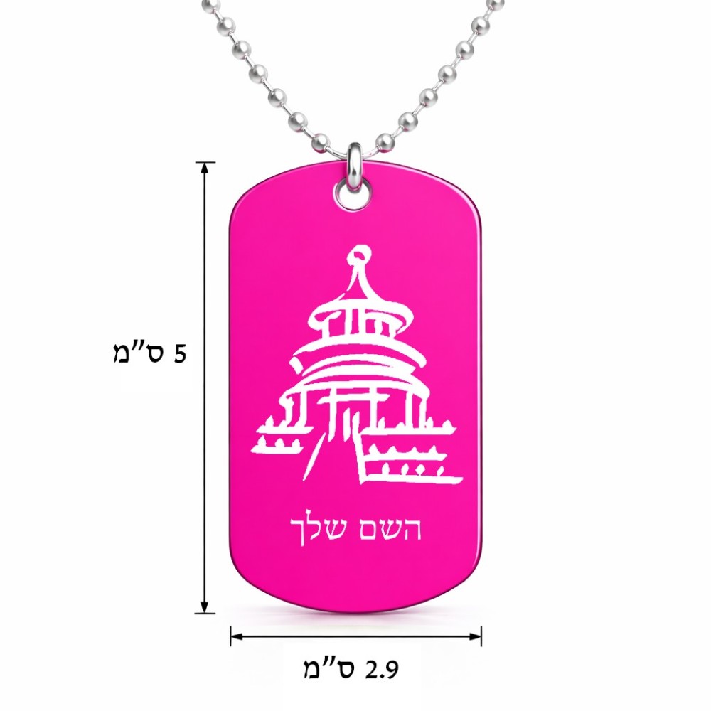 שרשרת דיסקיט מאלומיניום בעיצוב אישי עם השם שלך בעיצוב פגודה - יפן גודל הדיסקיט 2.9 × 5 ס"מ. את השם המבוקש ניתן לציין בהזמנה, אם לא צויין אנחנו ניצור קשר לבירור.
