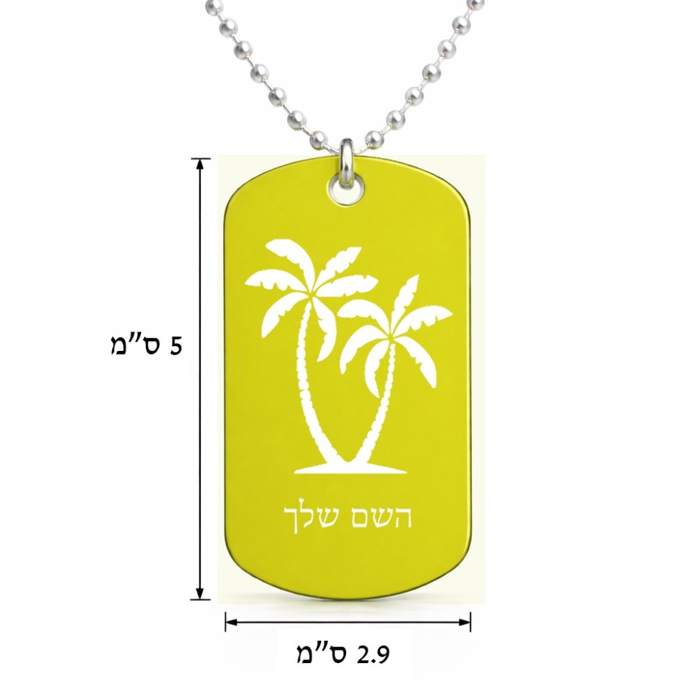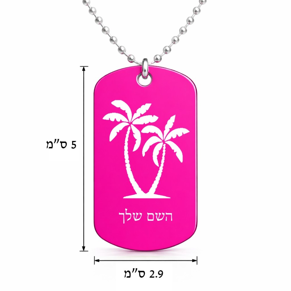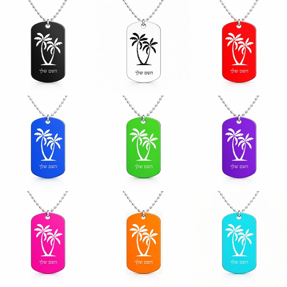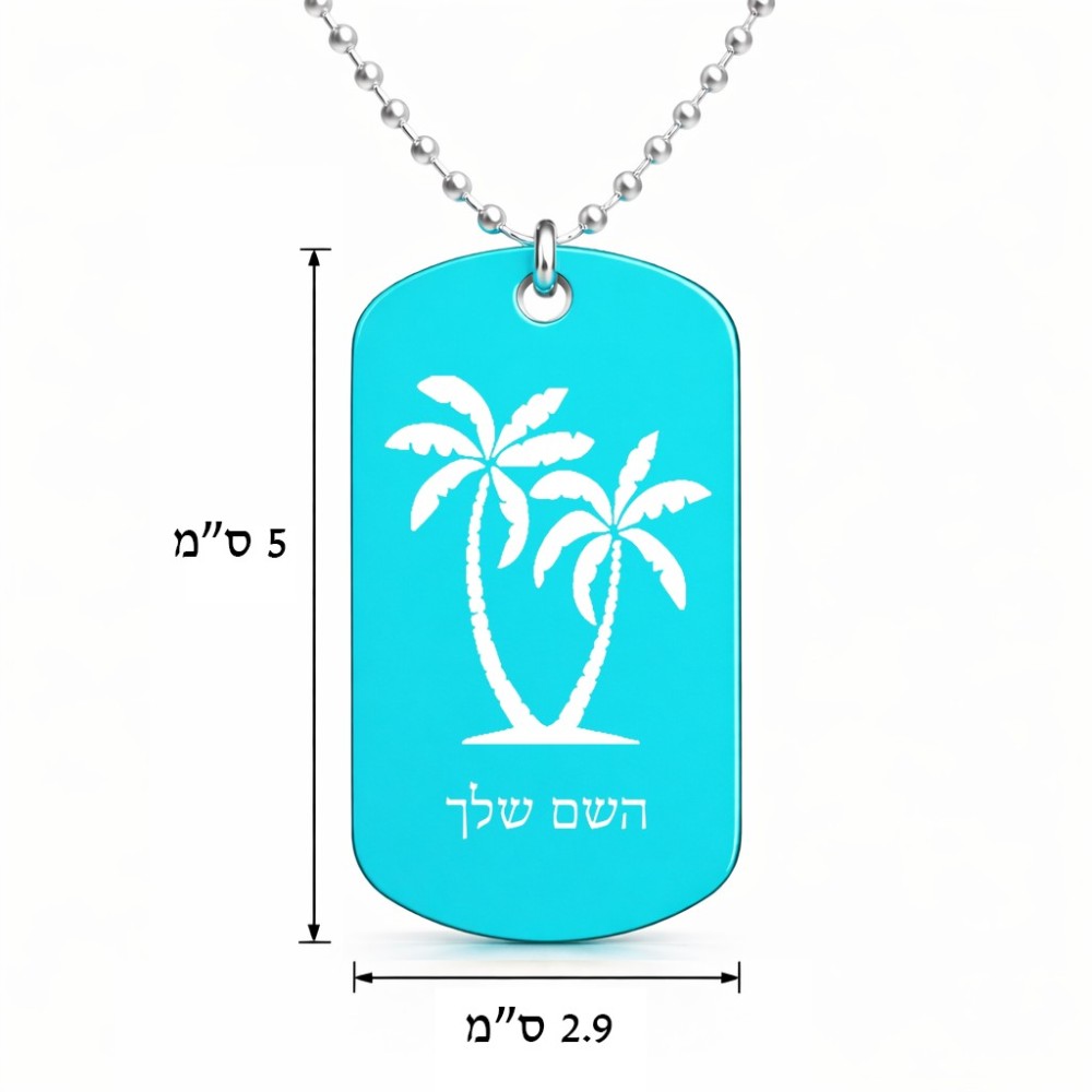 שרשרת דיסקיט מאלומיניום בעיצוב אישי עם השם שלך בעיצוב כפות ידיים גודל הדיסקיט 2.9 × 5 ס"מ