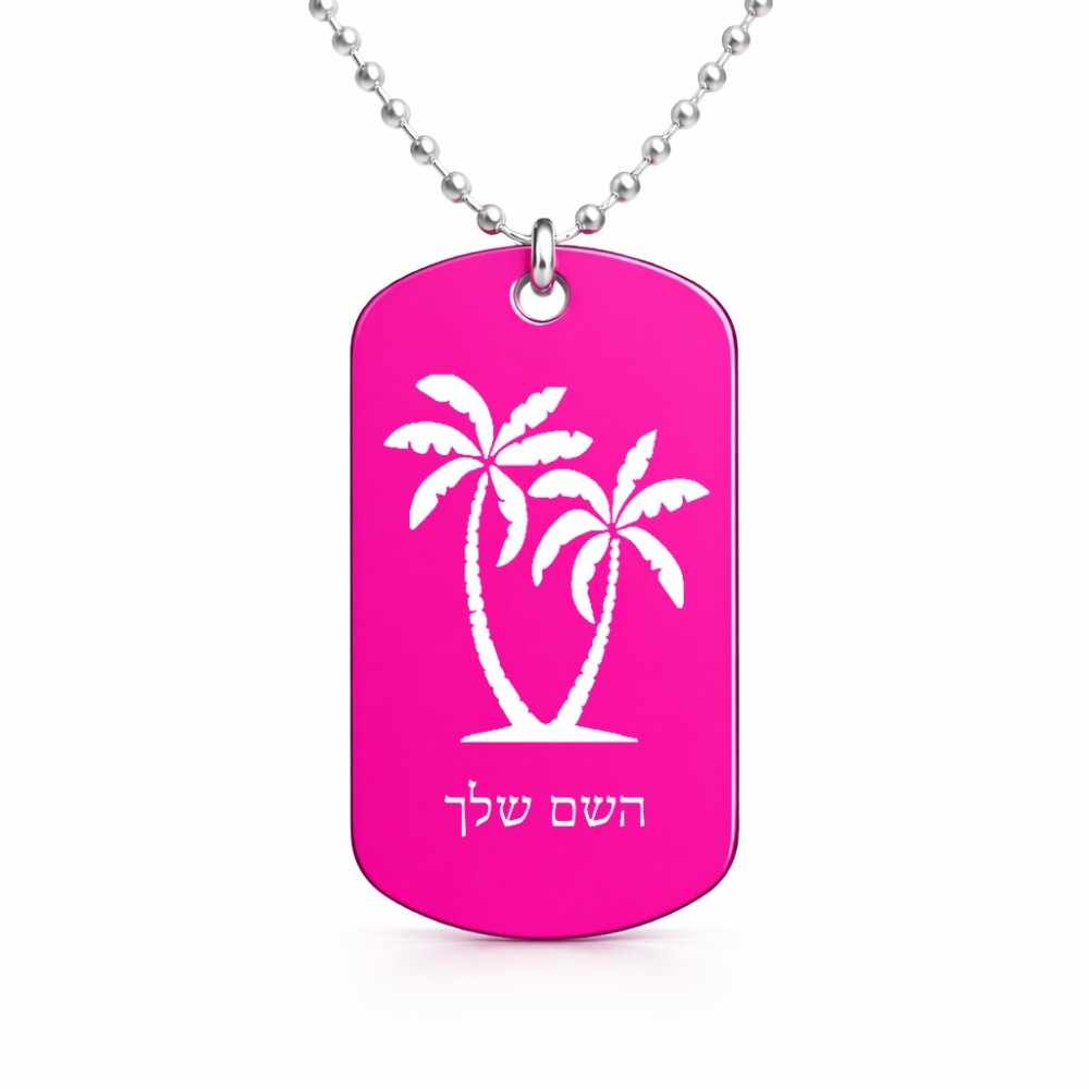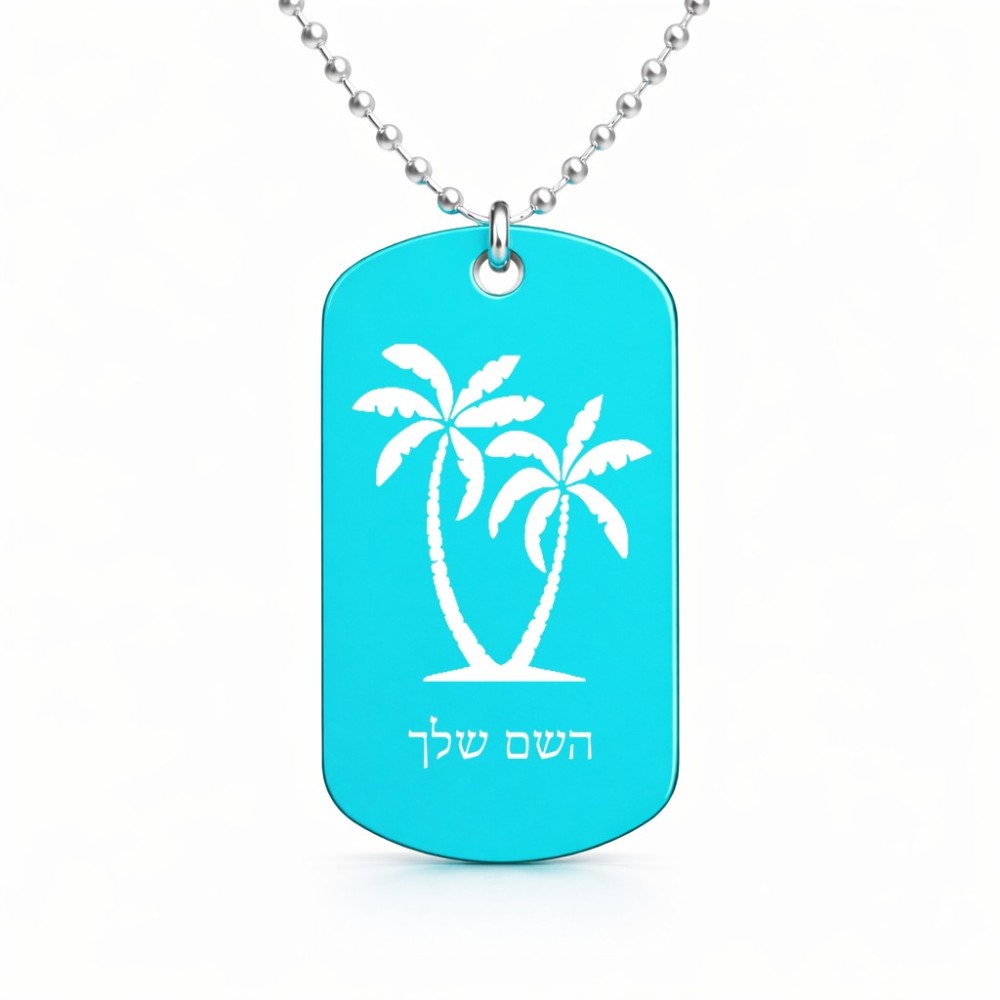 שרשרת דיסקיט מאלומיניום בעיצוב אישי עם השם שלך בעיצוב כפות ידיים גודל הדיסקיט 2.9 × 5 ס"מ. את השם המבוקש ניתן לציין בהזמנה, אם לא צויין אנחנו ניצור קשר לבירור.