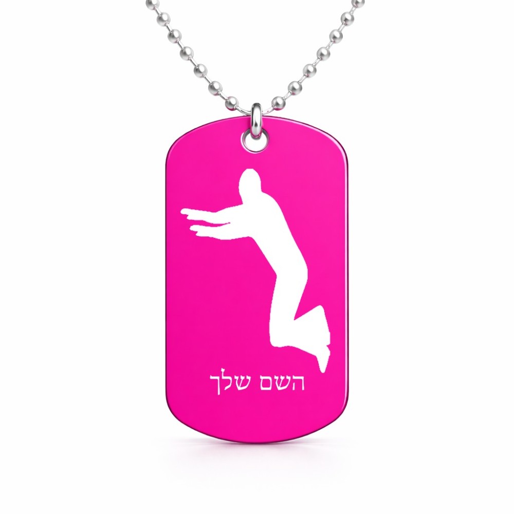 שרשרת דיסקיט מאלומיניום בעיצוב אישי עם השם שלך בעיצוב פארקורינג גודל הדיסקיט 2.9 × 5 ס"מ. את השם המבוקש ניתן לציין בהזמנה, אם לא צויין אנחנו ניצור קשר לבירור.