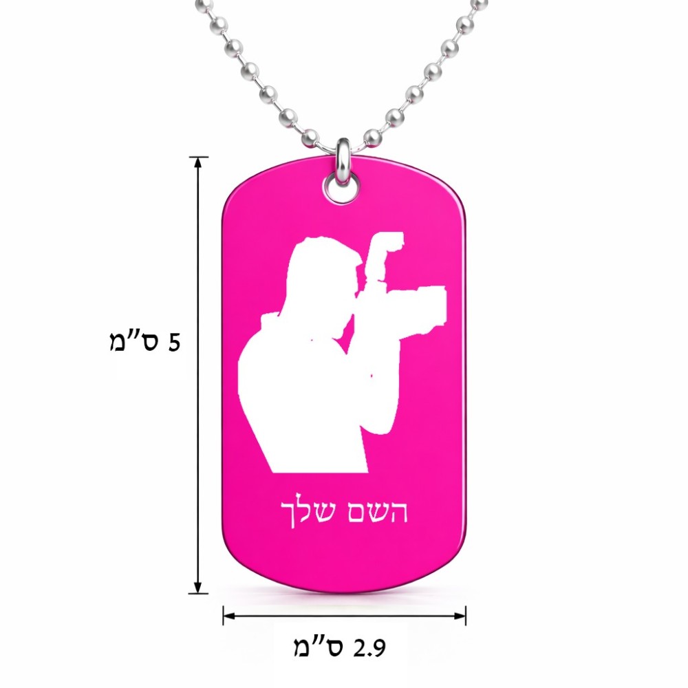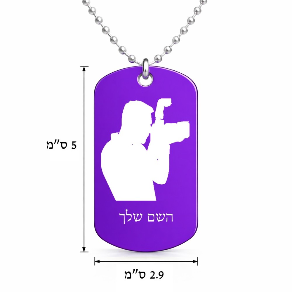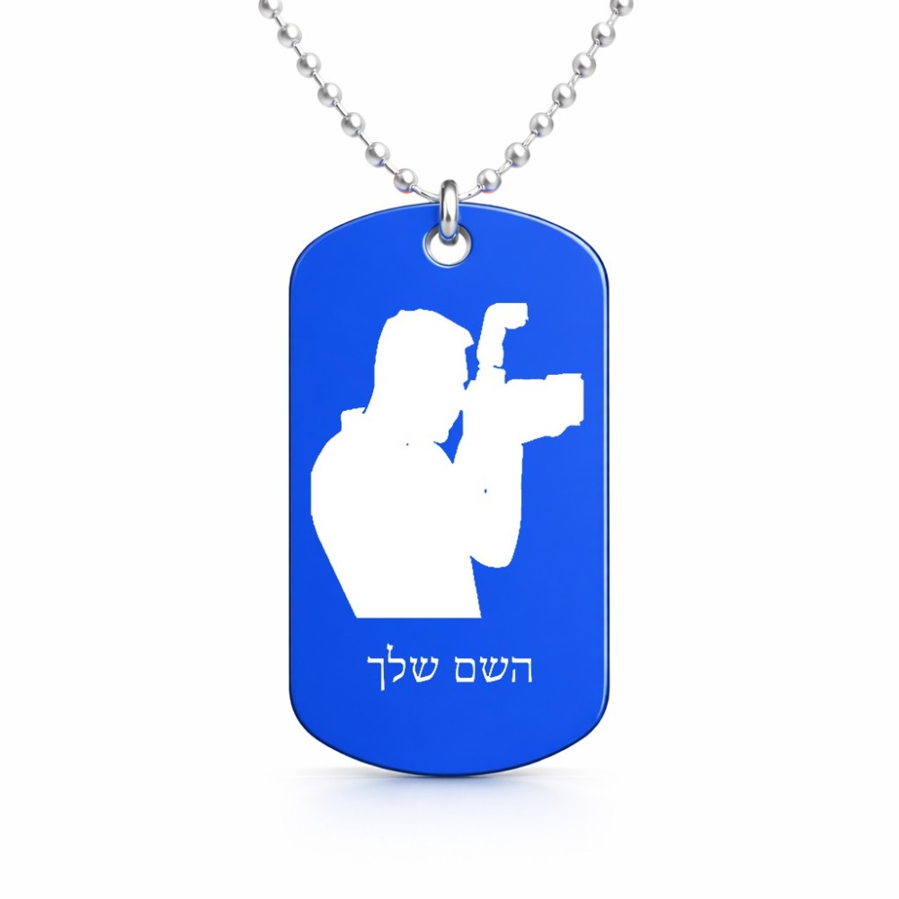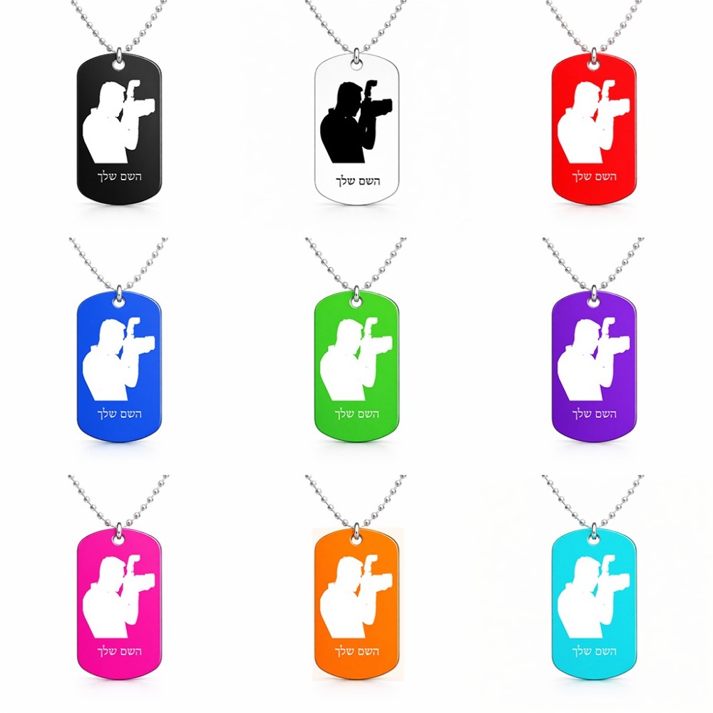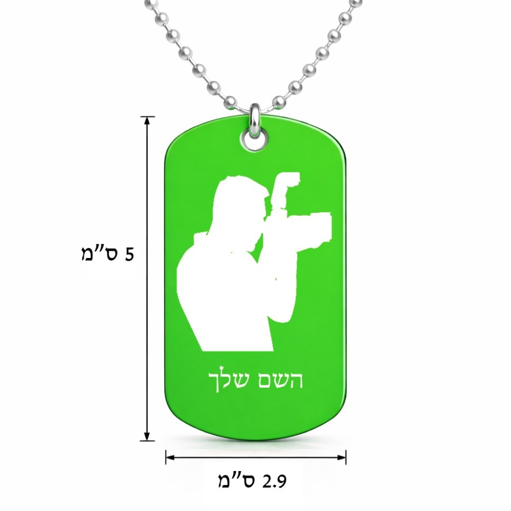 שרשרת דיסקיט מאלומיניום בעיצוב אישי עם השם שלך בעיצוב צלם - גברים גודל הדיסקיט 2.9 × 5 ס"מ. את השם המבוקש ניתן לציין בהזמנה, אם לא צויין אנחנו ניצור קשר לבירור.
