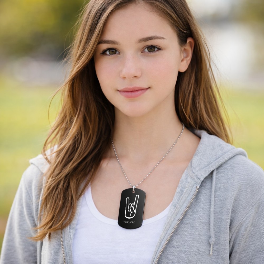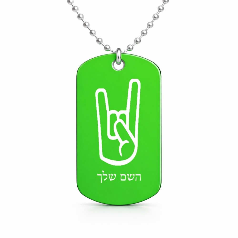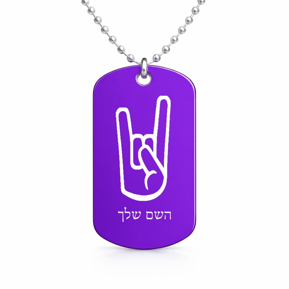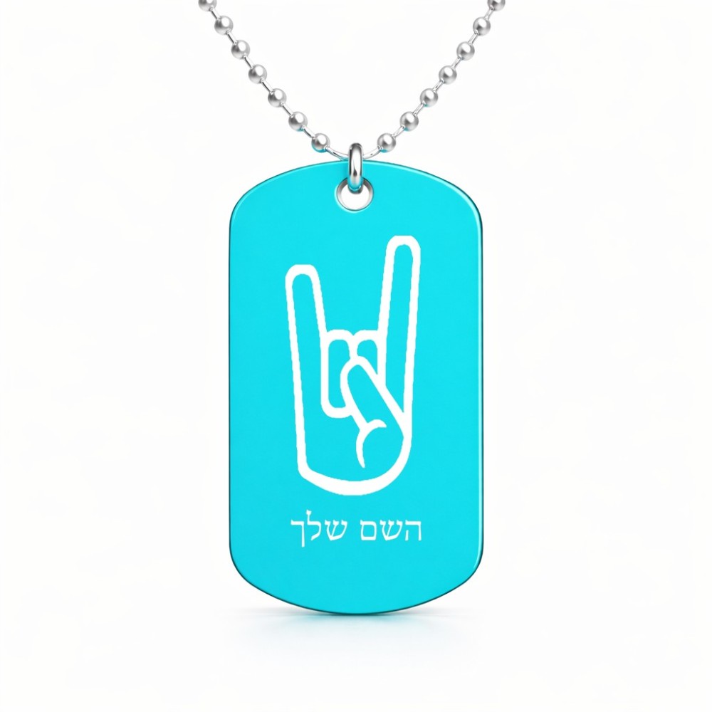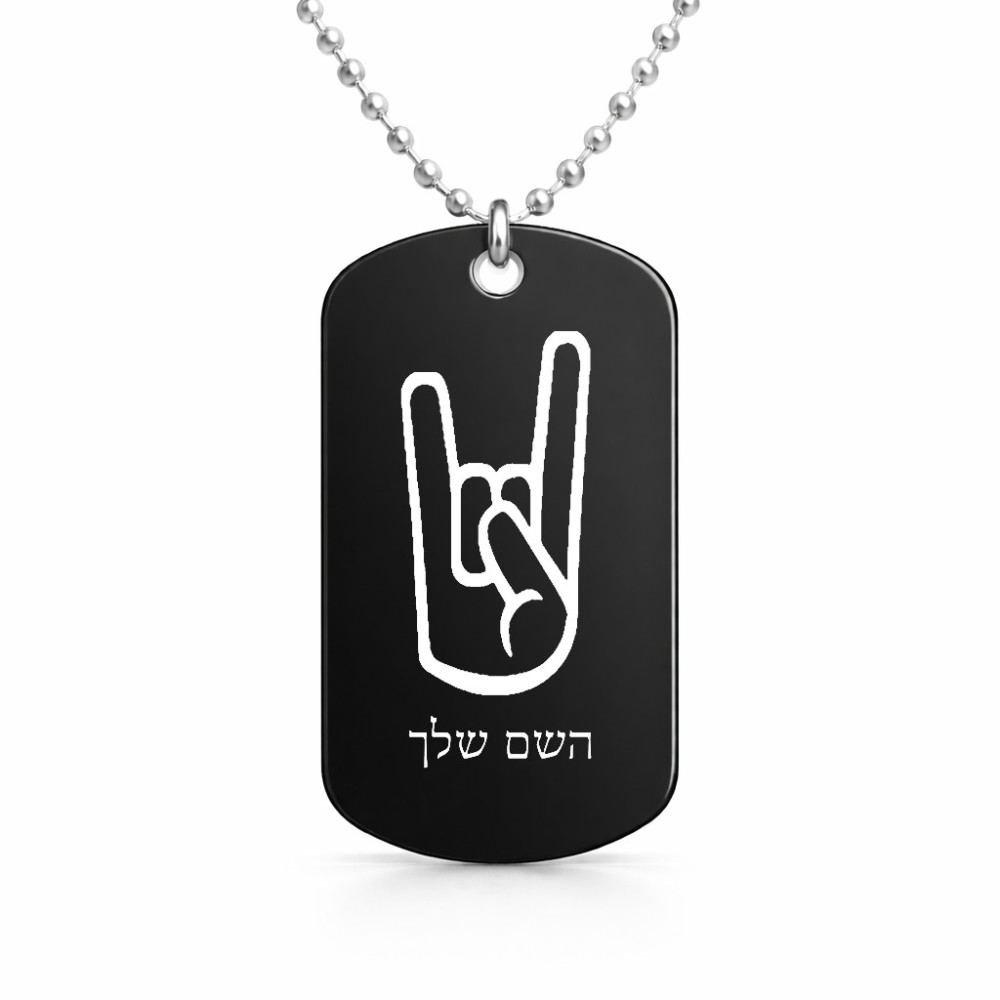 שרשרת דיסקיט מאלומיניום בעיצוב אישי עם השם שלך בעיצוב יד סלע גודל הדיסקיט 2.9 × 5 ס"מ. את השם המבוקש ניתן לציין בהזמנה, אם לא צויין אנחנו ניצור קשר לבירור.