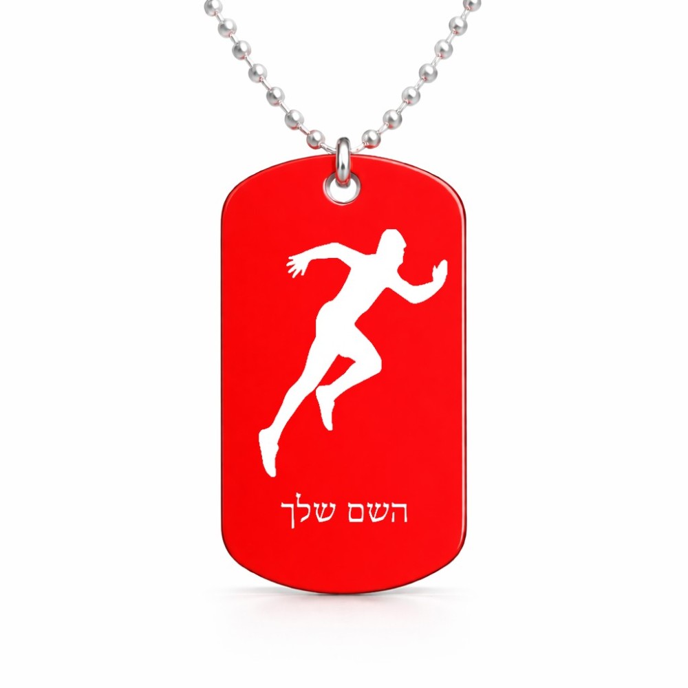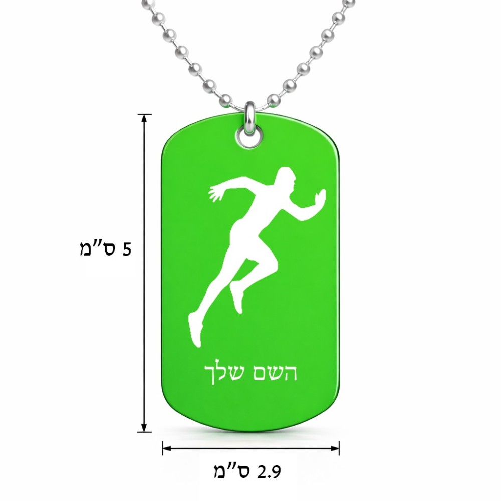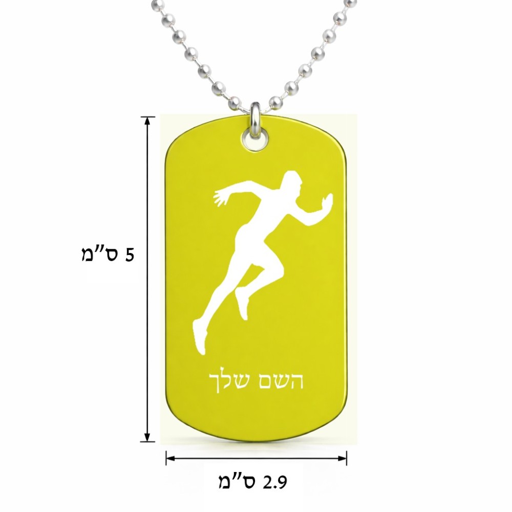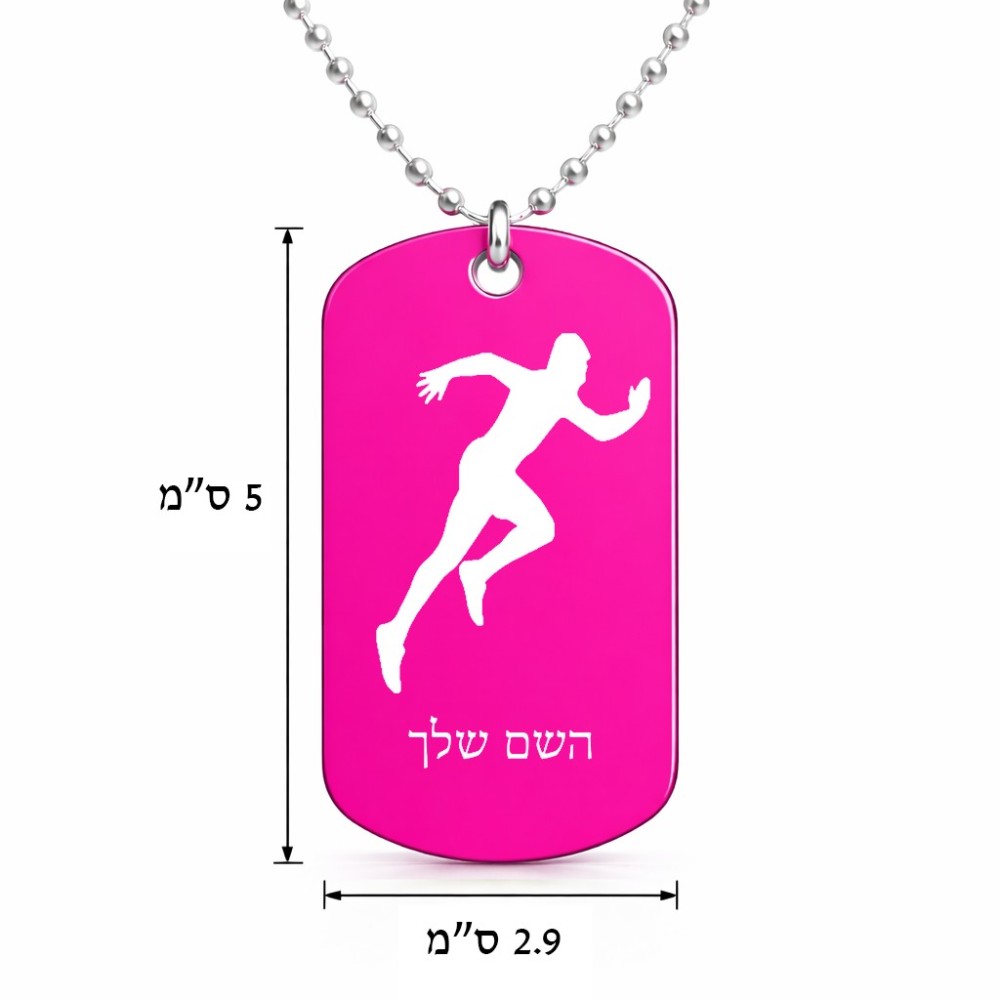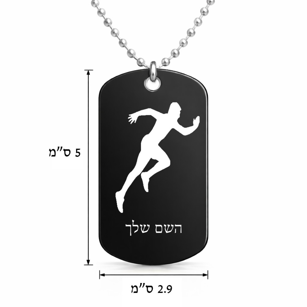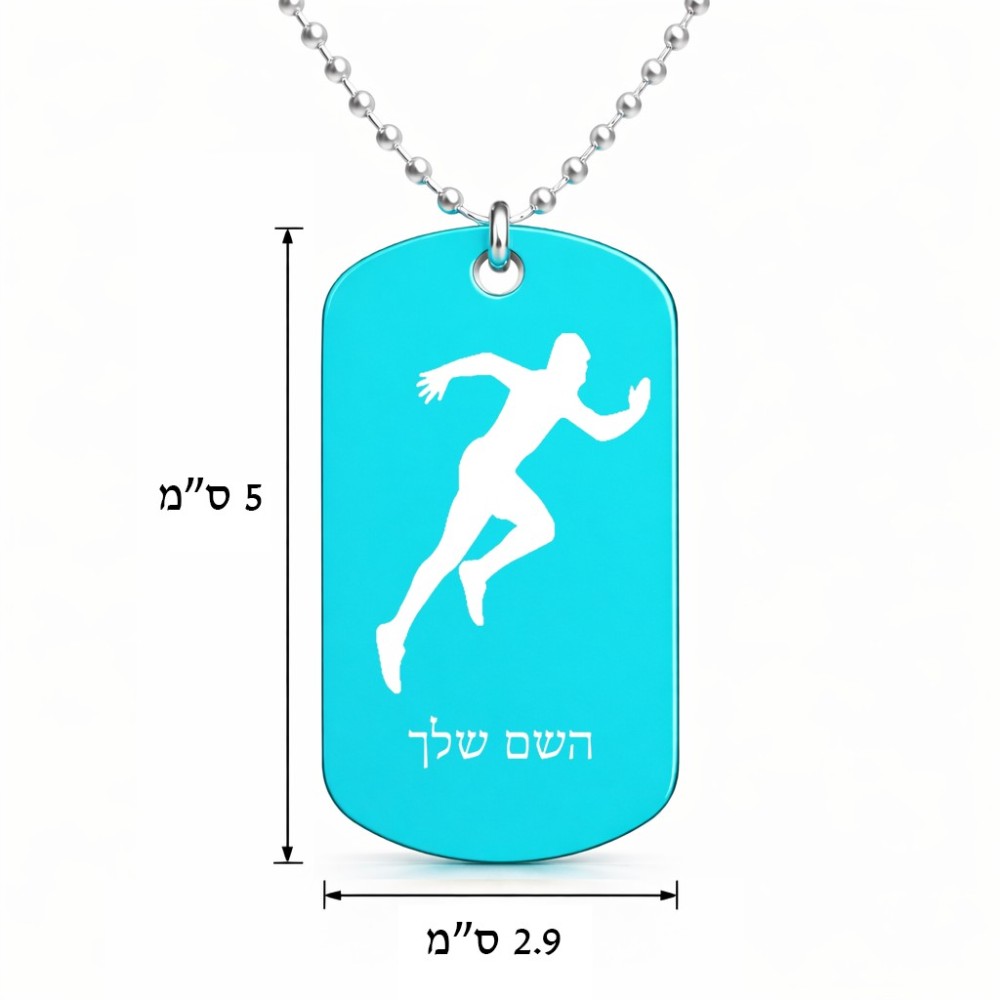 שרשרת דיסקיט מאלומיניום בעיצוב אישי עם השם שלך בעיצוב רץ גודל הדיסקיט 2.9 × 5 ס"מ. את השם המבוקש ניתן לציין בהזמנה, אם לא צויין אנחנו ניצור קשר לבירור.