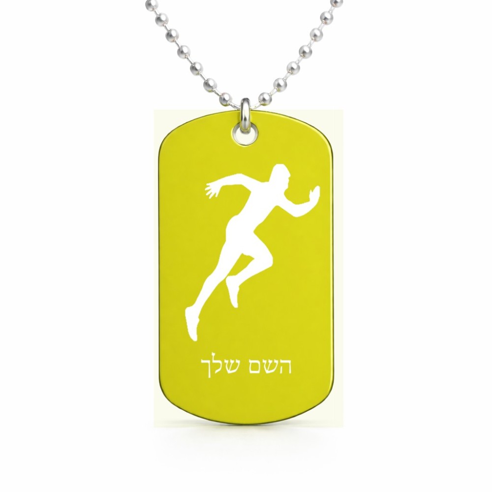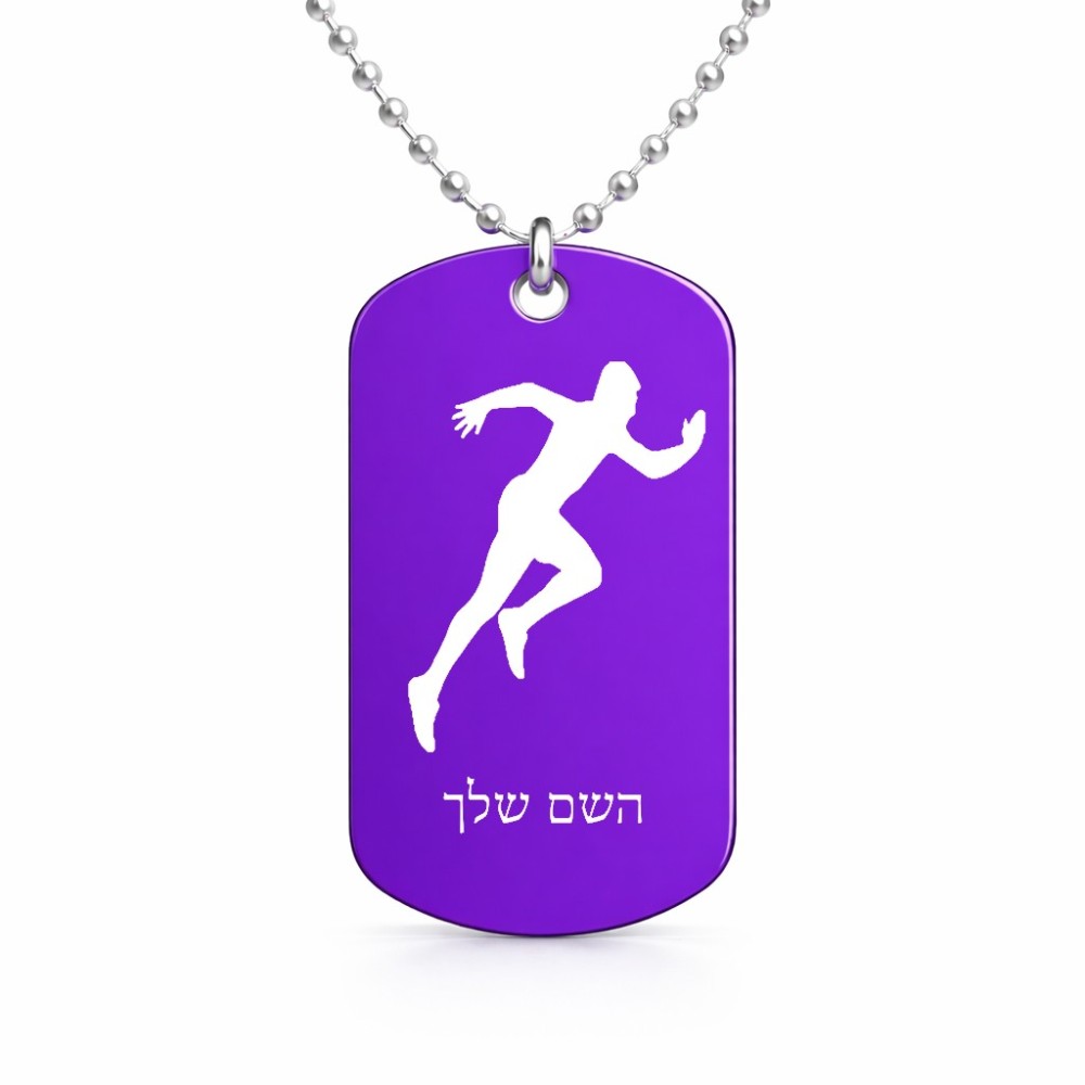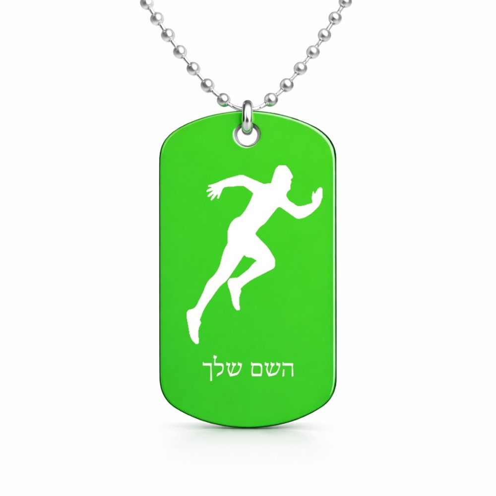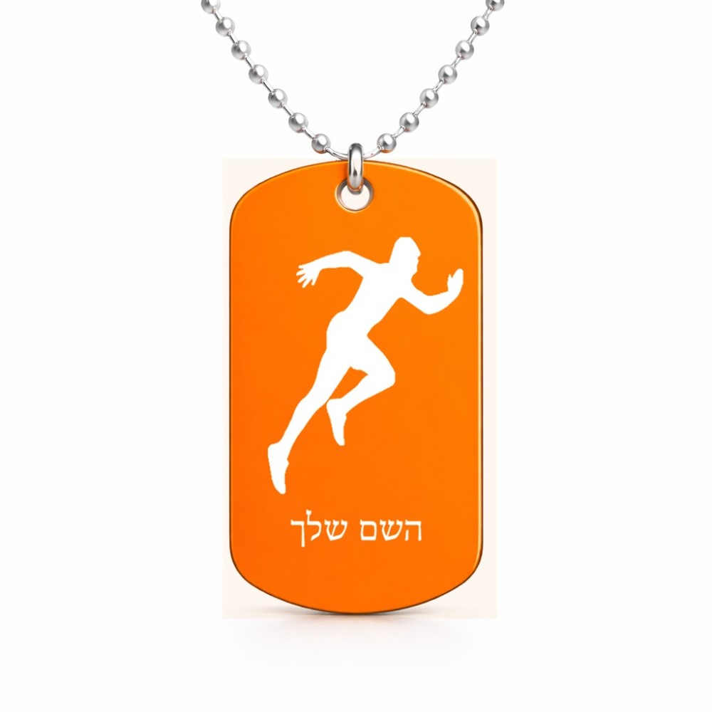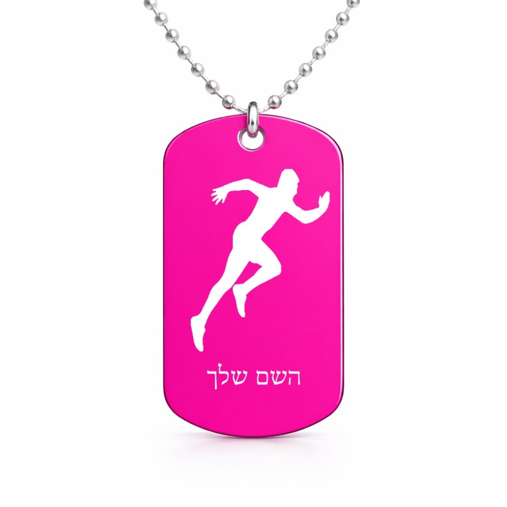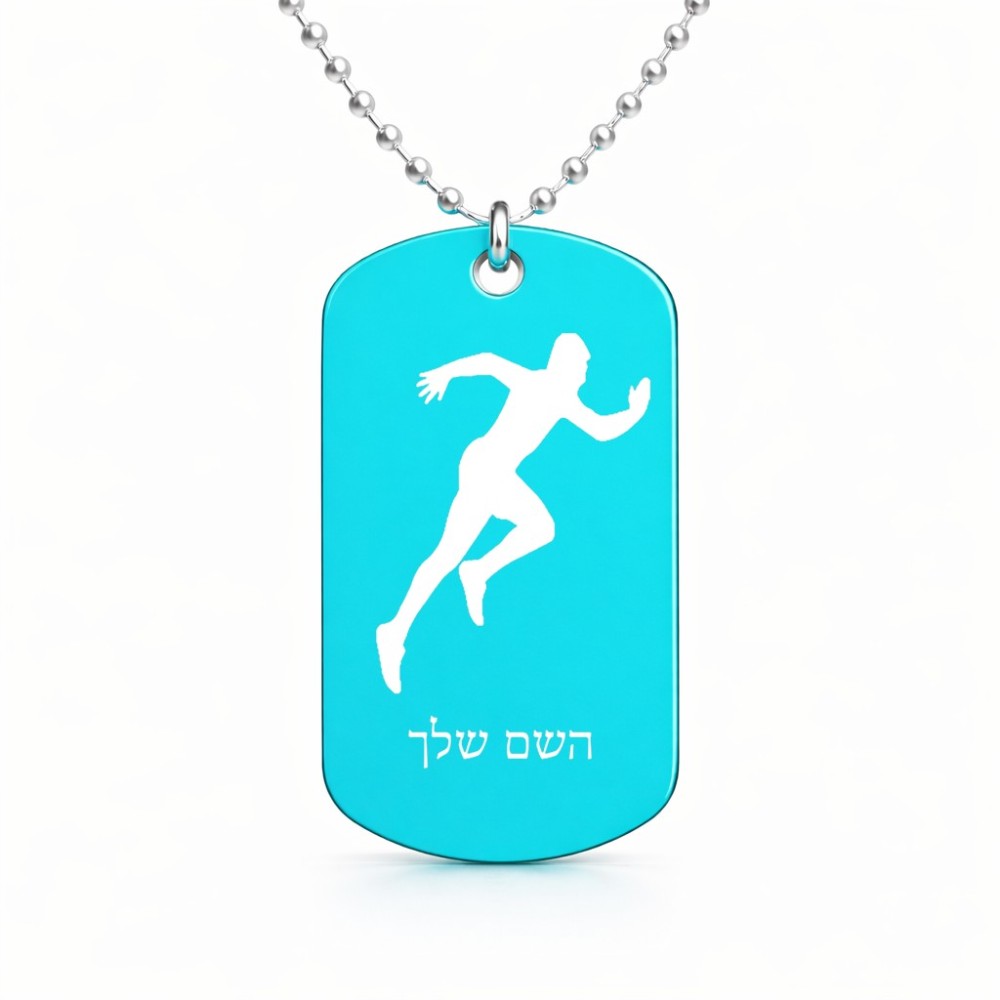 שרשרת דיסקיט מאלומיניום בעיצוב אישי עם השם שלך בעיצוב רץ גודל הדיסקיט 2.9 × 5 ס"מ. את השם המבוקש ניתן לציין בהזמנה, אם לא צויין אנחנו ניצור קשר לבירור.