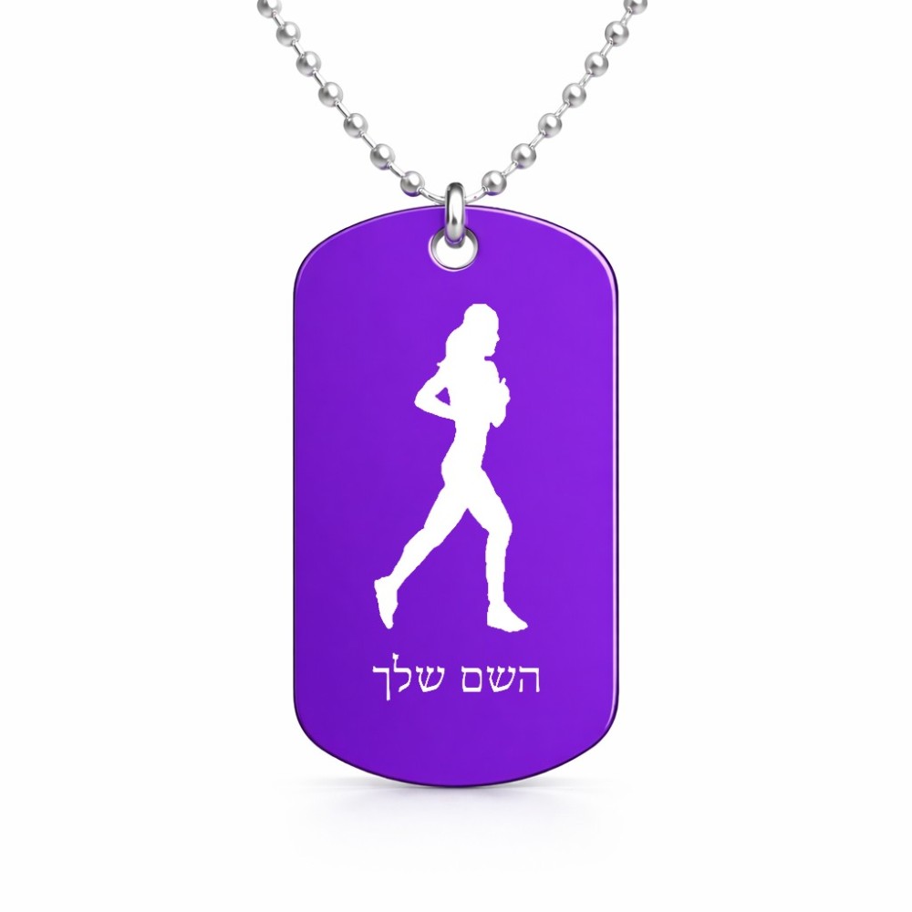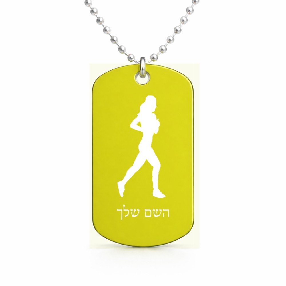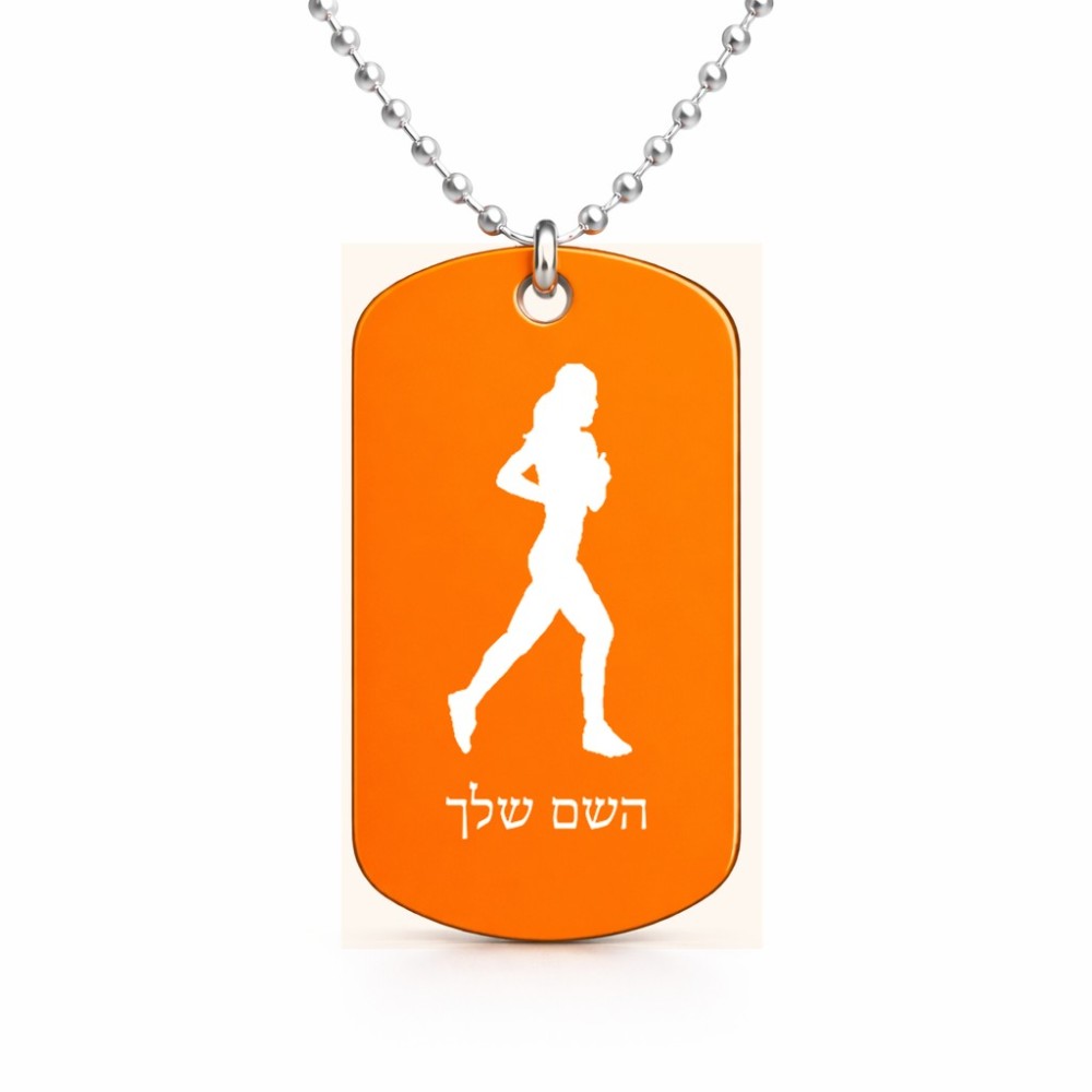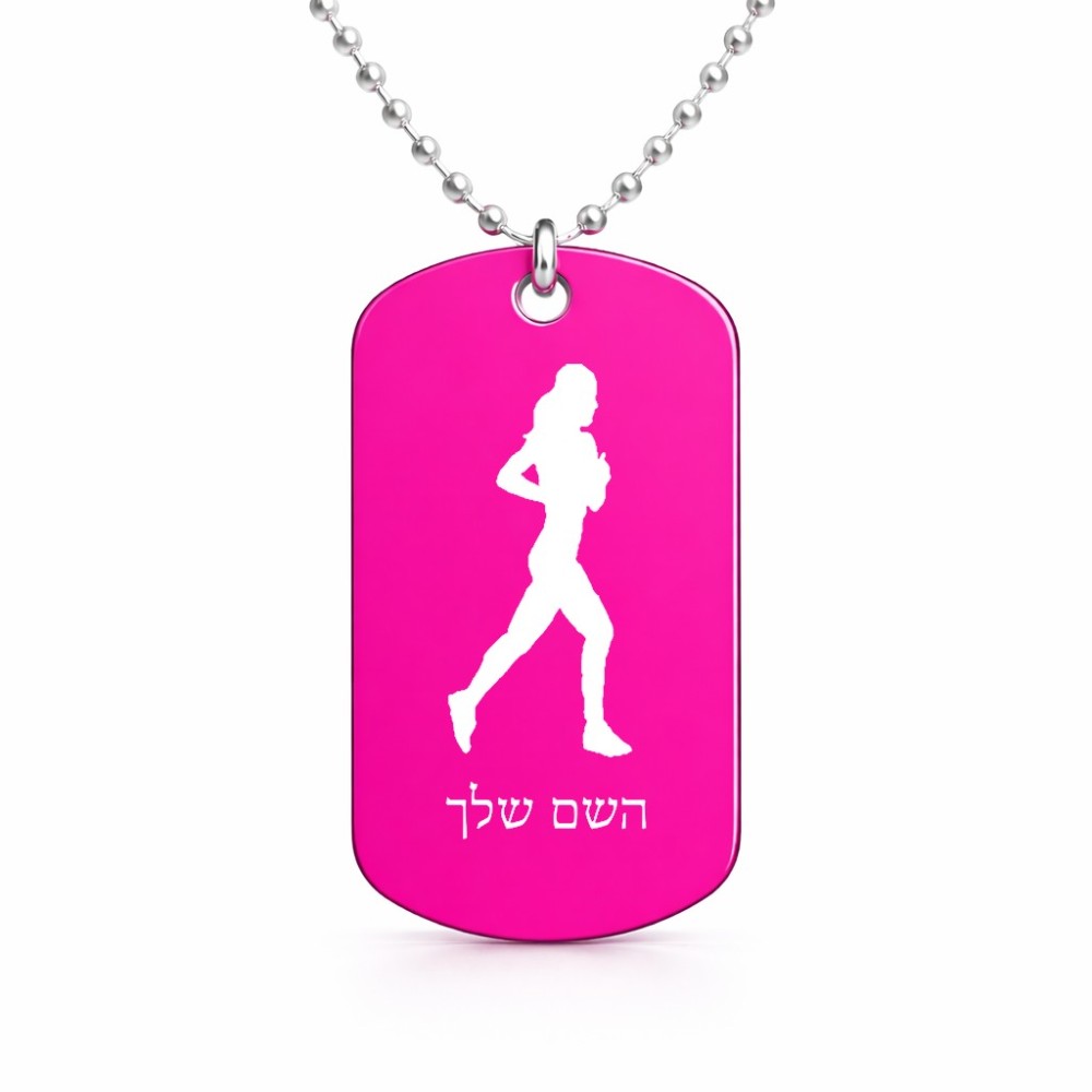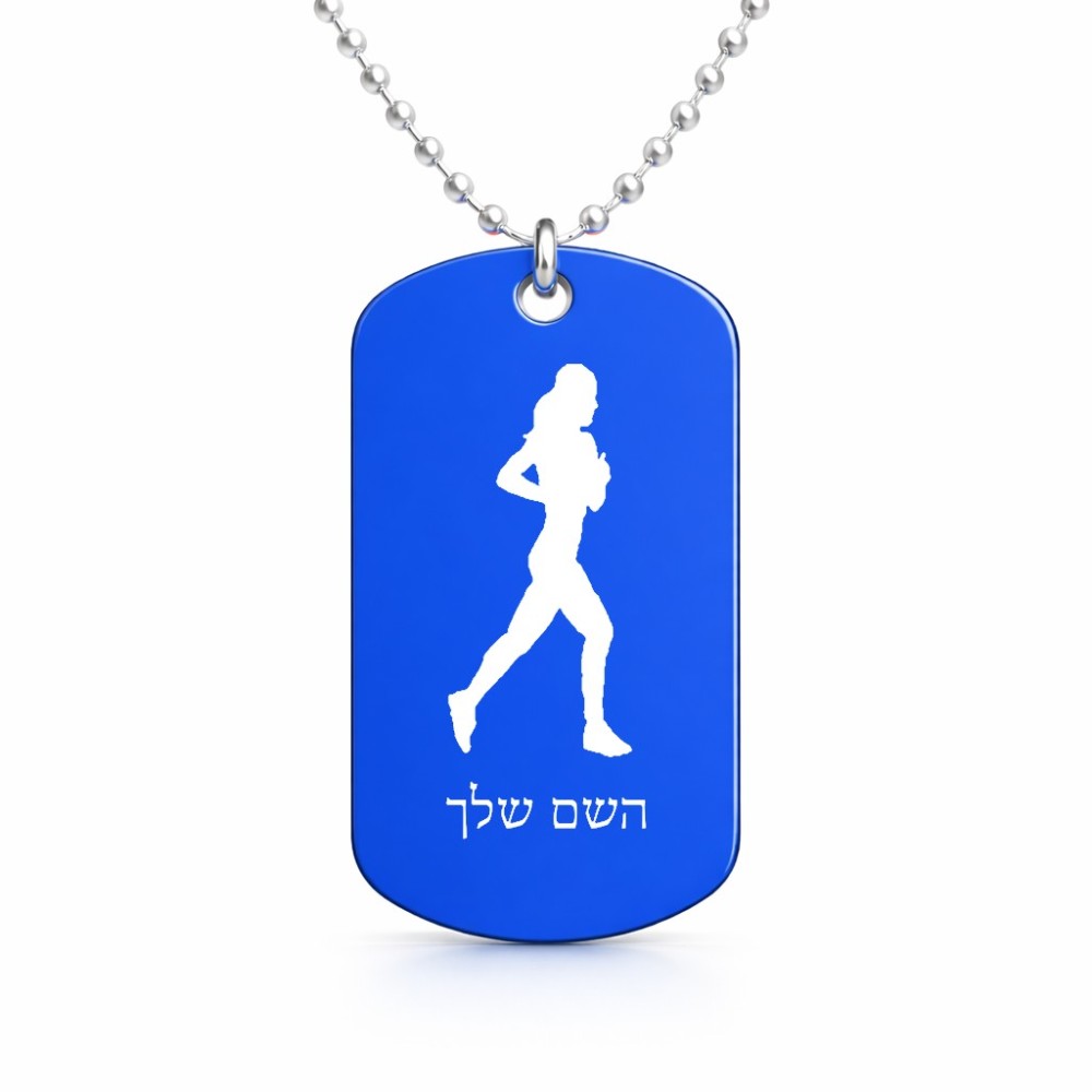 שרשרת דיסקיט מאלומיניום בעיצוב אישי עם השם שלך בעיצוב רץ רץ אישה גודל הדיסקיט 2.9 × 5 ס"מ. את השם המבוקש ניתן לציין בהזמנה, אם לא צויין אנחנו ניצור קשר לבירור.