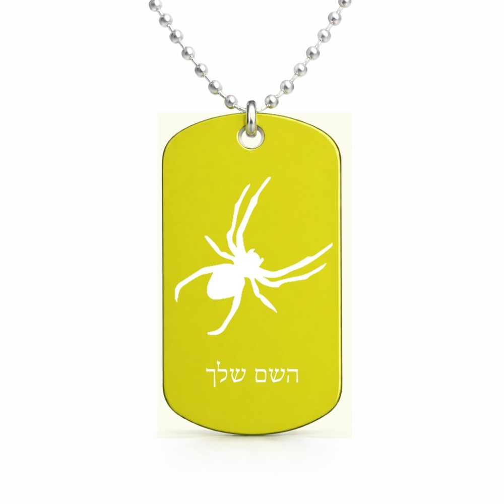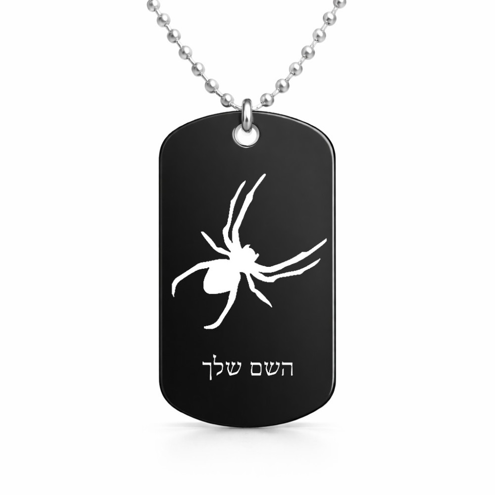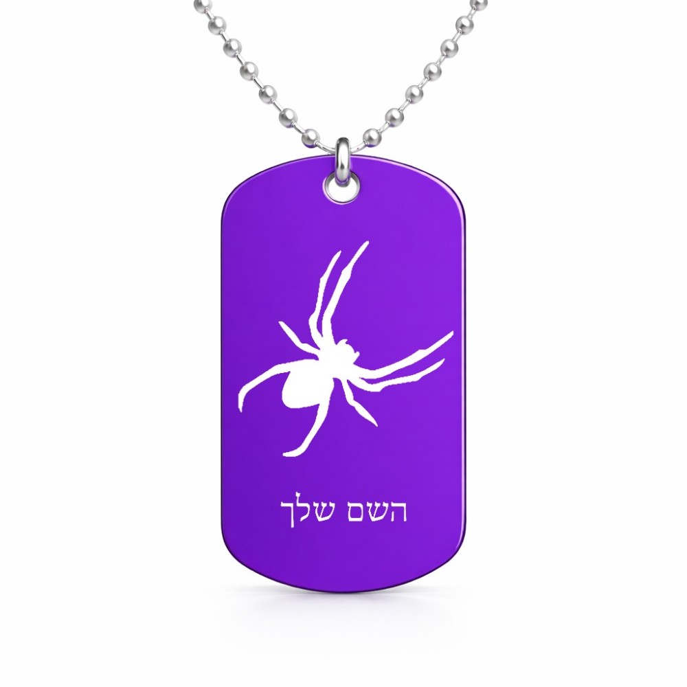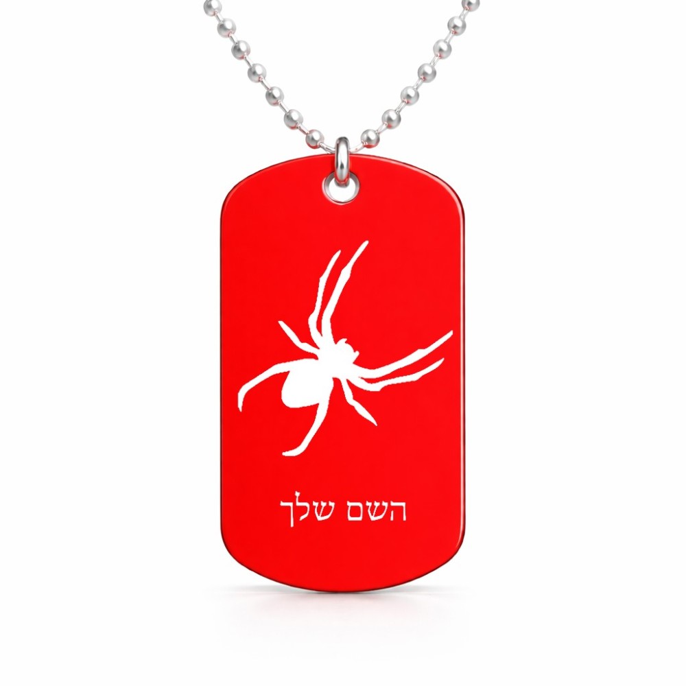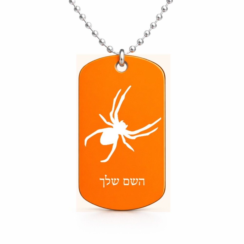 שרשרת דיסקיט מאלומיניום בעיצוב אישי עם השם שלך בעיצוב עכביש גודל הדיסקיט 2.9 × 5 ס"מ. את השם המבוקש ניתן לציין בהזמנה, אם לא צויין אנחנו ניצור קשר לבירור.