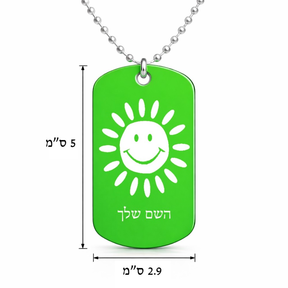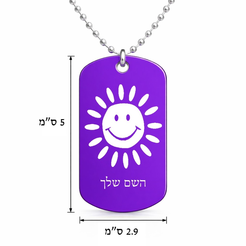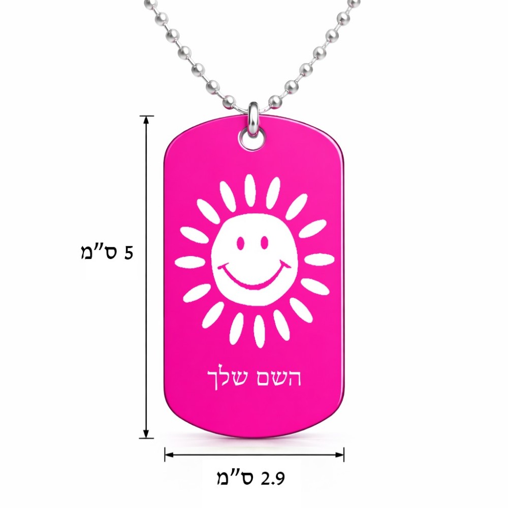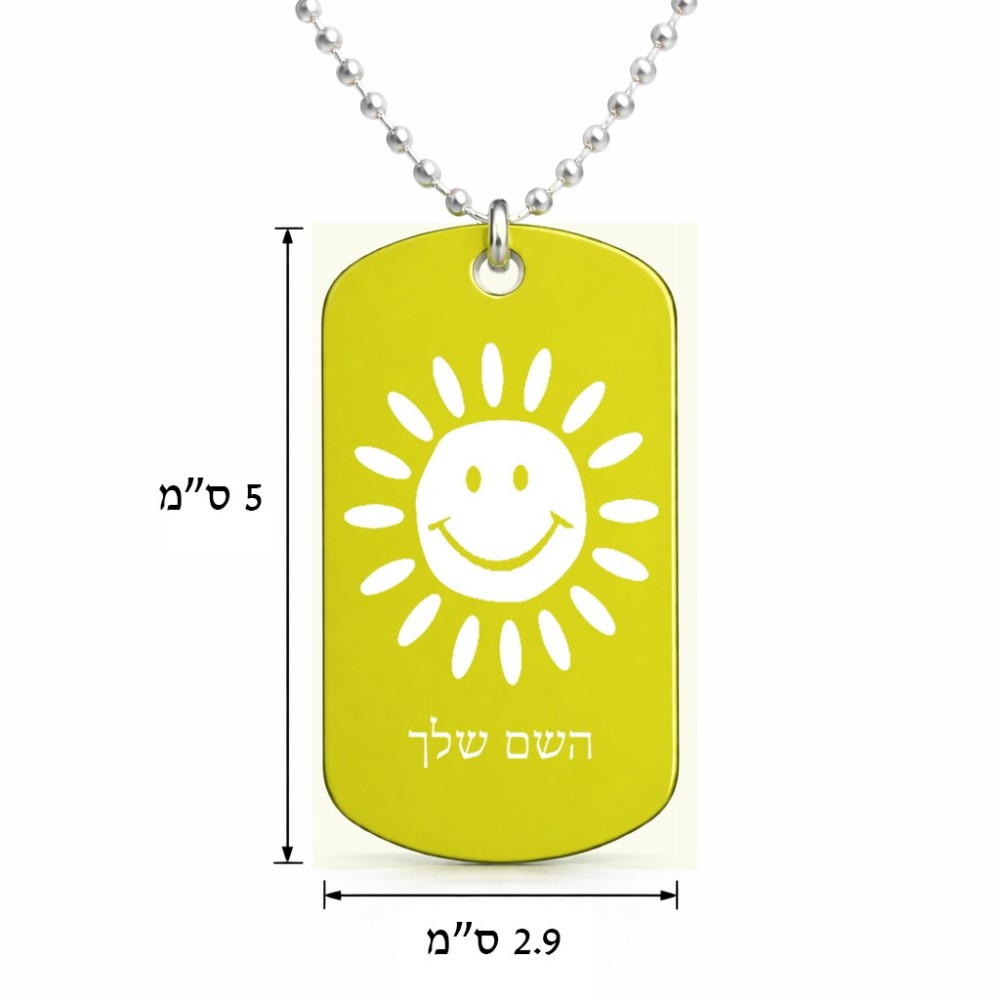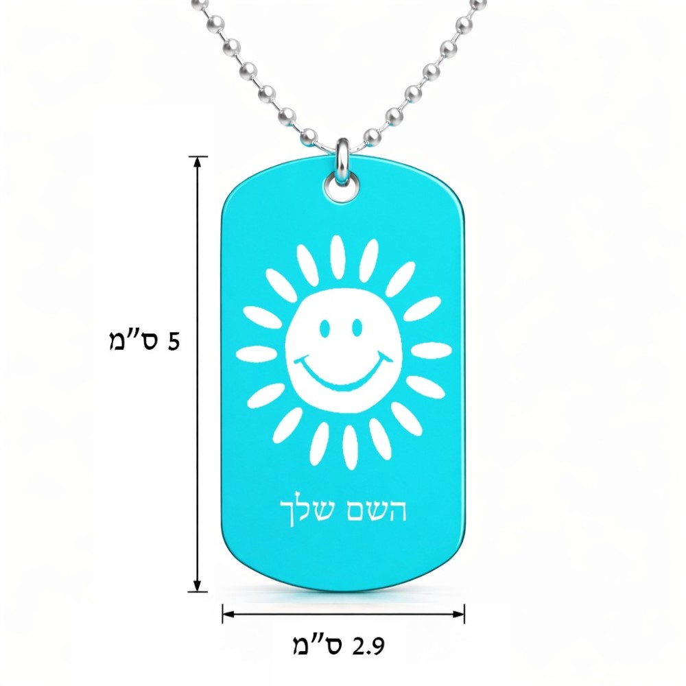 שרשרת דיסקיט מאלומיניום בעיצוב אישי עם השם שלך בעיצוב שמש גודל הדיסקיט 2.9 × 5 ס"מ