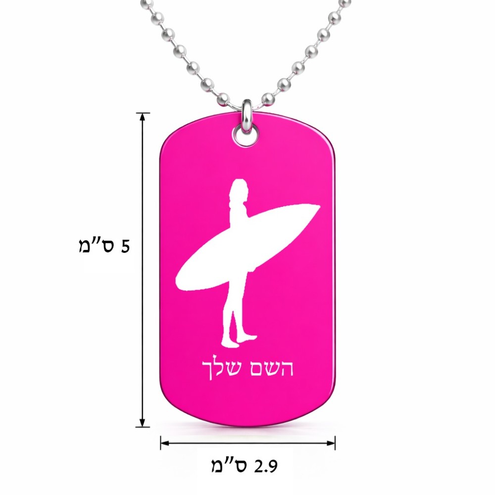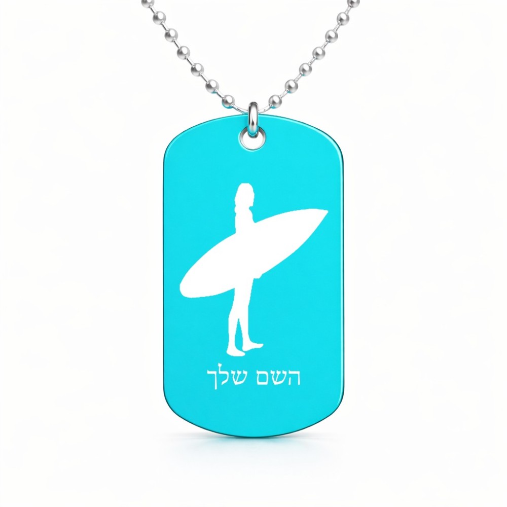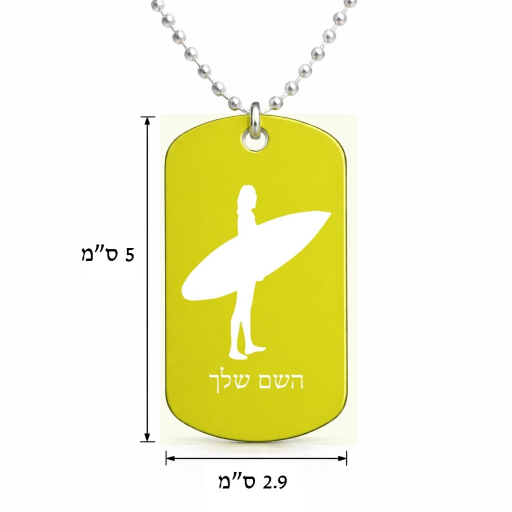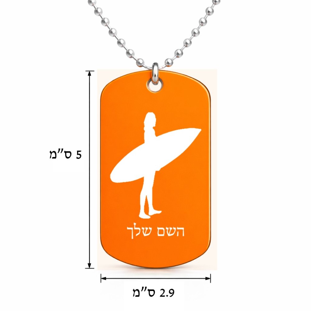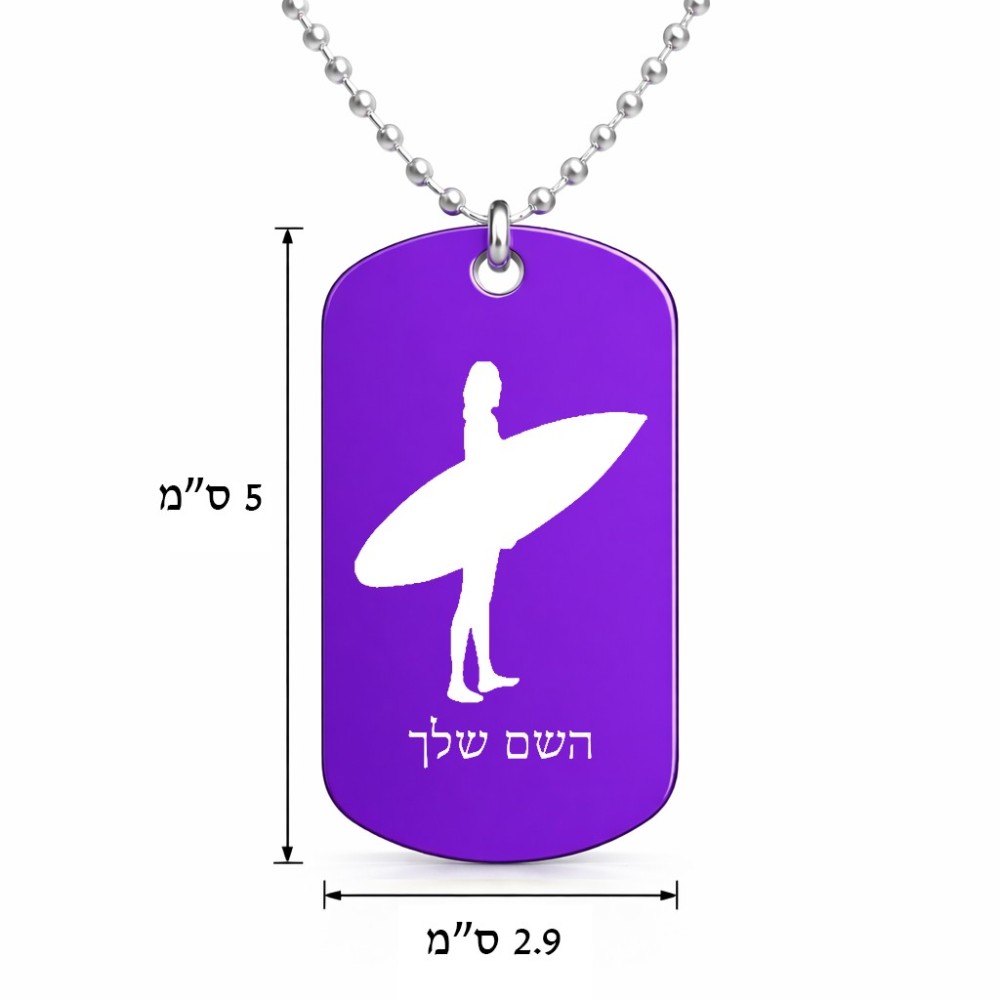 שרשרת דיסקיט מאלומיניום בעיצוב אישי עם השם שלך בעיצוב גלישה - גלישה גודל הדיסקיט 2.9 × 5 ס"מ. את השם המבוקש ניתן לציין בהזמנה, אם לא צויין אנחנו ניצור קשר לבירור.