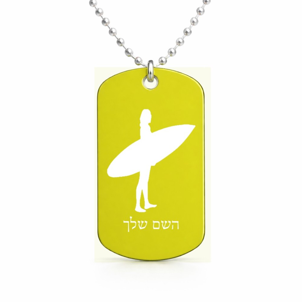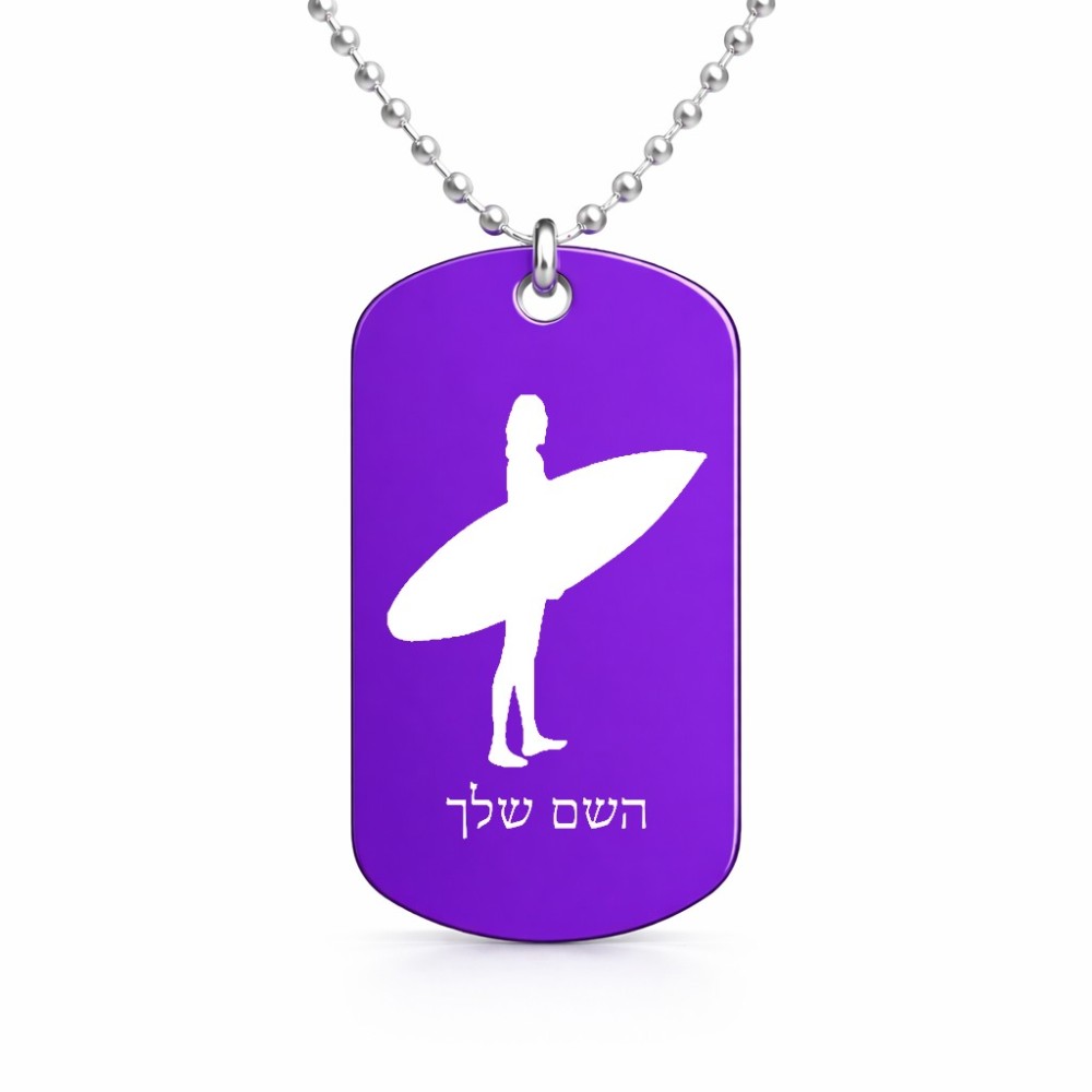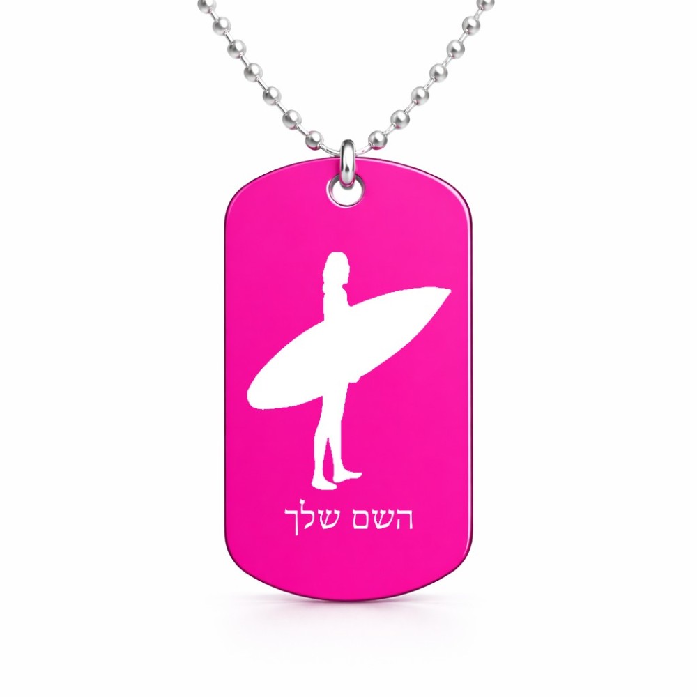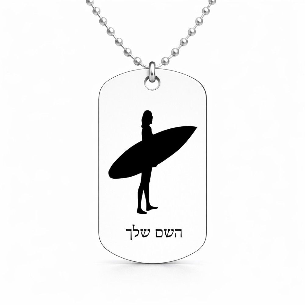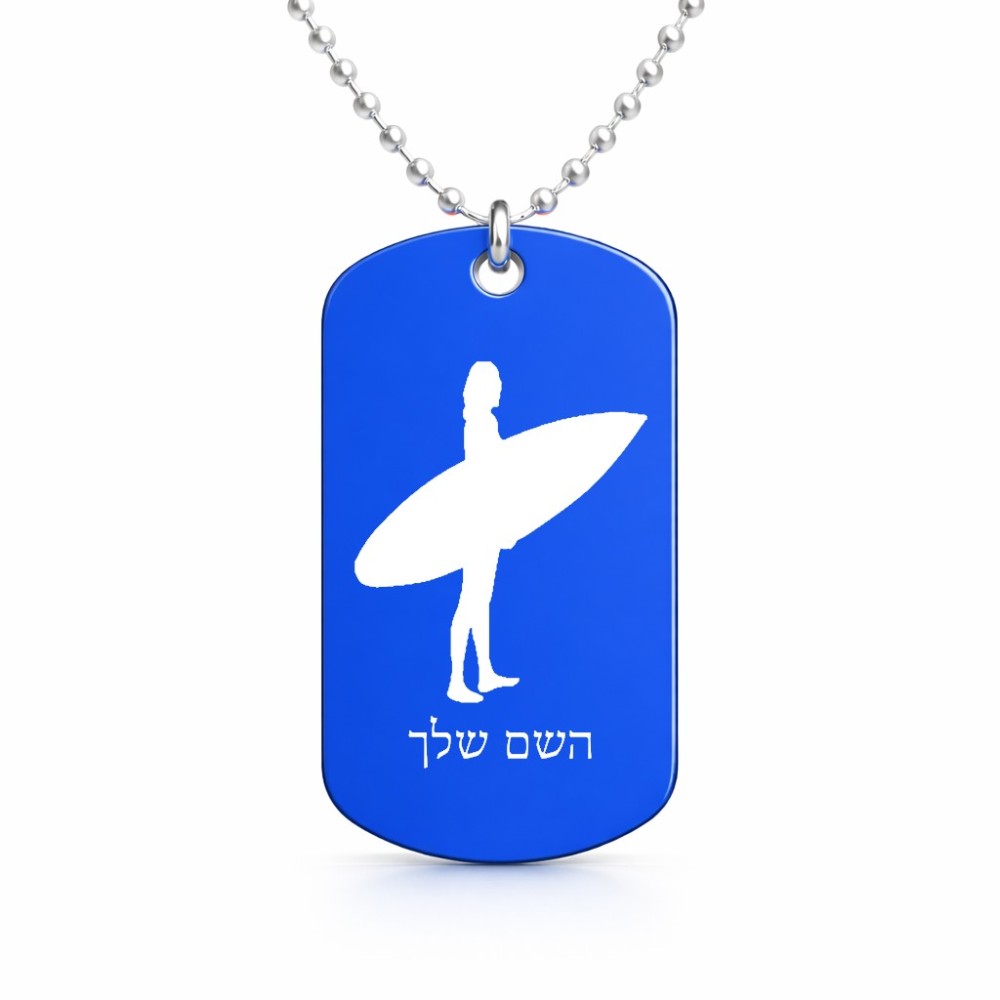 שרשרת דיסקיט מאלומיניום בעיצוב אישי עם השם שלך בעיצוב גלישה - גלישה גודל הדיסקיט 2.9 × 5 ס"מ. את השם המבוקש ניתן לציין בהזמנה, אם לא צויין אנחנו ניצור קשר לבירור.