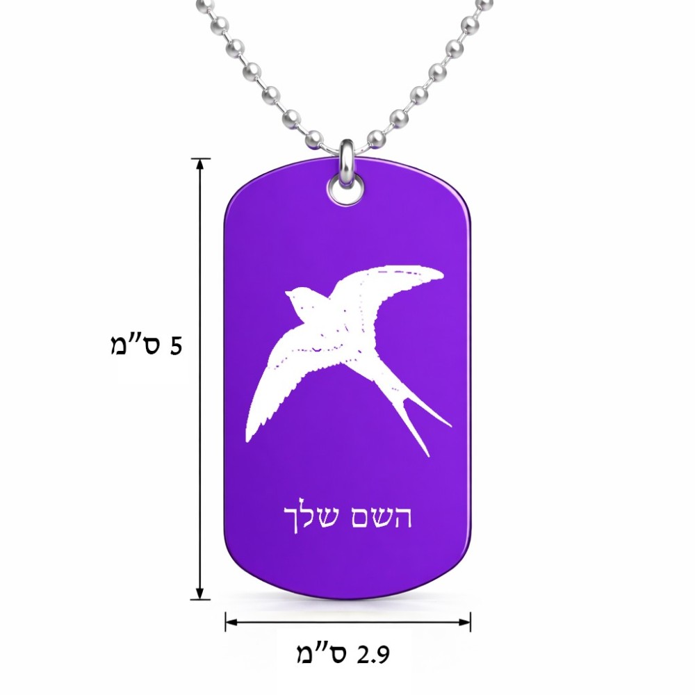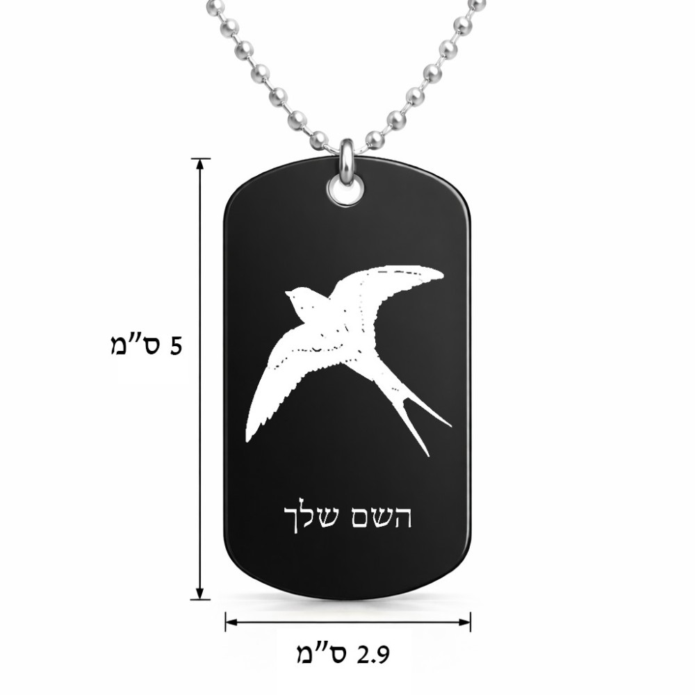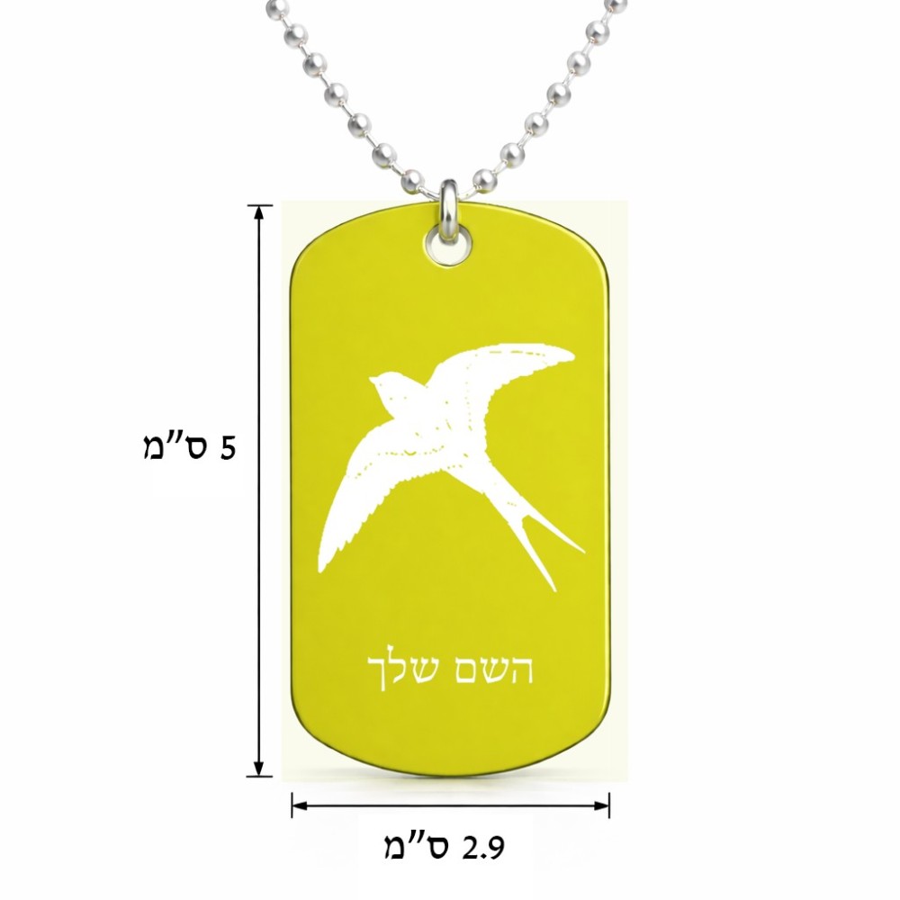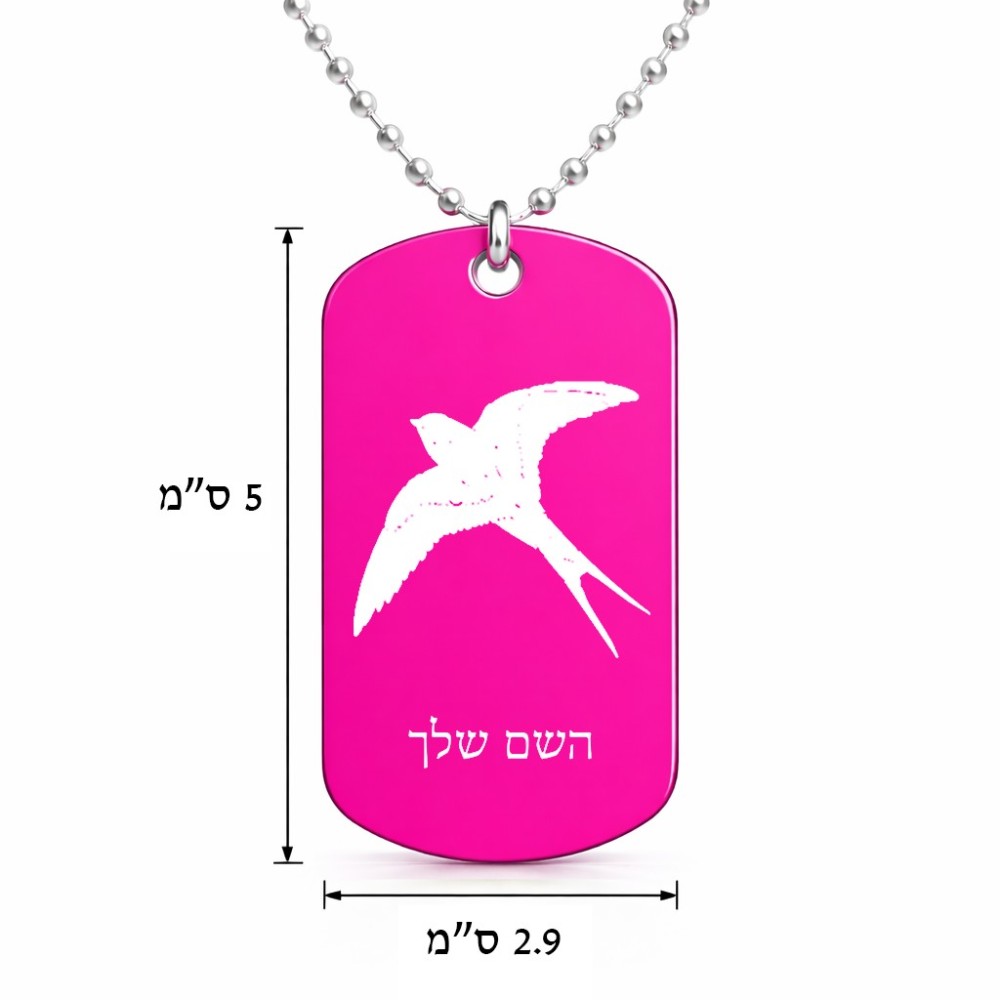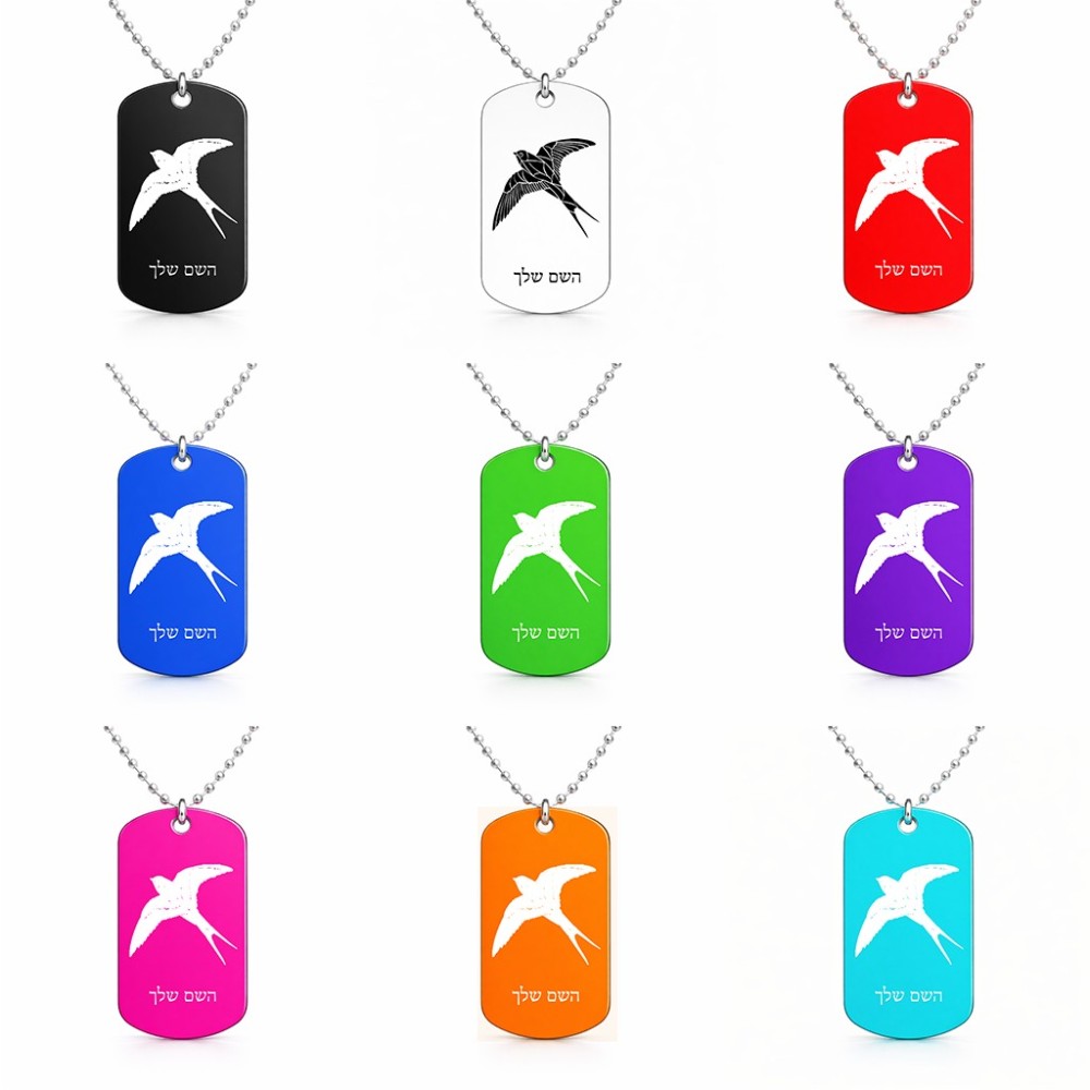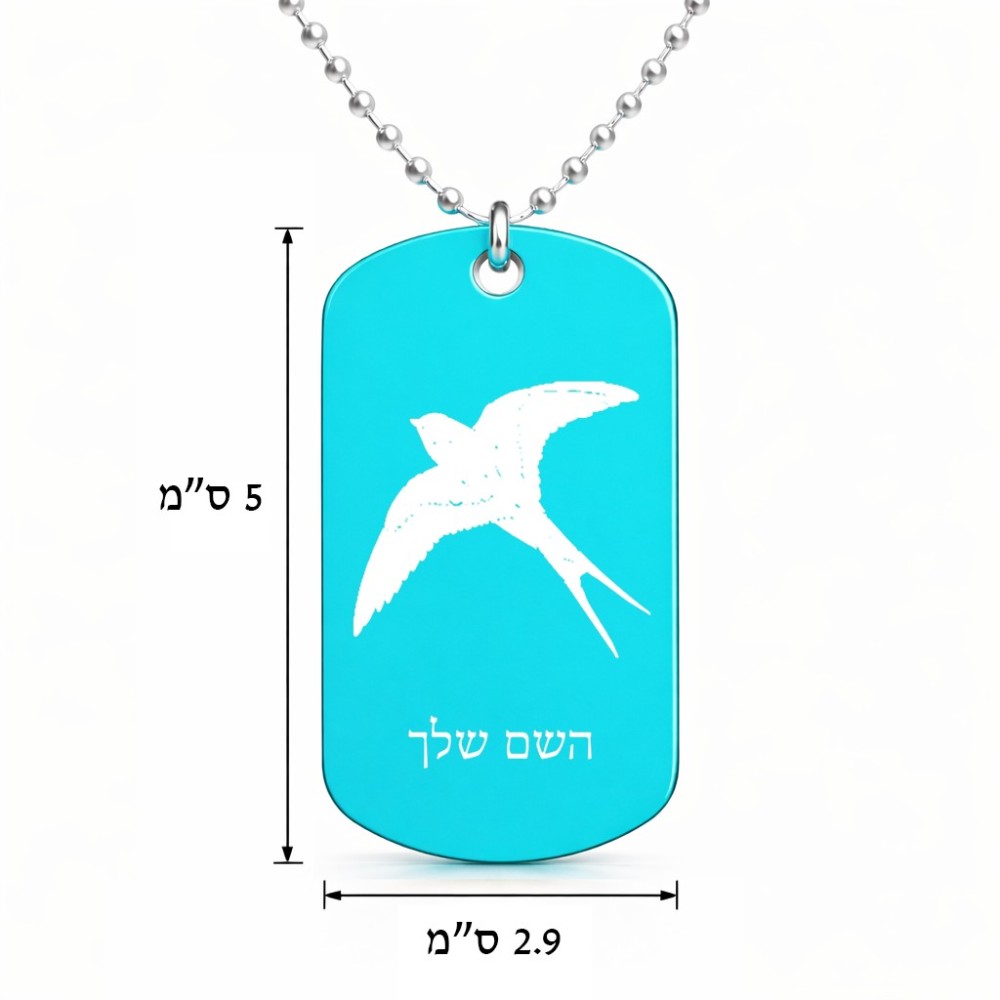 שרשרת דיסקיט מאלומיניום בעיצוב אישי עם השם שלך בעיצוב לבלוע גודל הדיסקיט 2.9 × 5 ס"מ