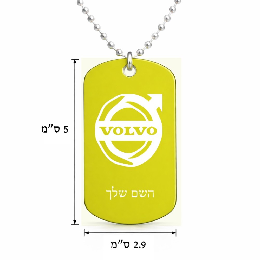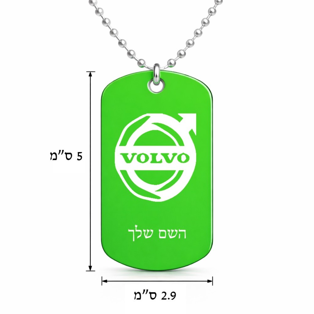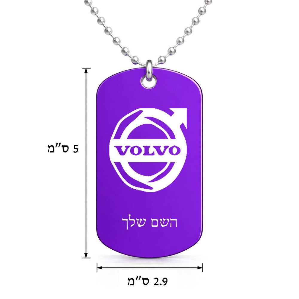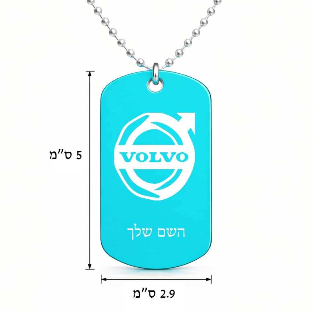 שרשרת דיסקיט מאלומיניום בעיצוב אישי עם השם שלך בעיצוב וולוו גודל הדיסקיט 2.9 × 5 ס"מ