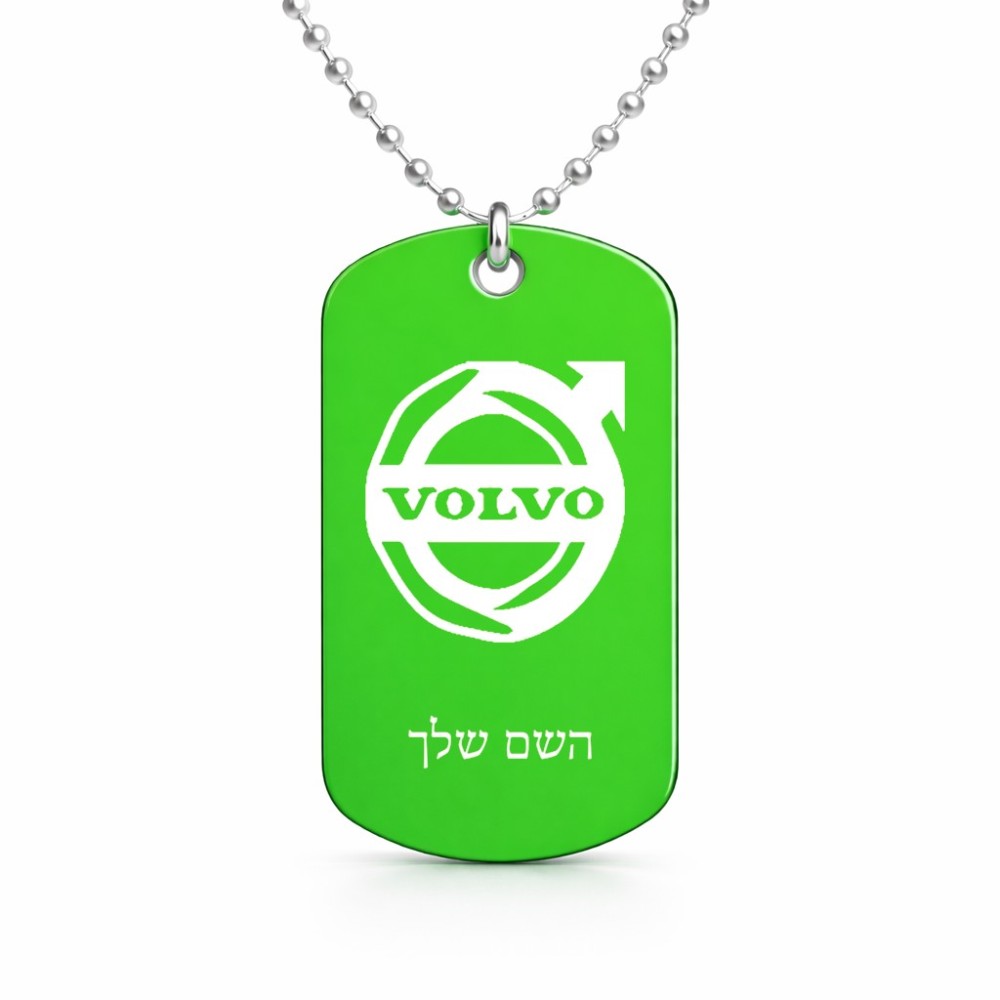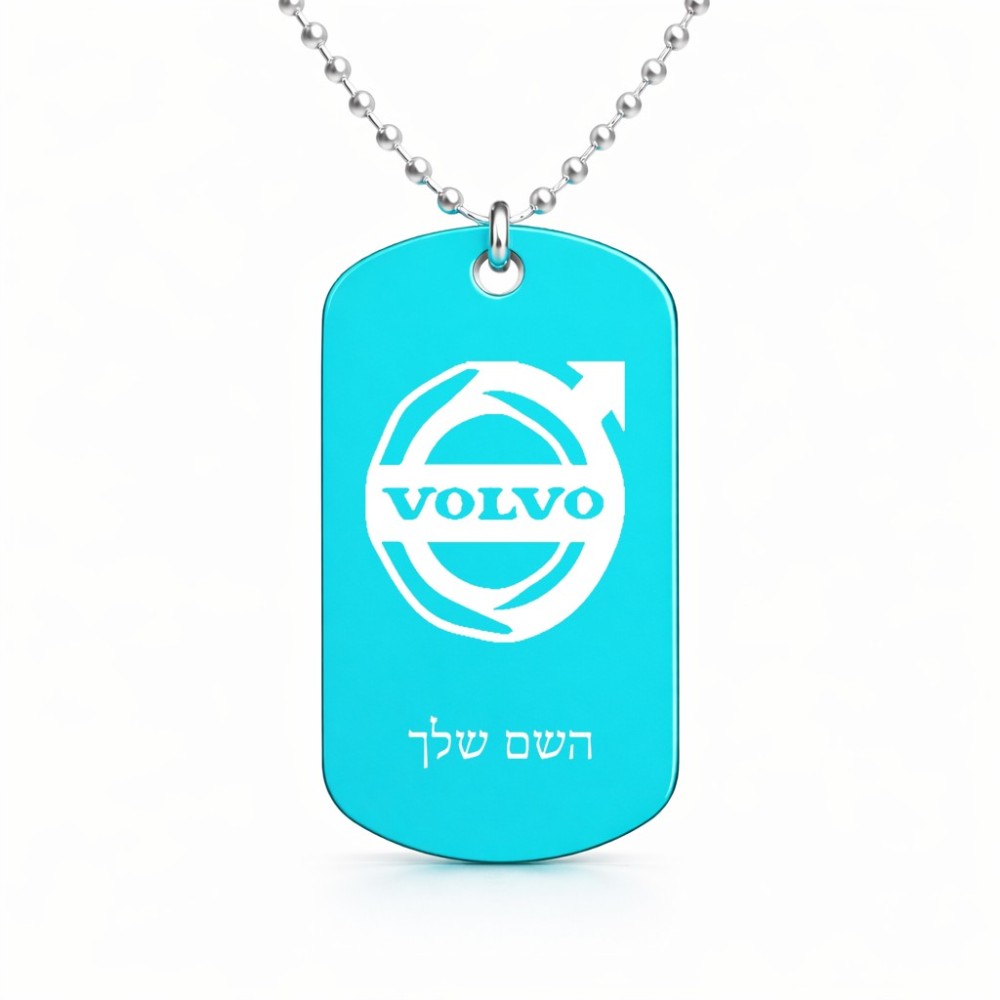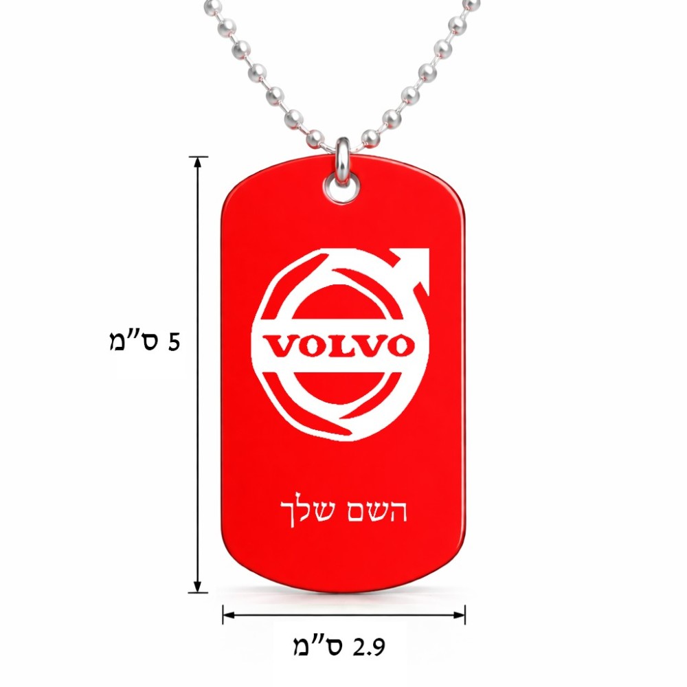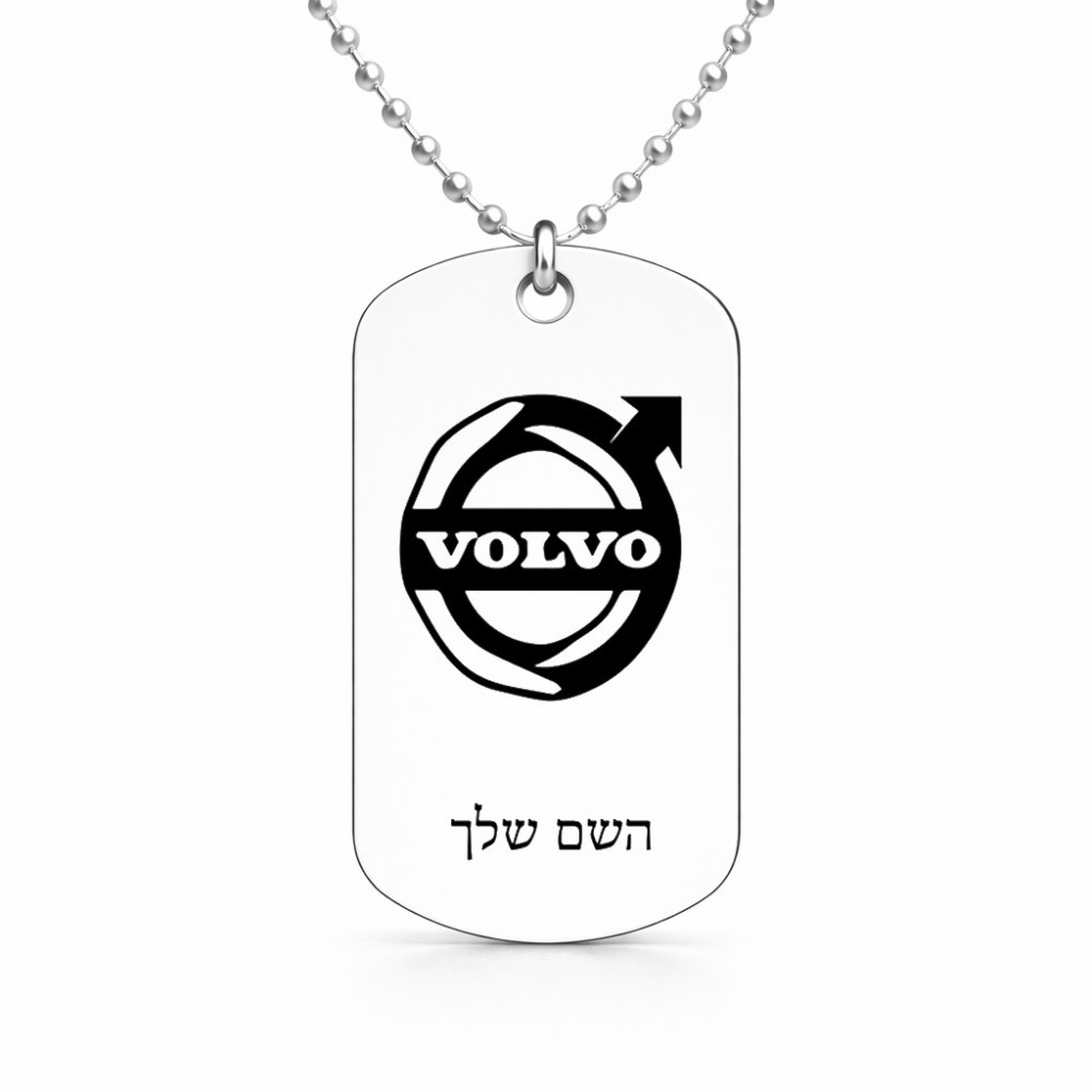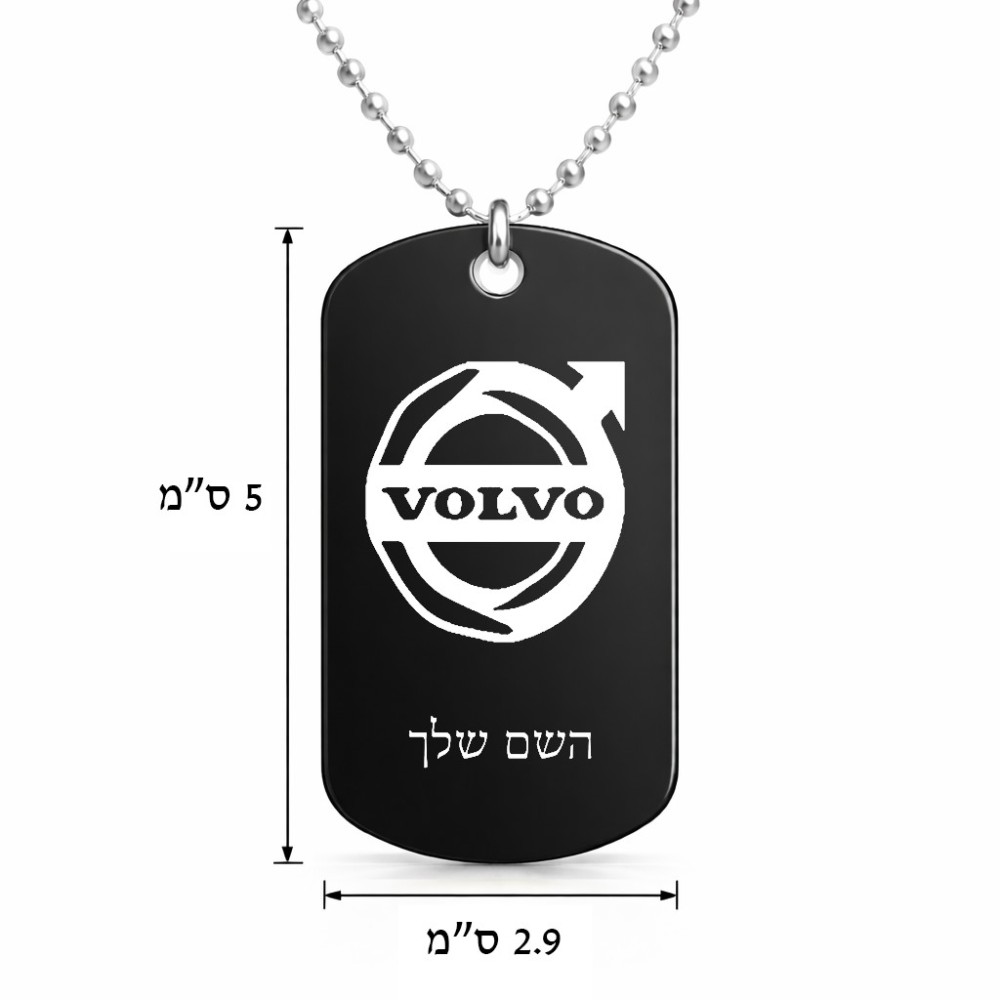 שרשרת דיסקיט מאלומיניום בעיצוב אישי עם השם שלך בעיצוב וולוו גודל הדיסקיט 2.9 × 5 ס"מ