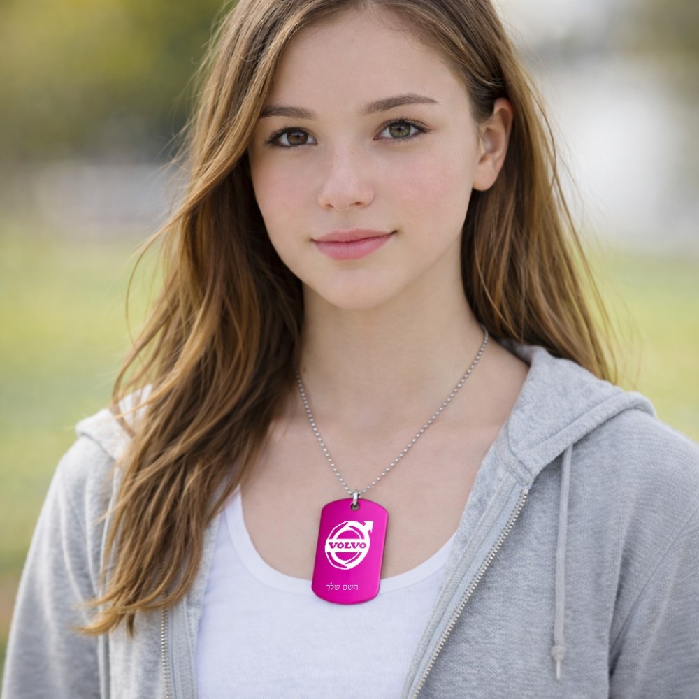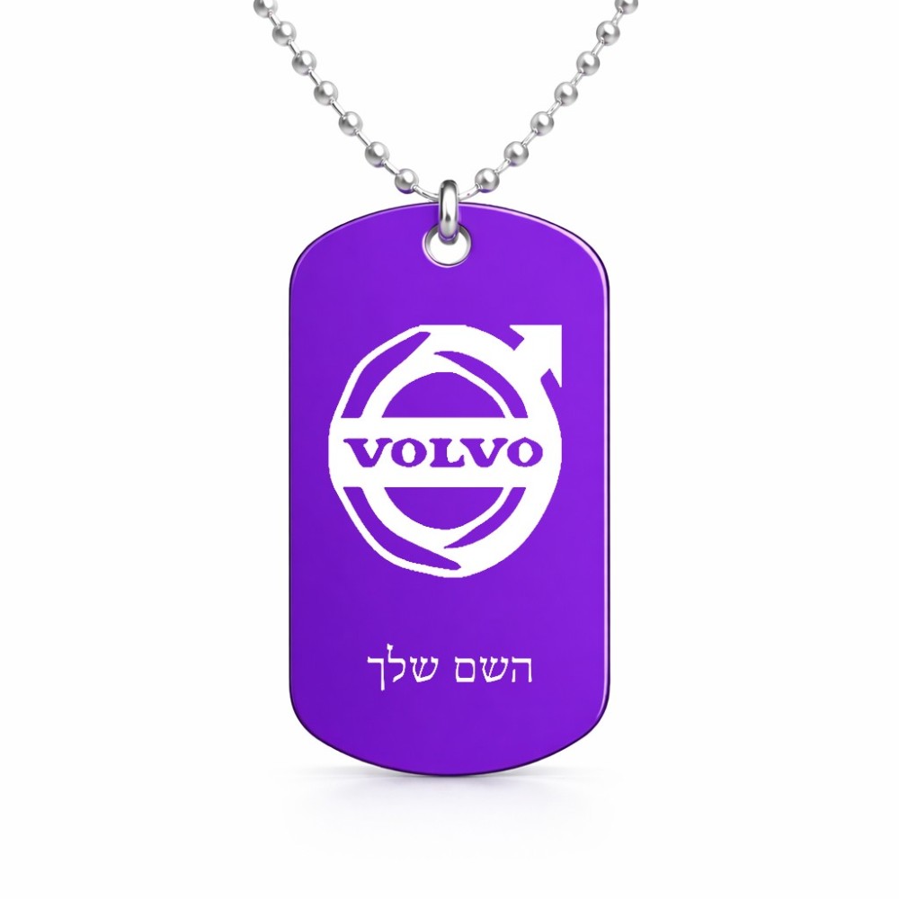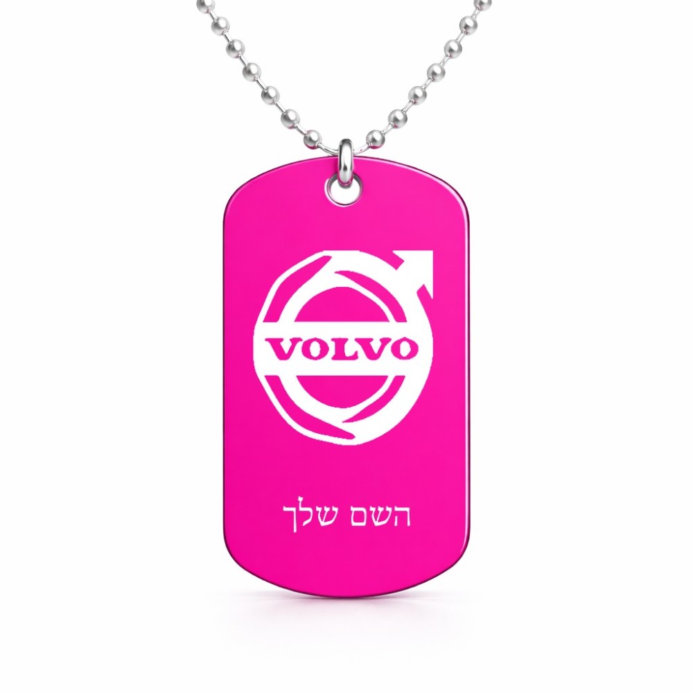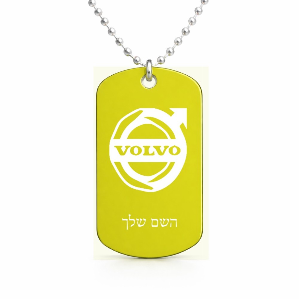 שרשרת דיסקיט מאלומיניום בעיצוב אישי עם השם שלך בעיצוב וולוו גודל הדיסקיט 2.9 × 5 ס"מ
