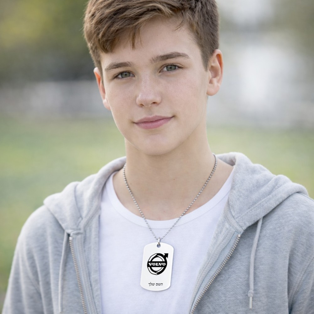 שרשרת דיסקיט מאלומיניום בעיצוב אישי עם השם שלך בעיצוב וולוו גודל הדיסקיט 2.9 × 5 ס"מ. את השם המבוקש ניתן לציין בהזמנה, אם לא צויין אנחנו ניצור קשר לבירור.