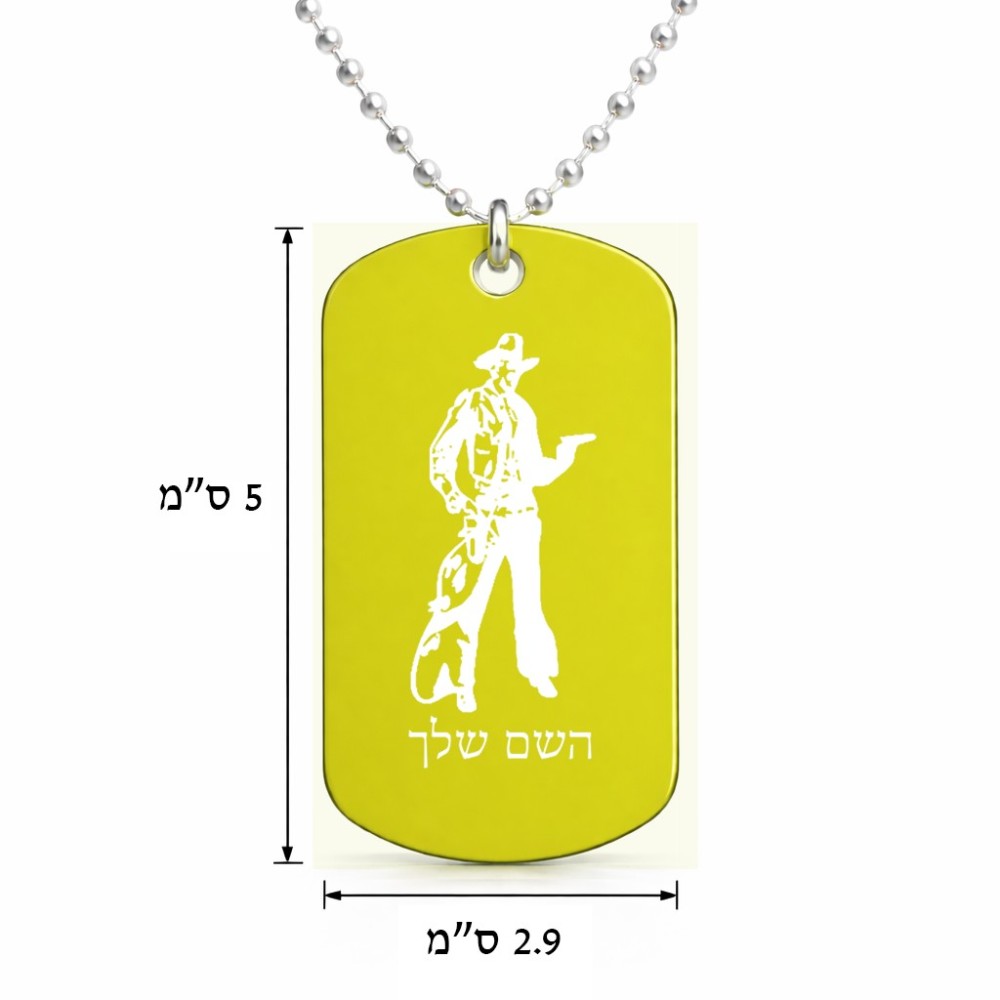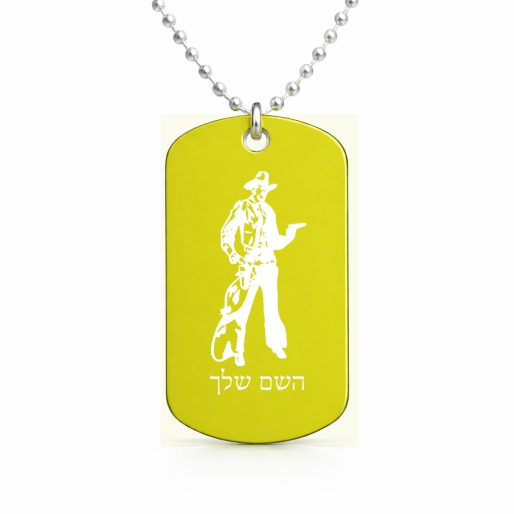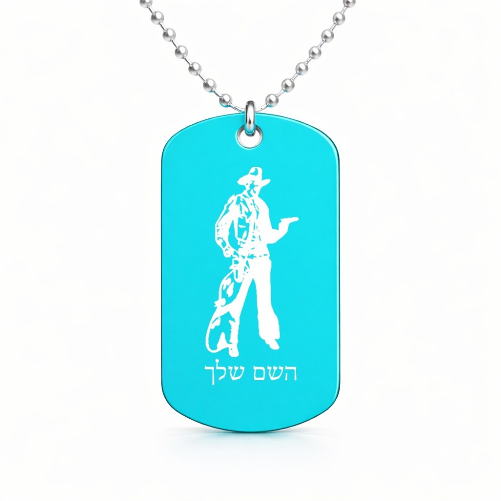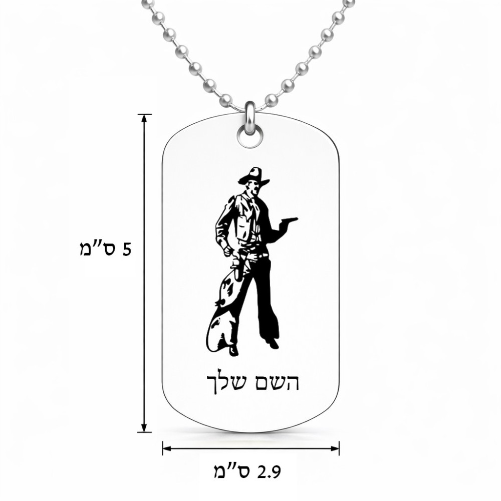 שרשרת דיסקיט מאלומיניום בעיצוב אישי עם השם שלך בעיצוב קאובוי המערב הפרוע גודל הדיסקיט 2.9 × 5 ס"מ. את השם המבוקש ניתן לציין בהזמנה, אם לא צויין אנחנו ניצור קשר לבירור.