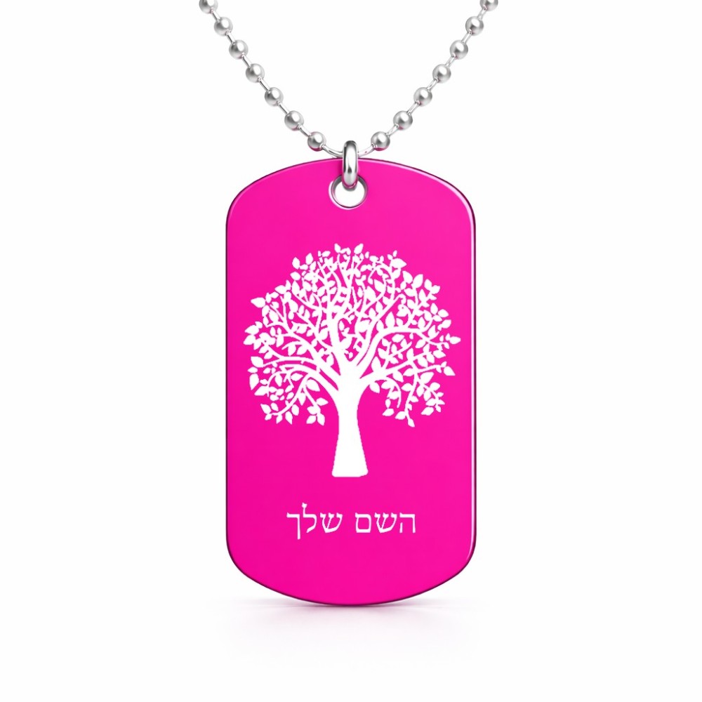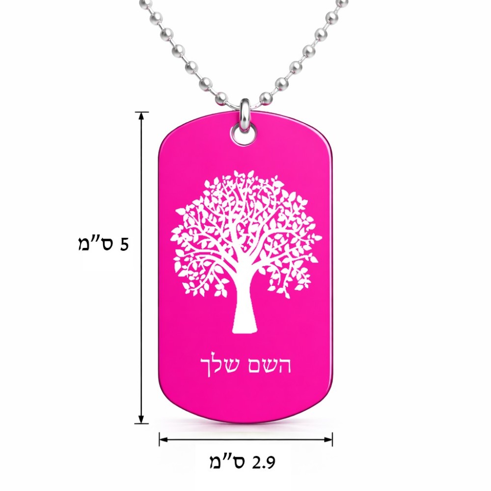 שרשרת דיסקיט מאלומיניום בעיצוב אישי עם השם שלך בעיצוב עץ גודל הדיסקיט 2.9 × 5 ס"מ. את השם המבוקש ניתן לציין בהזמנה, אם לא צויין אנחנו ניצור קשר לבירור.