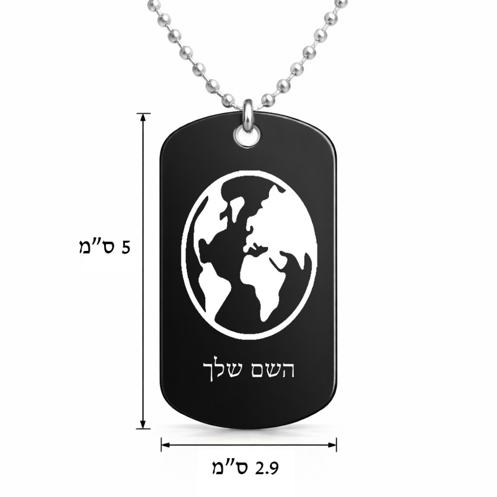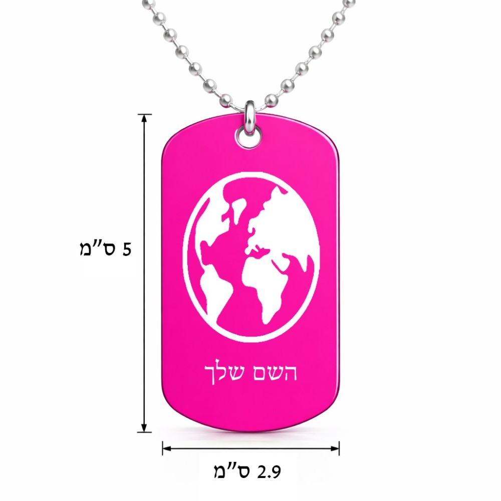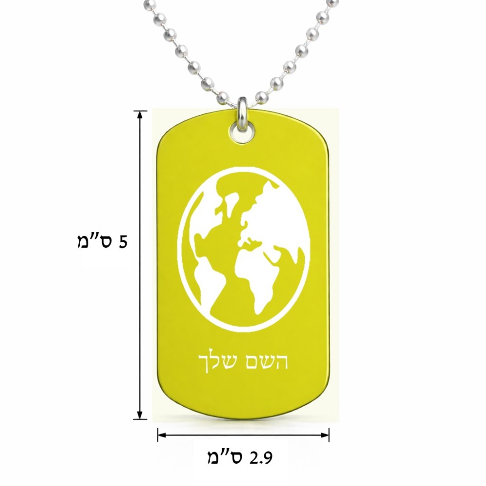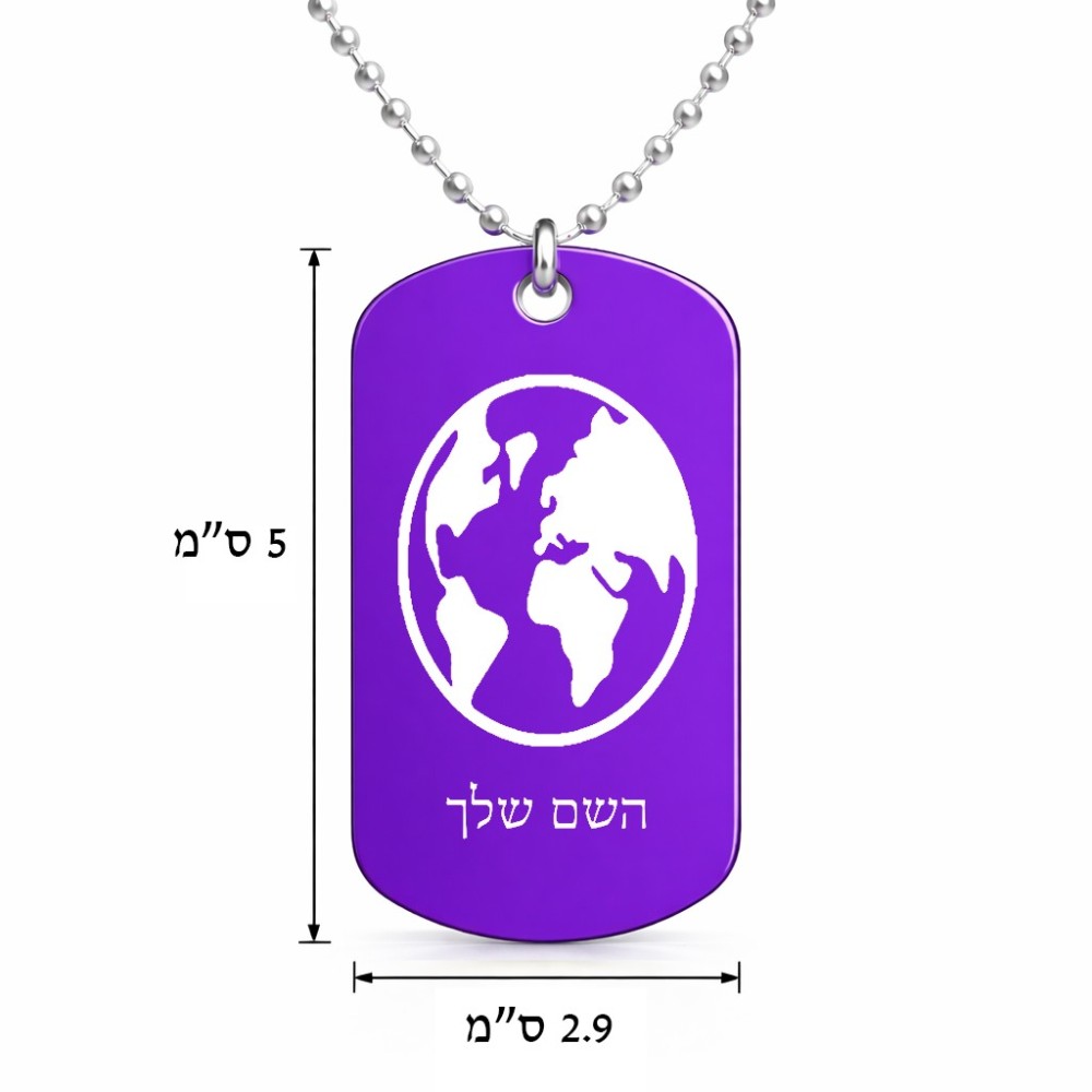 שרשרת דיסקיט מאלומיניום בעיצוב אישי עם השם שלך בעיצוב עולם גודל הדיסקיט 2.9 × 5 ס"מ. את השם המבוקש ניתן לציין בהזמנה, אם לא צויין אנחנו ניצור קשר לבירור.