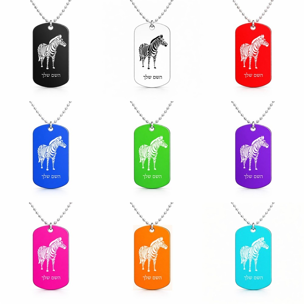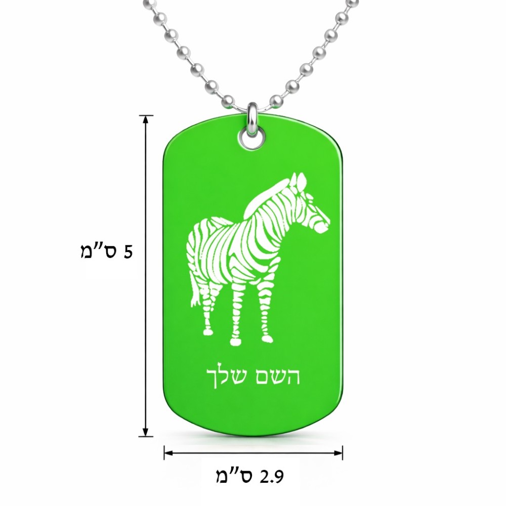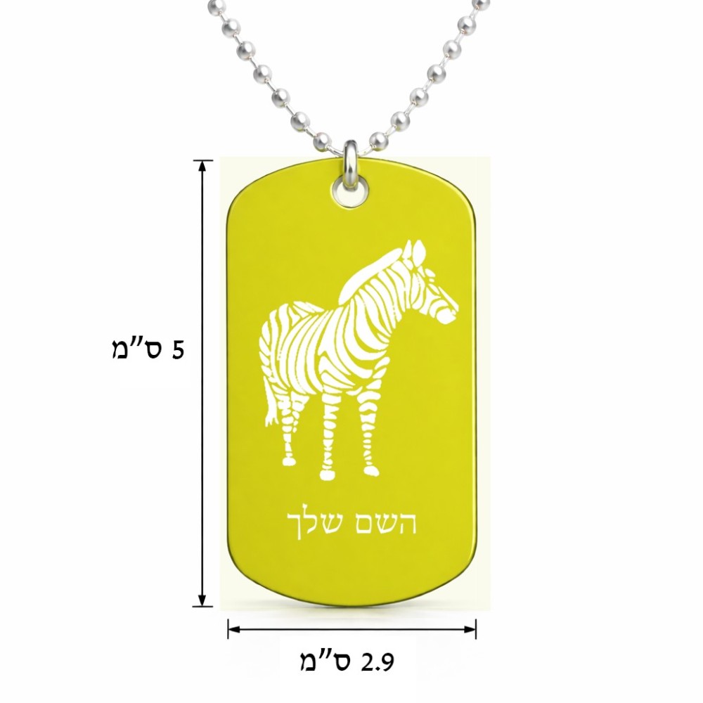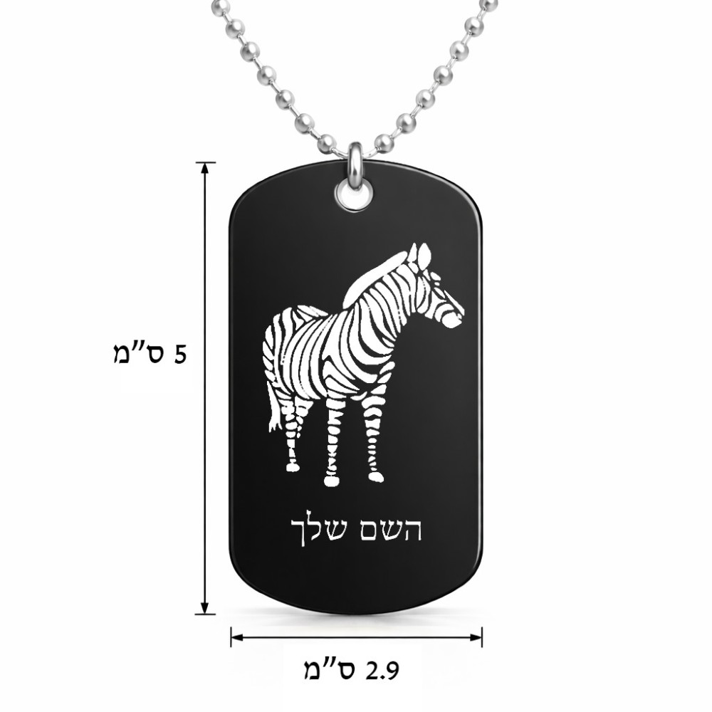 שרשרת דיסקיט מאלומיניום בעיצוב אישי עם השם שלך בעיצוב זברה גודל הדיסקיט 2.9 × 5 ס"מ