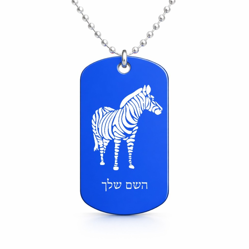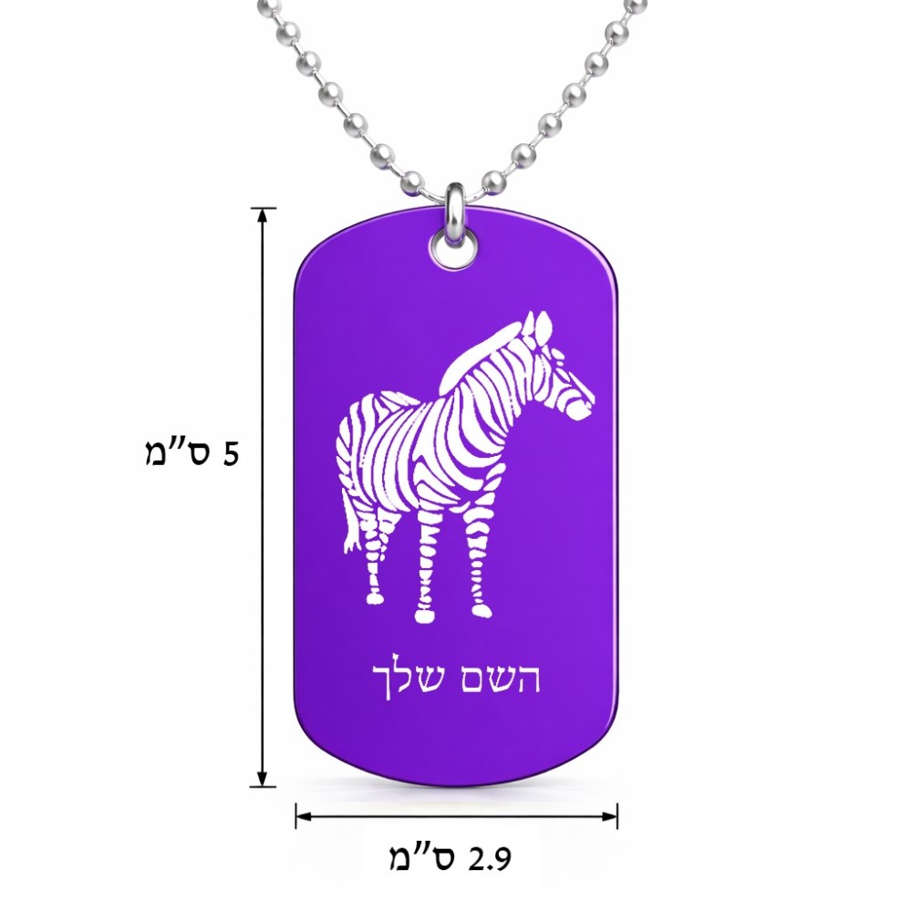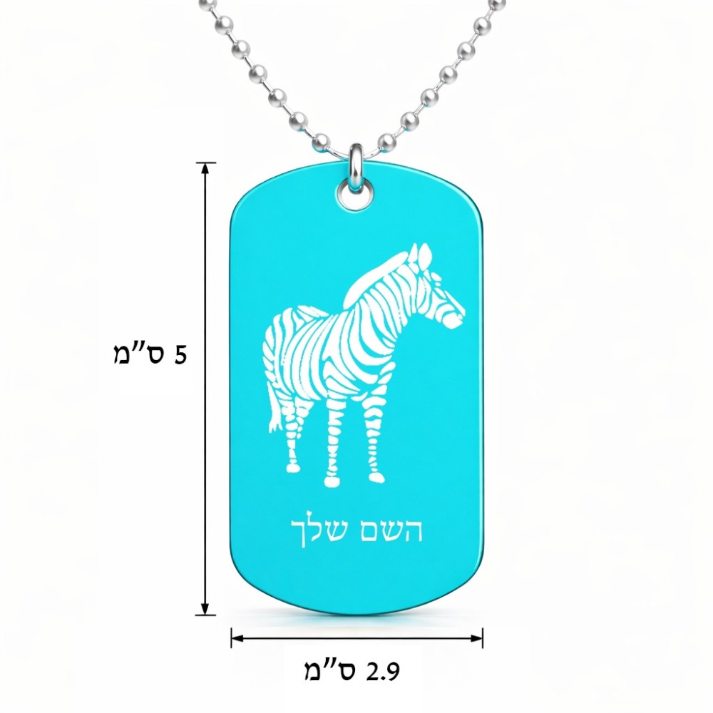 שרשרת דיסקיט מאלומיניום בעיצוב אישי עם השם שלך בעיצוב זברה גודל הדיסקיט 2.9 × 5 ס"מ. את השם המבוקש ניתן לציין בהזמנה, אם לא צויין אנחנו ניצור קשר לבירור.