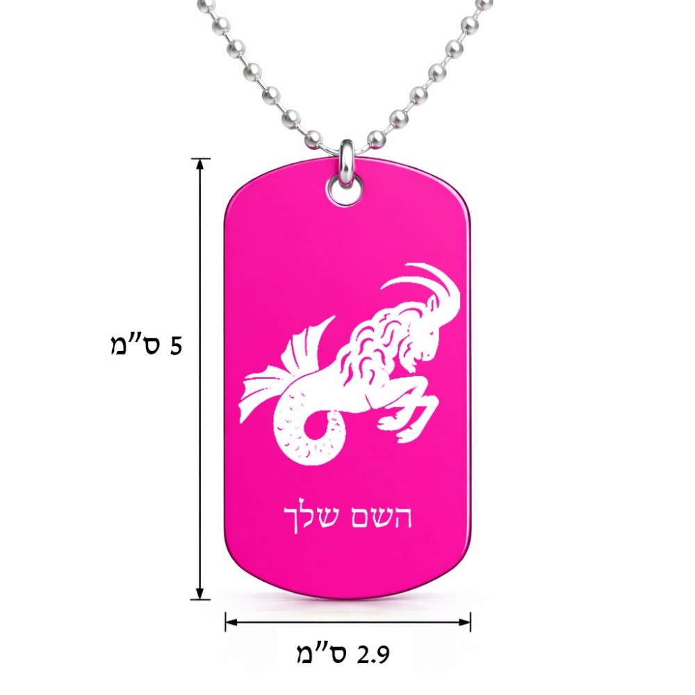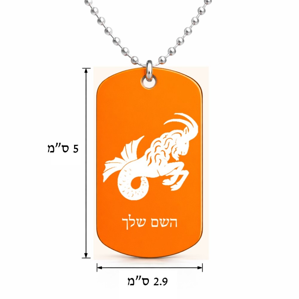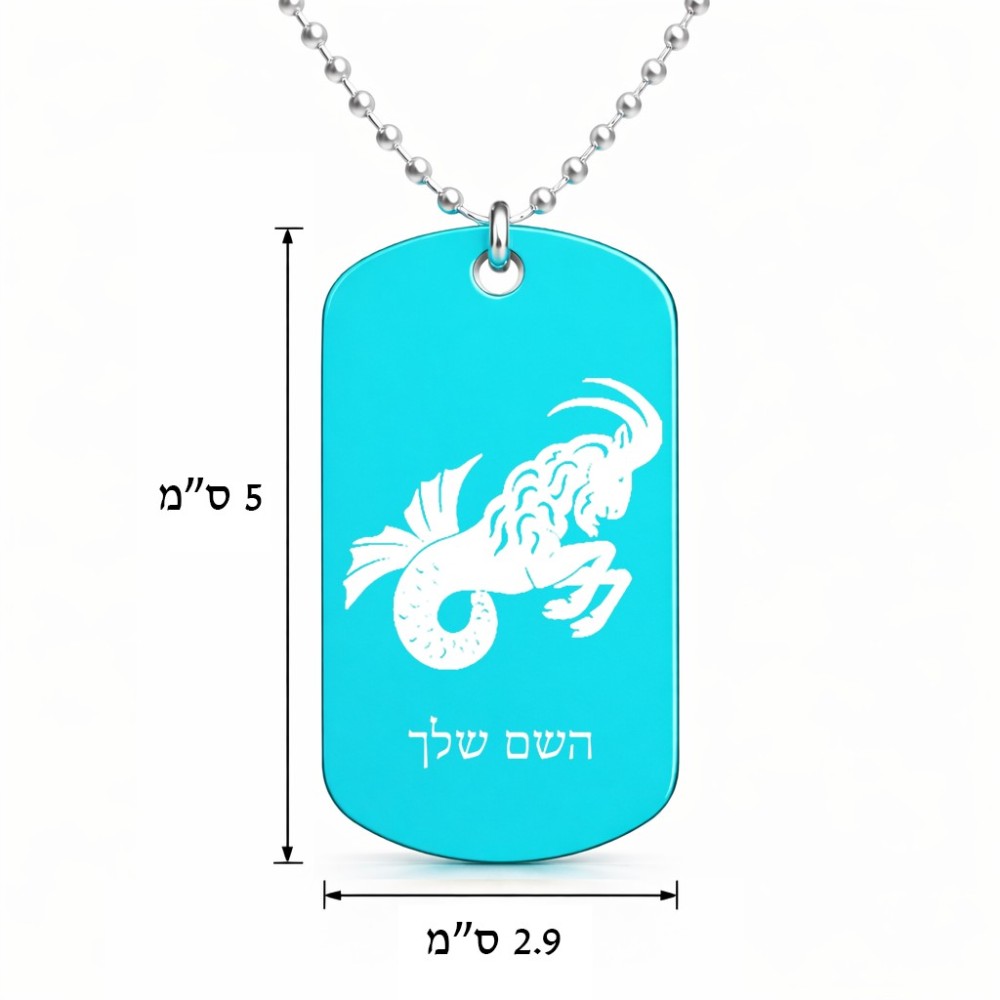 שרשרת דיסקיט מאלומיניום בעיצוב אישי עם השם שלך בעיצוב מזלות - גדי גודל הדיסקיט 2.9 × 5 ס"מ. את השם המבוקש ניתן לציין בהזמנה, אם לא צויין אנחנו ניצור קשר לבירור.