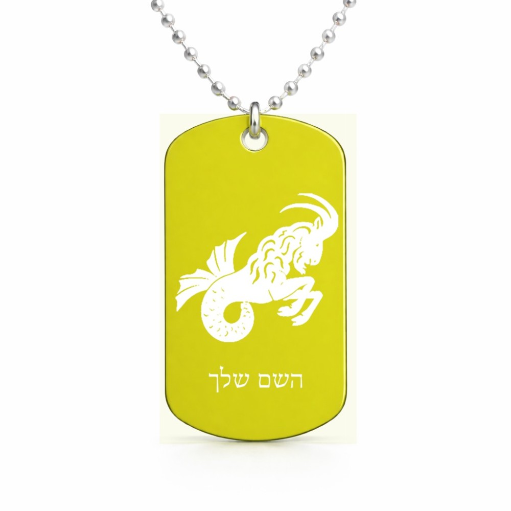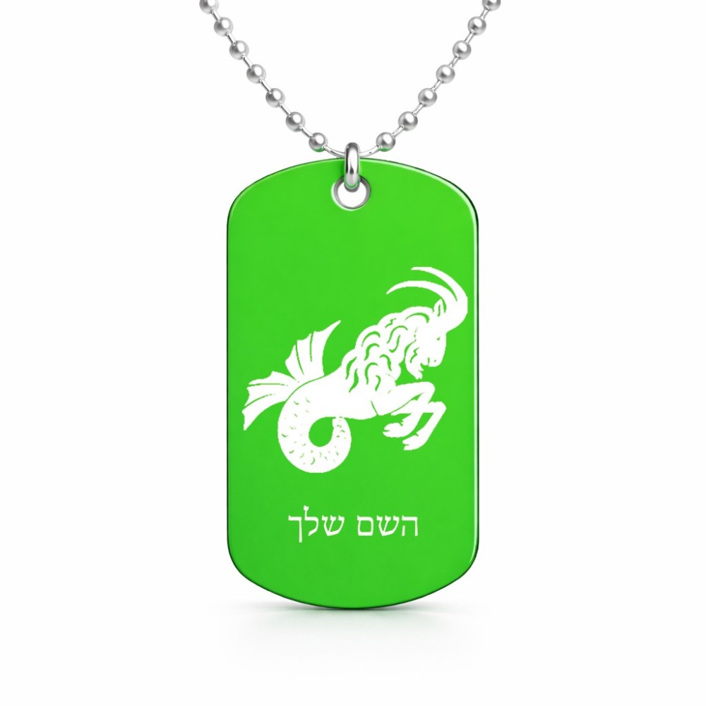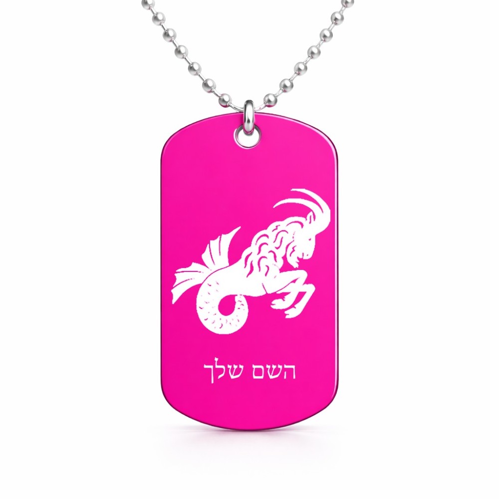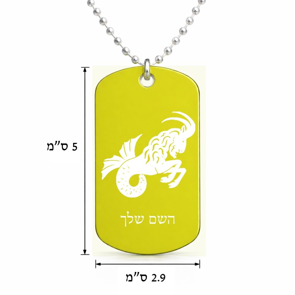 שרשרת דיסקיט מאלומיניום בעיצוב אישי עם השם שלך בעיצוב מזלות - גדי גודל הדיסקיט 2.9 × 5 ס"מ. את השם המבוקש ניתן לציין בהזמנה, אם לא צויין אנחנו ניצור קשר לבירור.