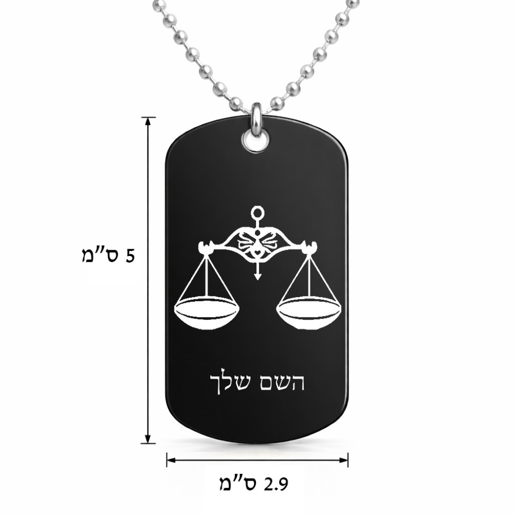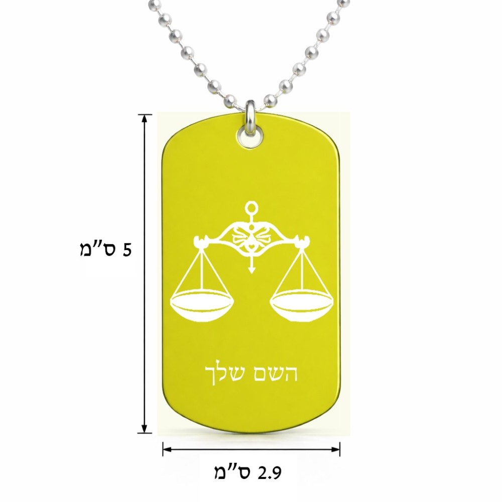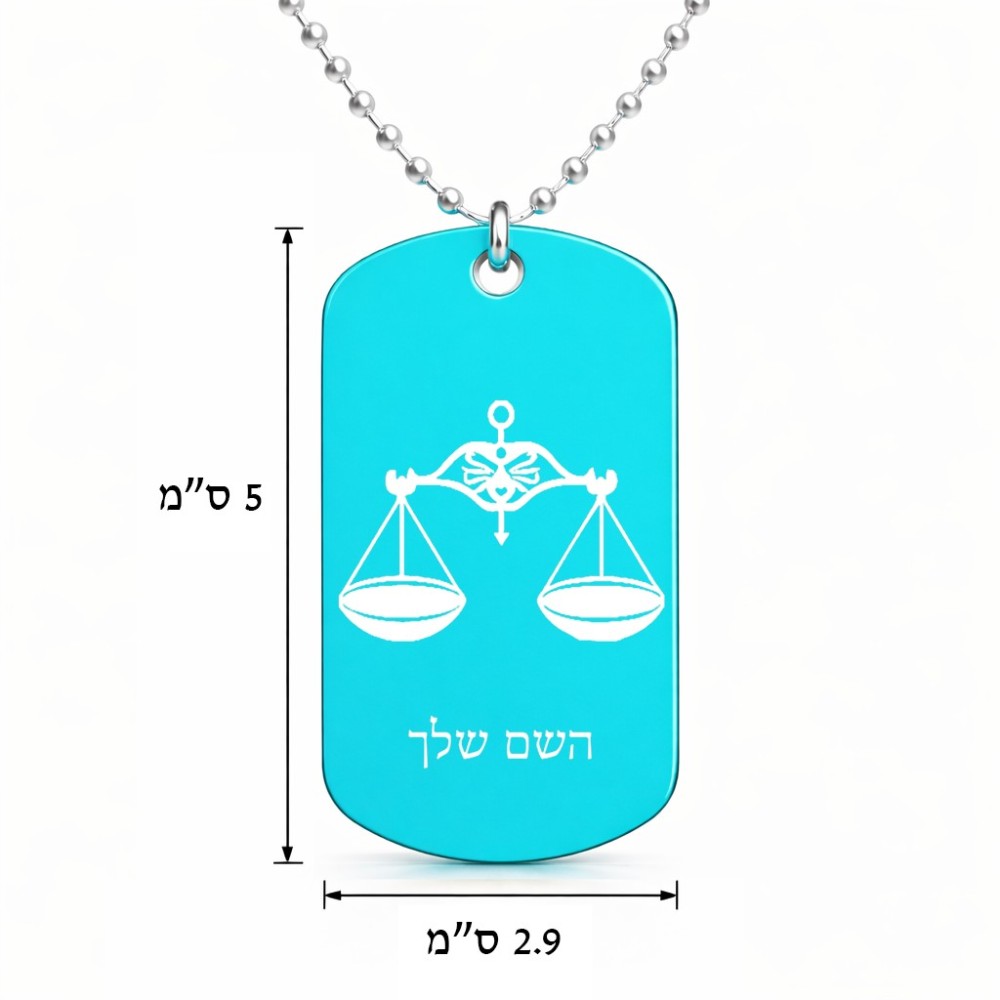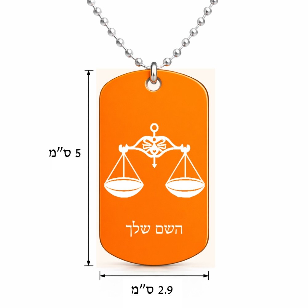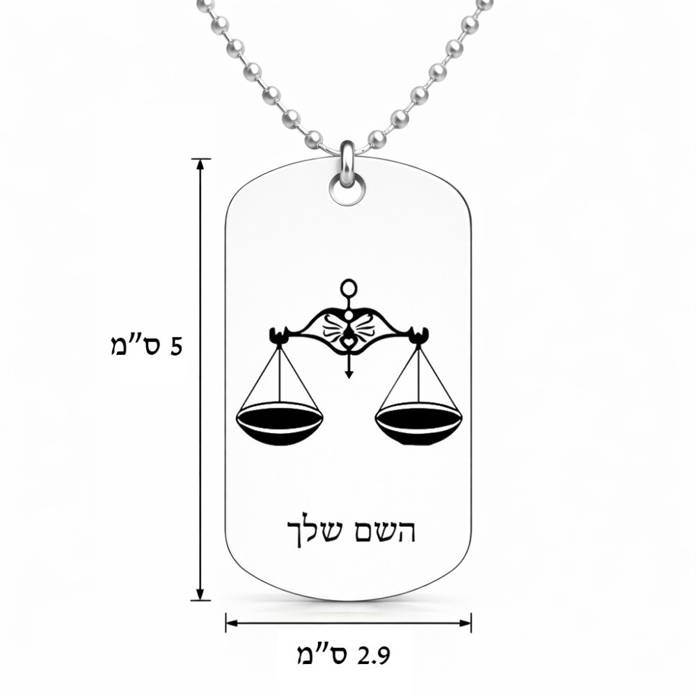 שרשרת דיסקיט מאלומיניום בעיצוב אישי עם השם שלך בעיצוב מזלות - מאזניים גודל הדיסקיט 2.9 × 5 ס"מ. את השם המבוקש ניתן לציין בהזמנה, אם לא צויין אנחנו ניצור קשר לבירור.