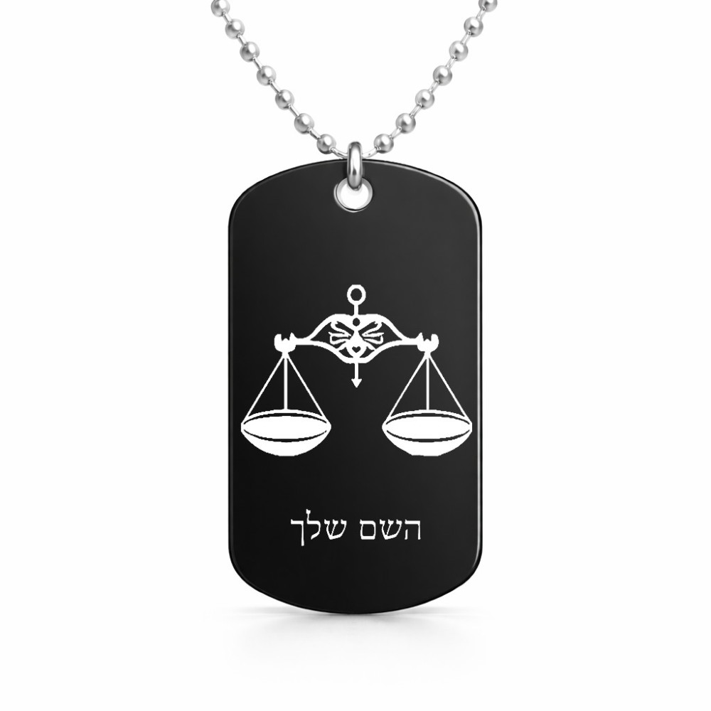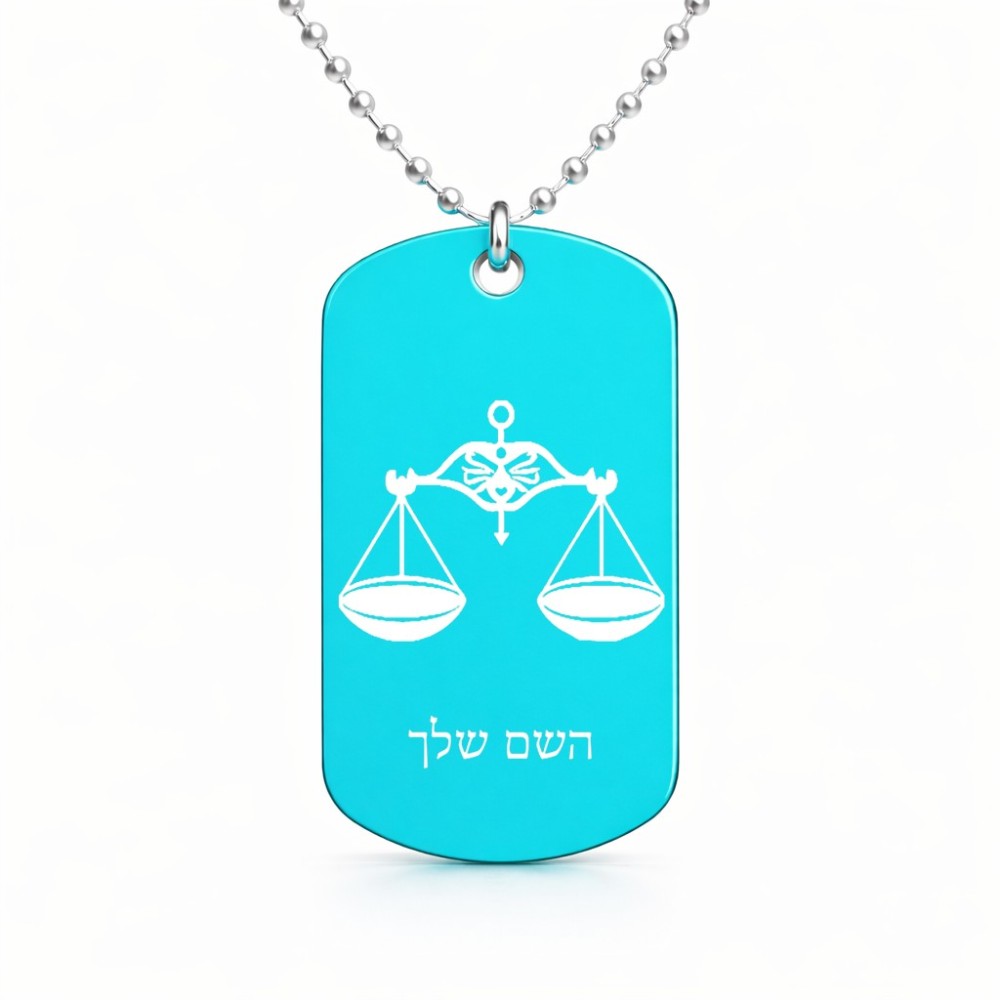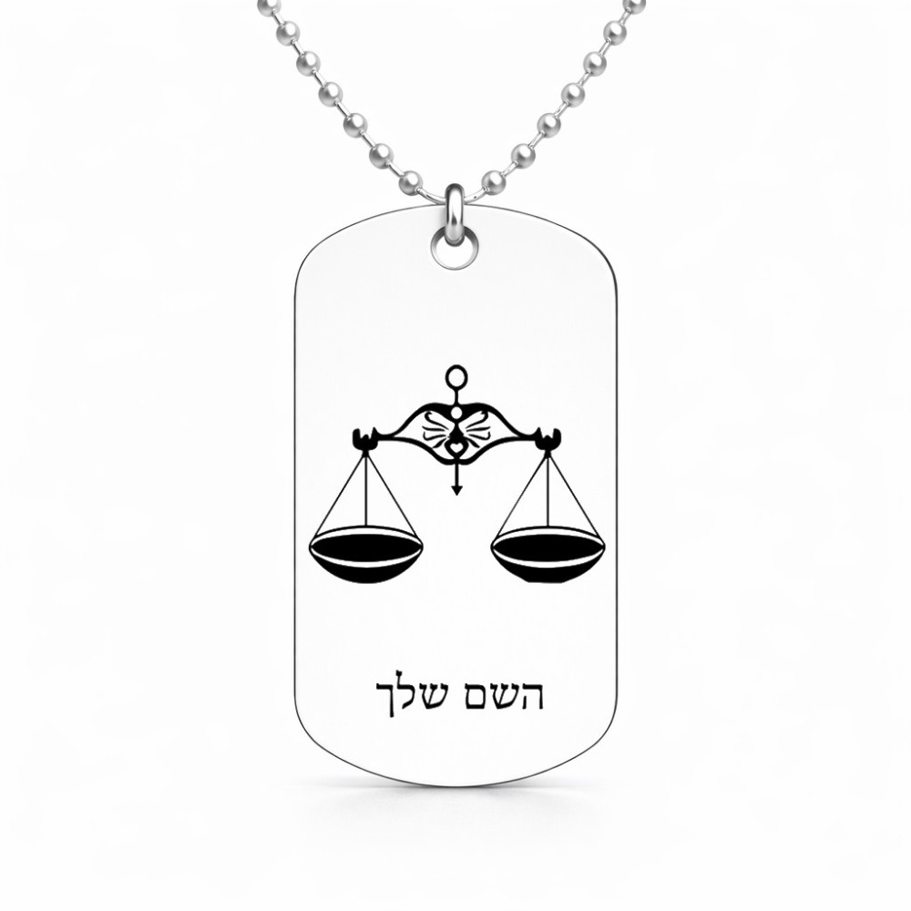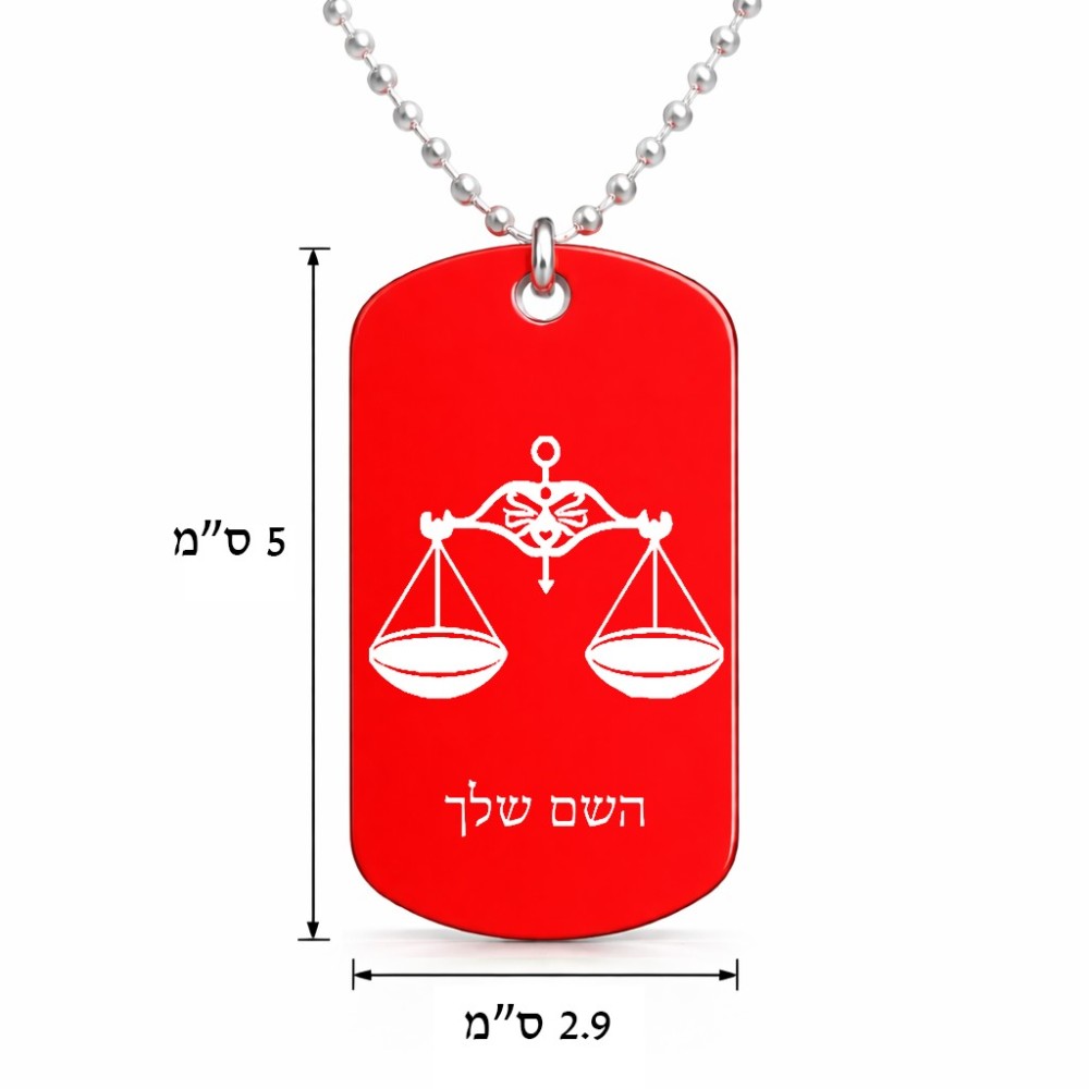 שרשרת דיסקיט מאלומיניום בעיצוב אישי עם השם שלך בעיצוב מזלות - מאזניים גודל הדיסקיט 2.9 × 5 ס"מ. את השם המבוקש ניתן לציין בהזמנה, אם לא צויין אנחנו ניצור קשר לבירור.