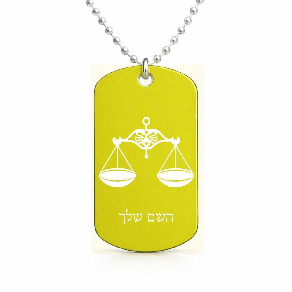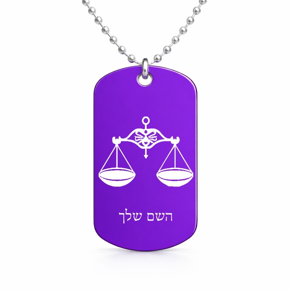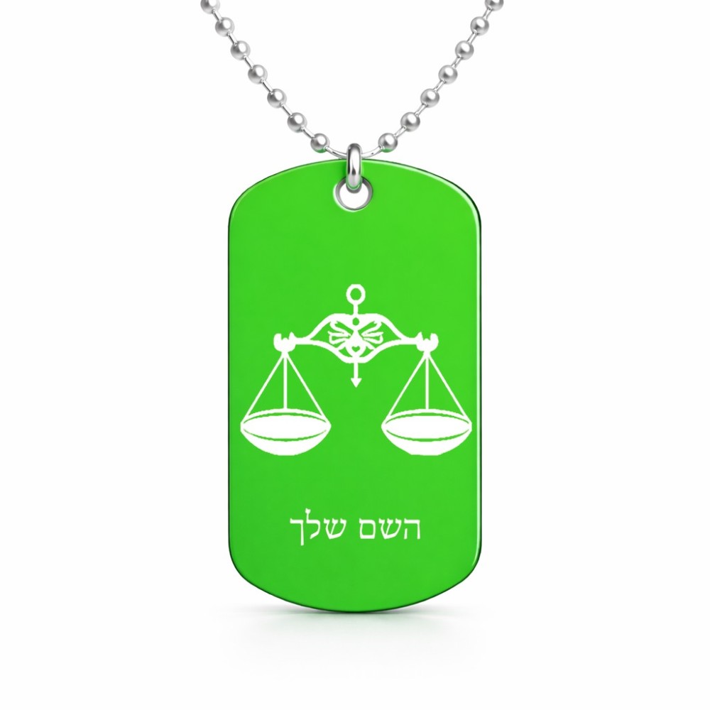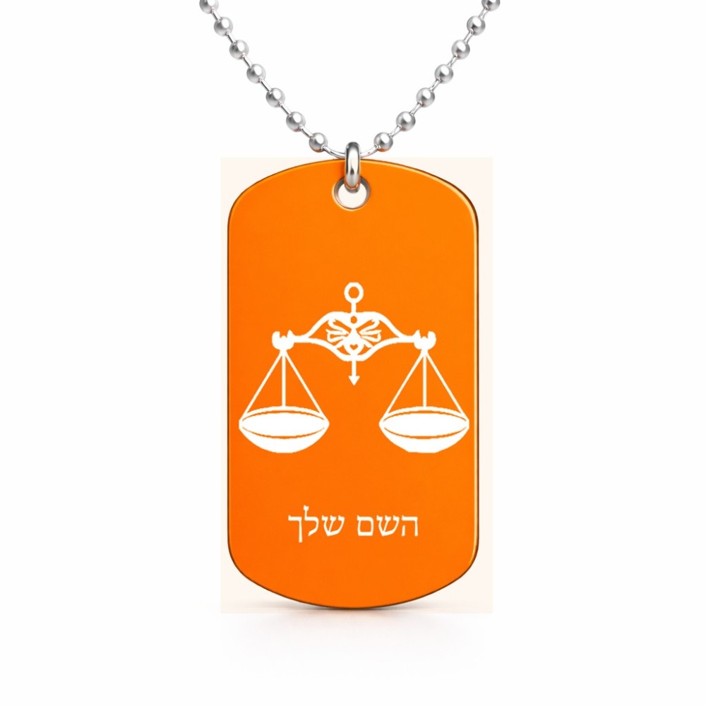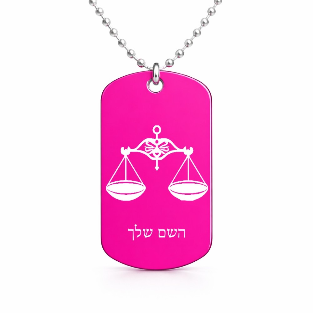שרשרת דיסקיט מאלומיניום בעיצוב אישי עם השם שלך בעיצוב מזלות - מאזניים גודל הדיסקיט 2.9 × 5 ס"מ. את השם המבוקש ניתן לציין בהזמנה, אם לא צויין אנחנו ניצור קשר לבירור.