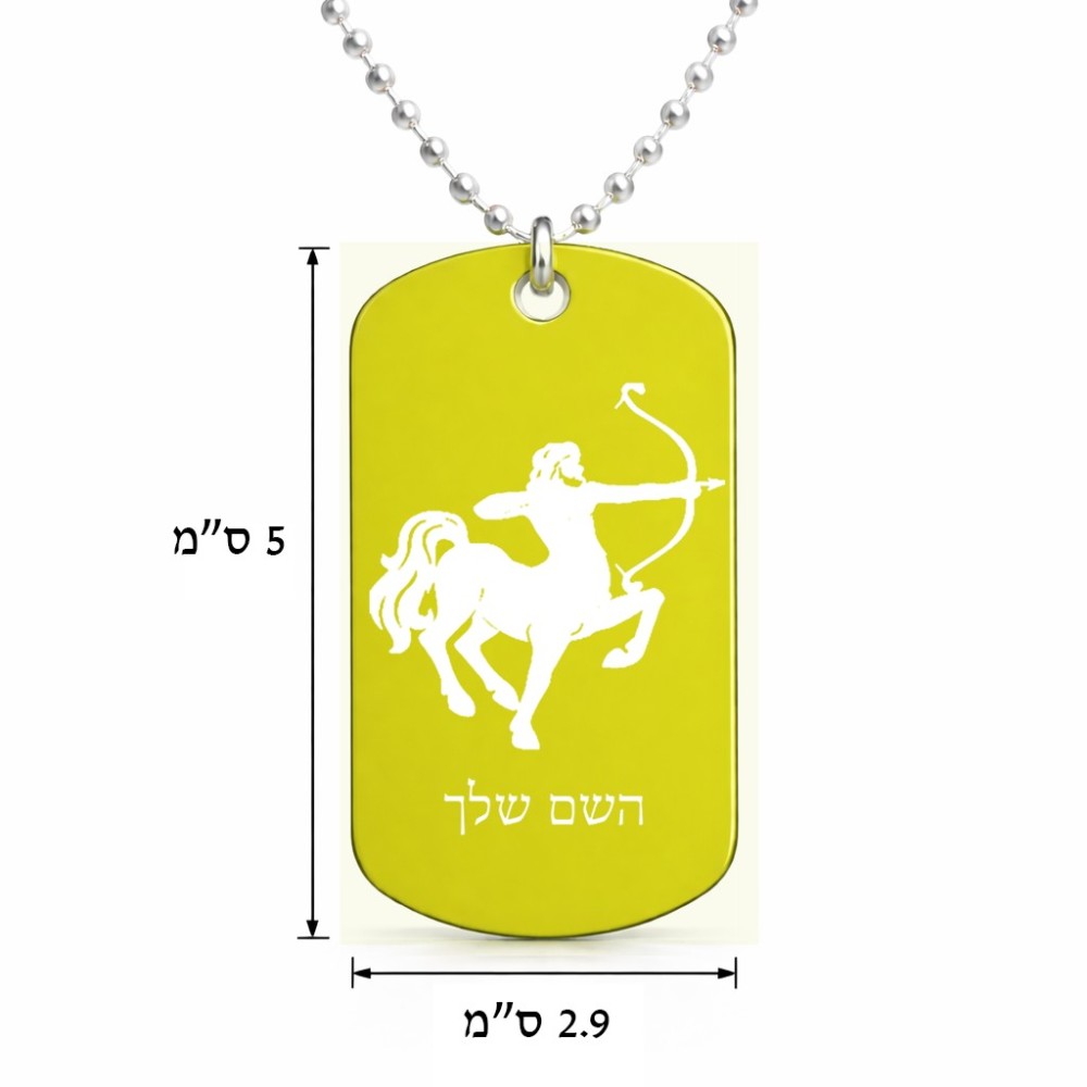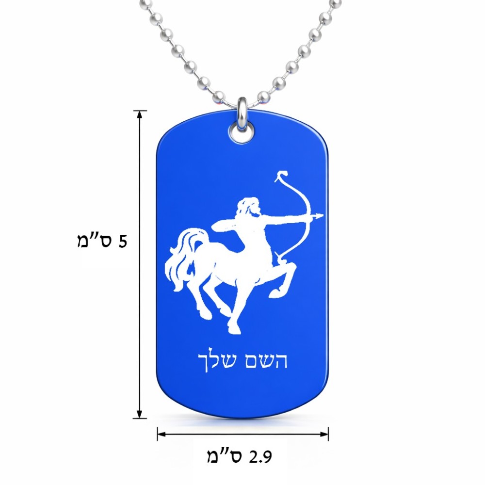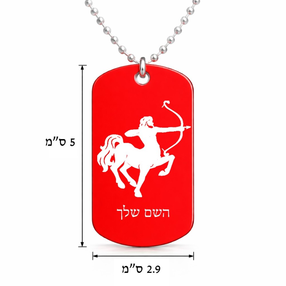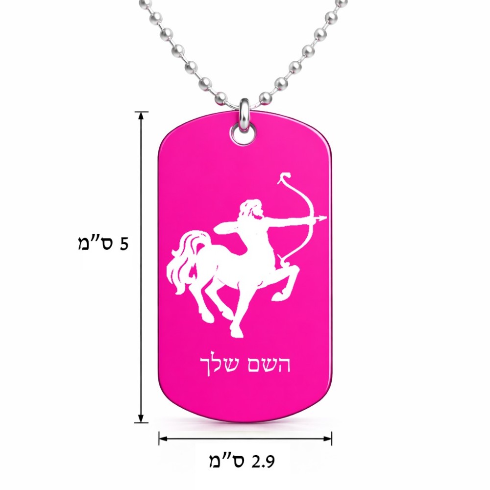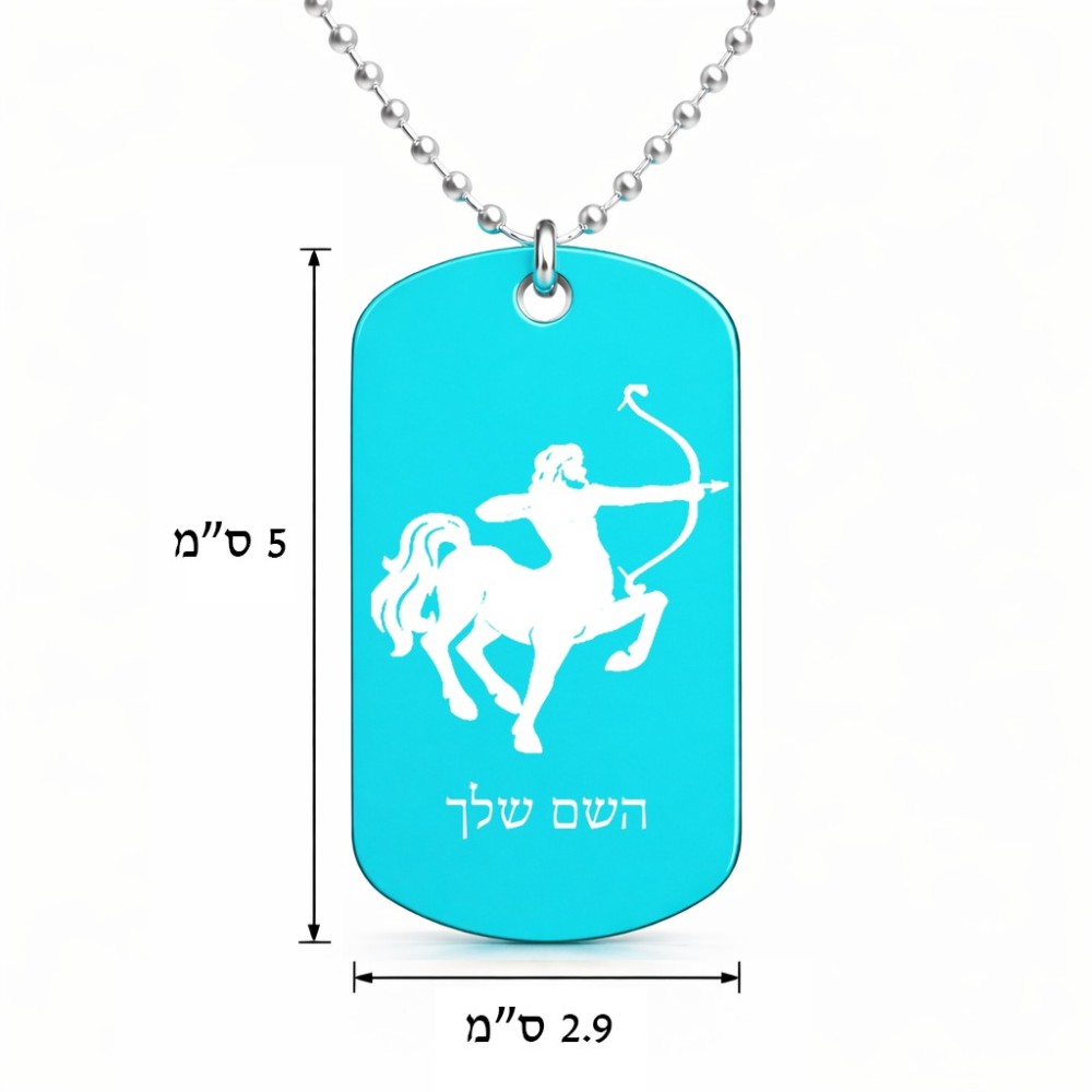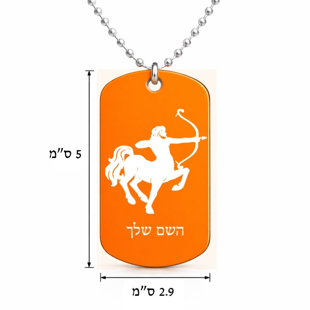 שרשרת דיסקיט מאלומיניום בעיצוב אישי עם השם שלך בעיצוב מזלות - קשת גודל הדיסקיט 2.9 × 5 ס"מ. את השם המבוקש ניתן לציין בהזמנה, אם לא צויין אנחנו ניצור קשר לבירור.