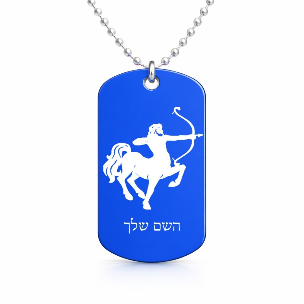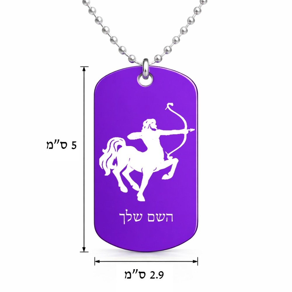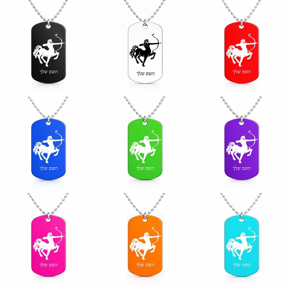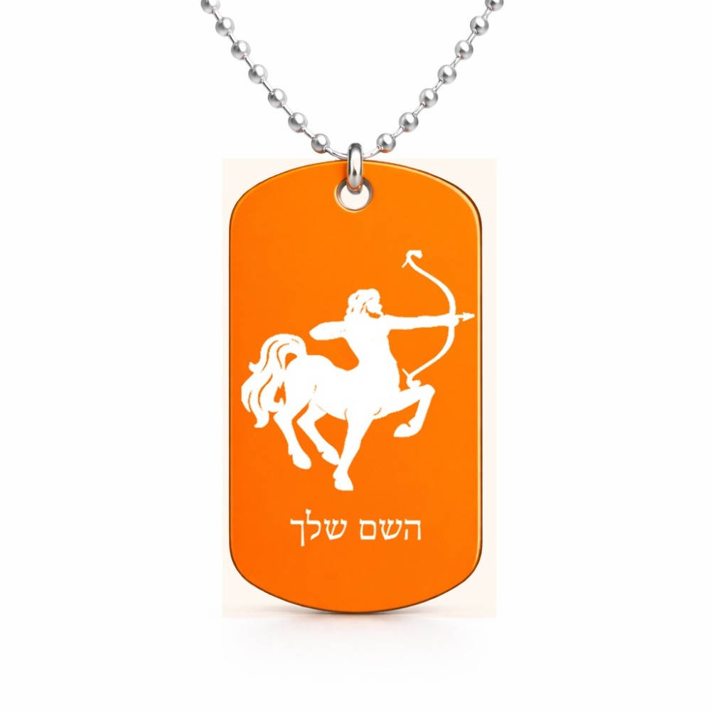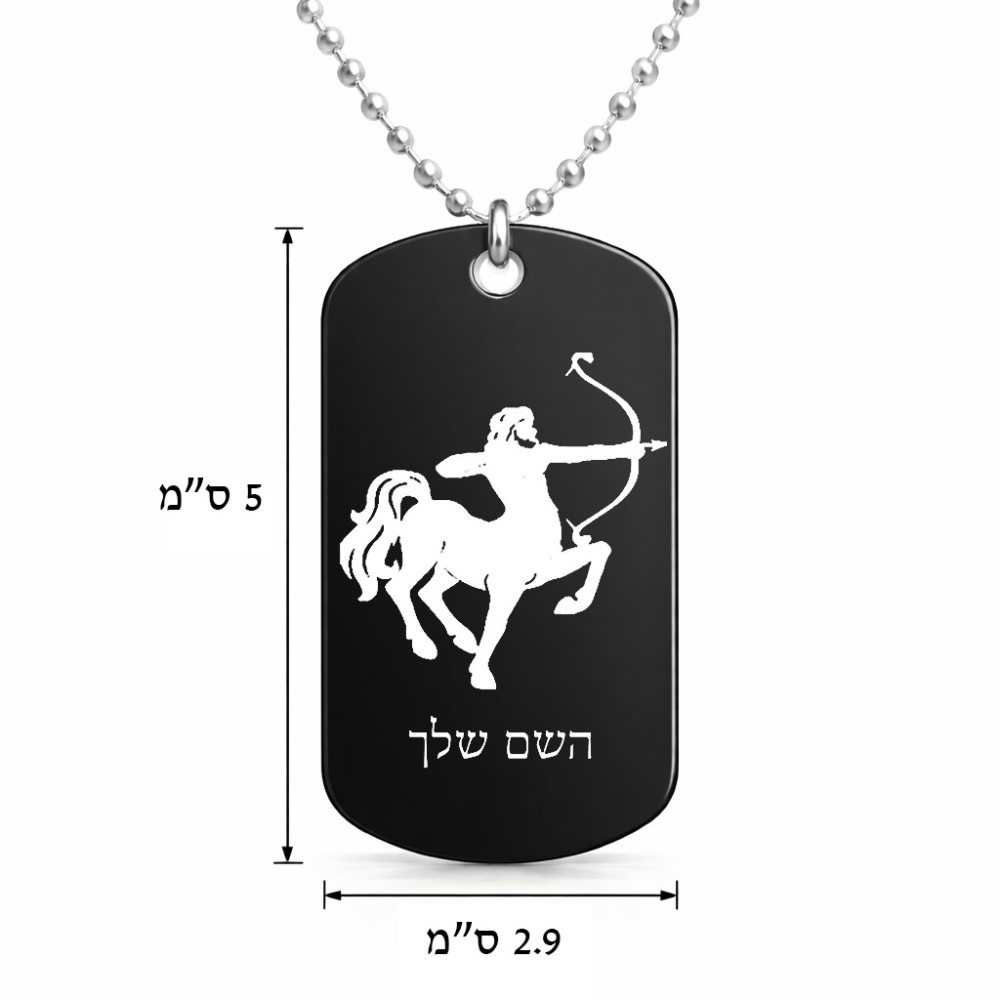 שרשרת דיסקיט מאלומיניום בעיצוב אישי עם השם שלך בעיצוב מזלות - קשת גודל הדיסקיט 2.9 × 5 ס"מ. את השם המבוקש ניתן לציין בהזמנה, אם לא צויין אנחנו ניצור קשר לבירור.