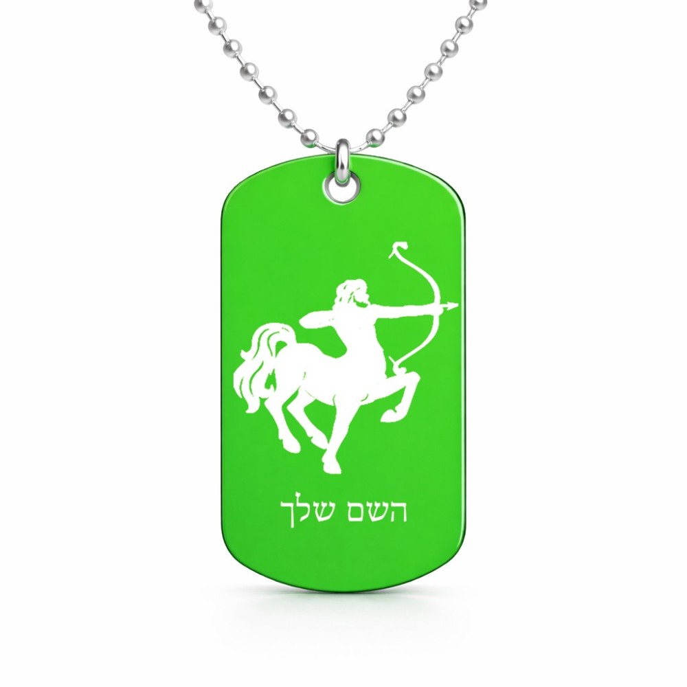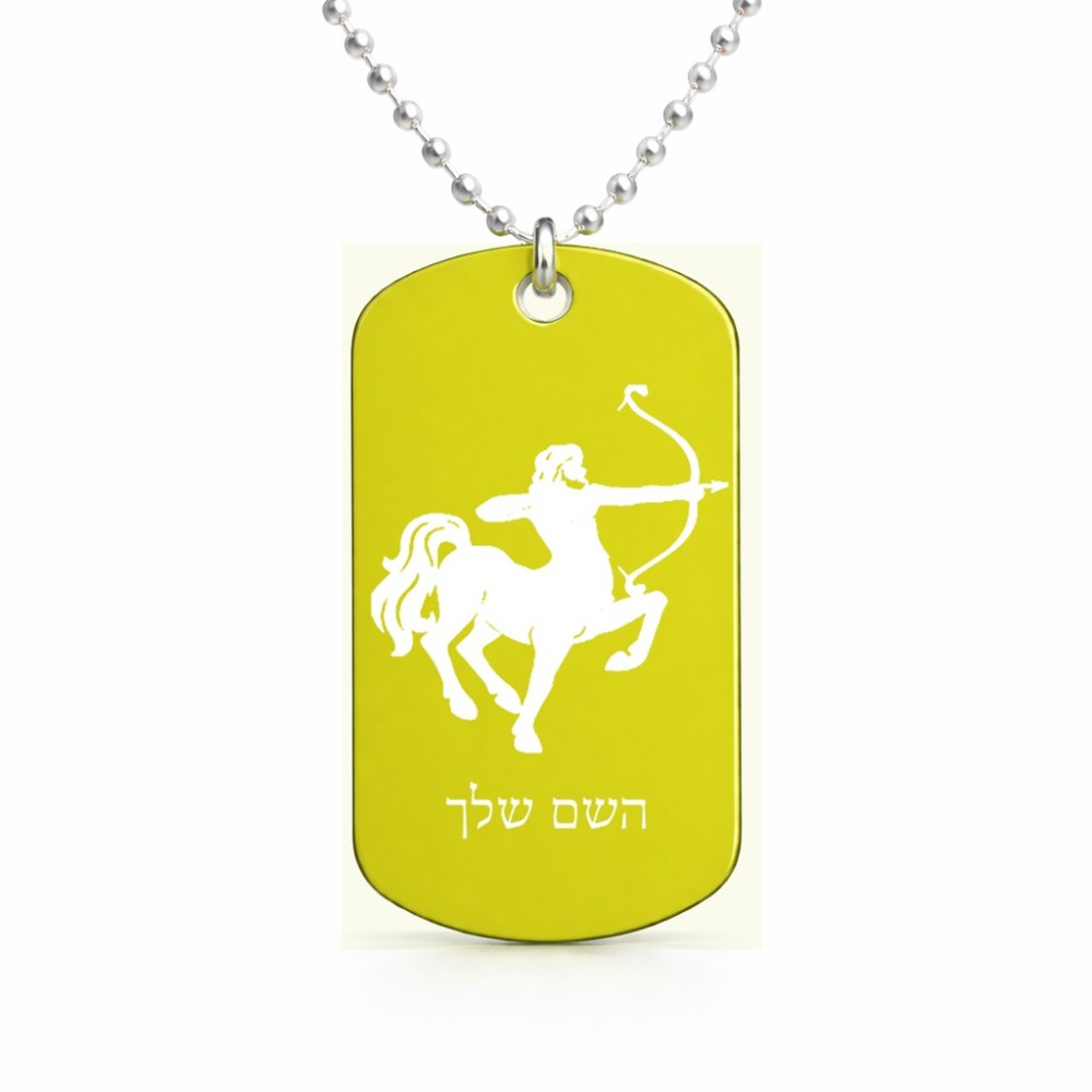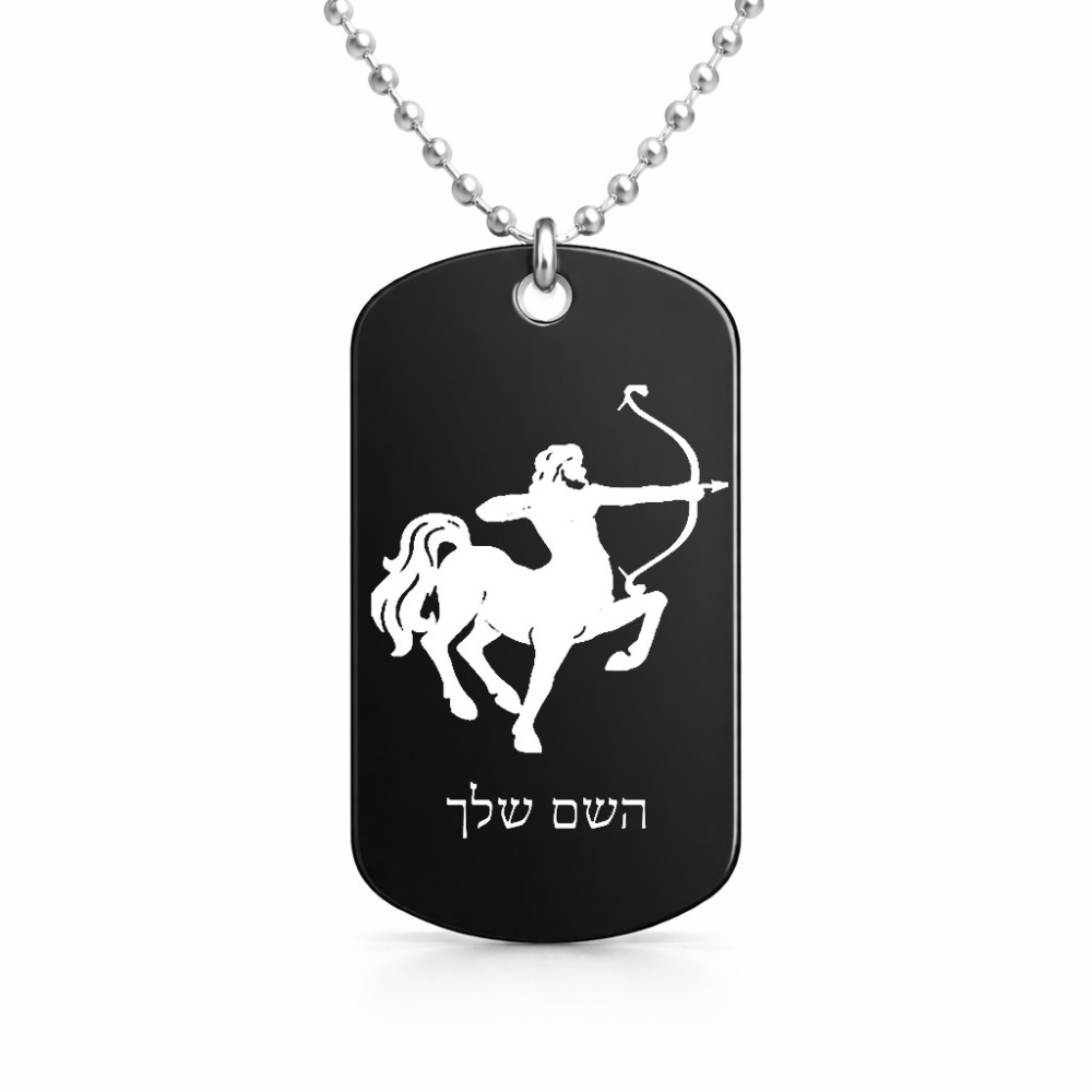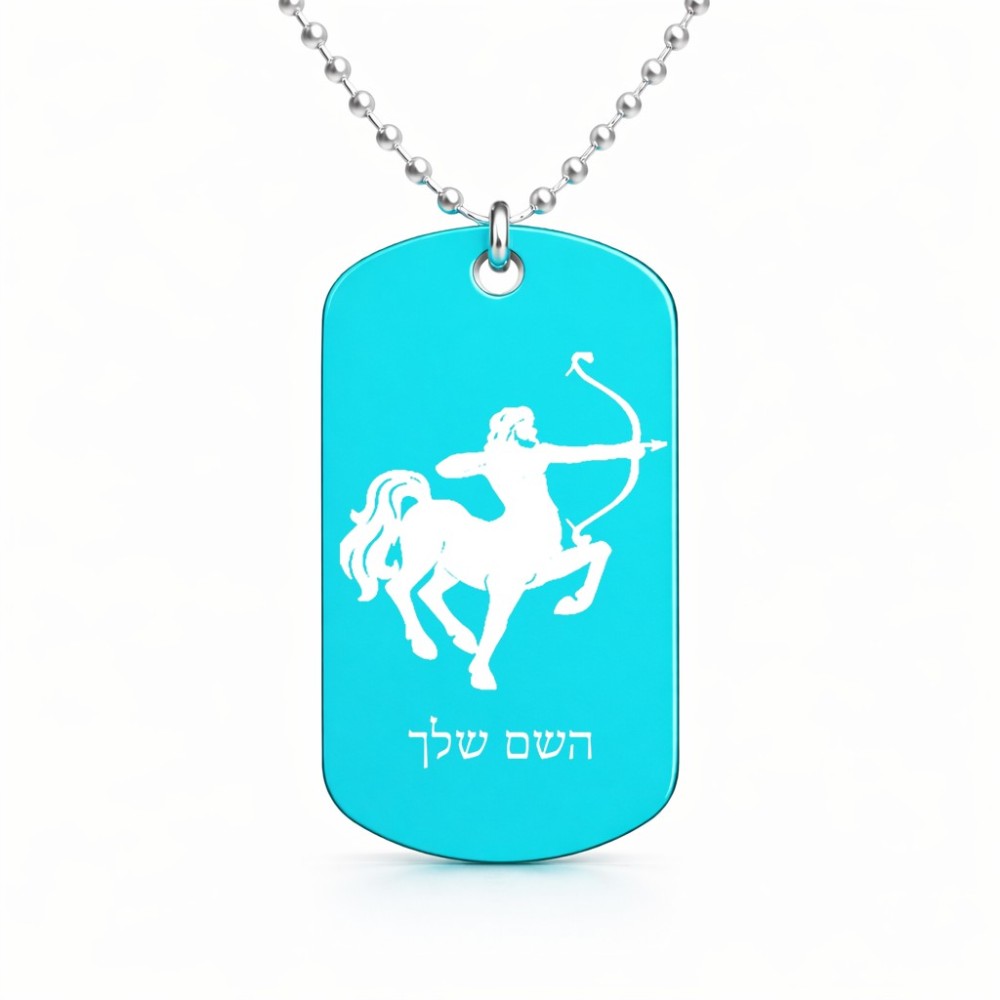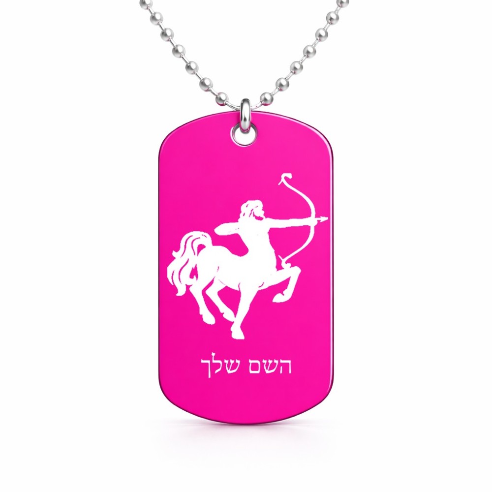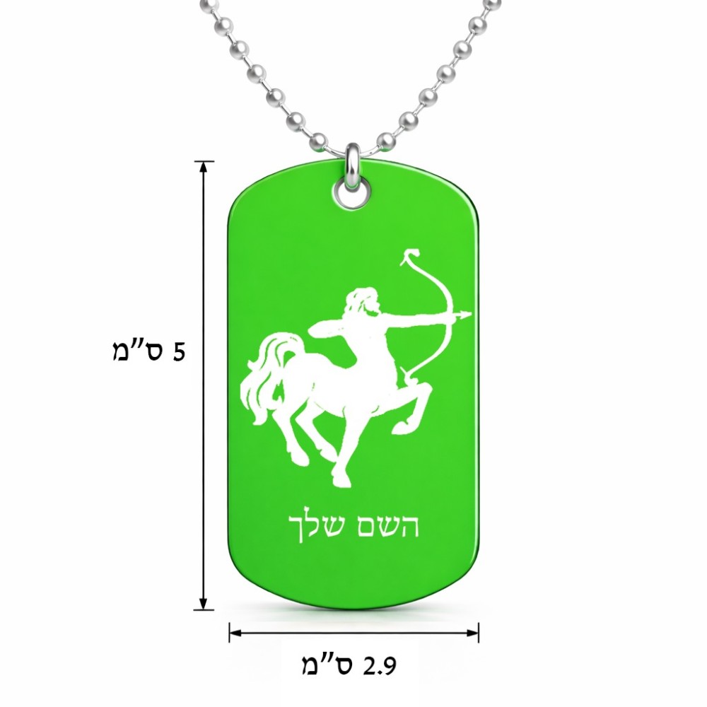 שרשרת דיסקיט מאלומיניום בעיצוב אישי עם השם שלך בעיצוב מזלות - קשת גודל הדיסקיט 2.9 × 5 ס"מ. את השם המבוקש ניתן לציין בהזמנה, אם לא צויין אנחנו ניצור קשר לבירור.