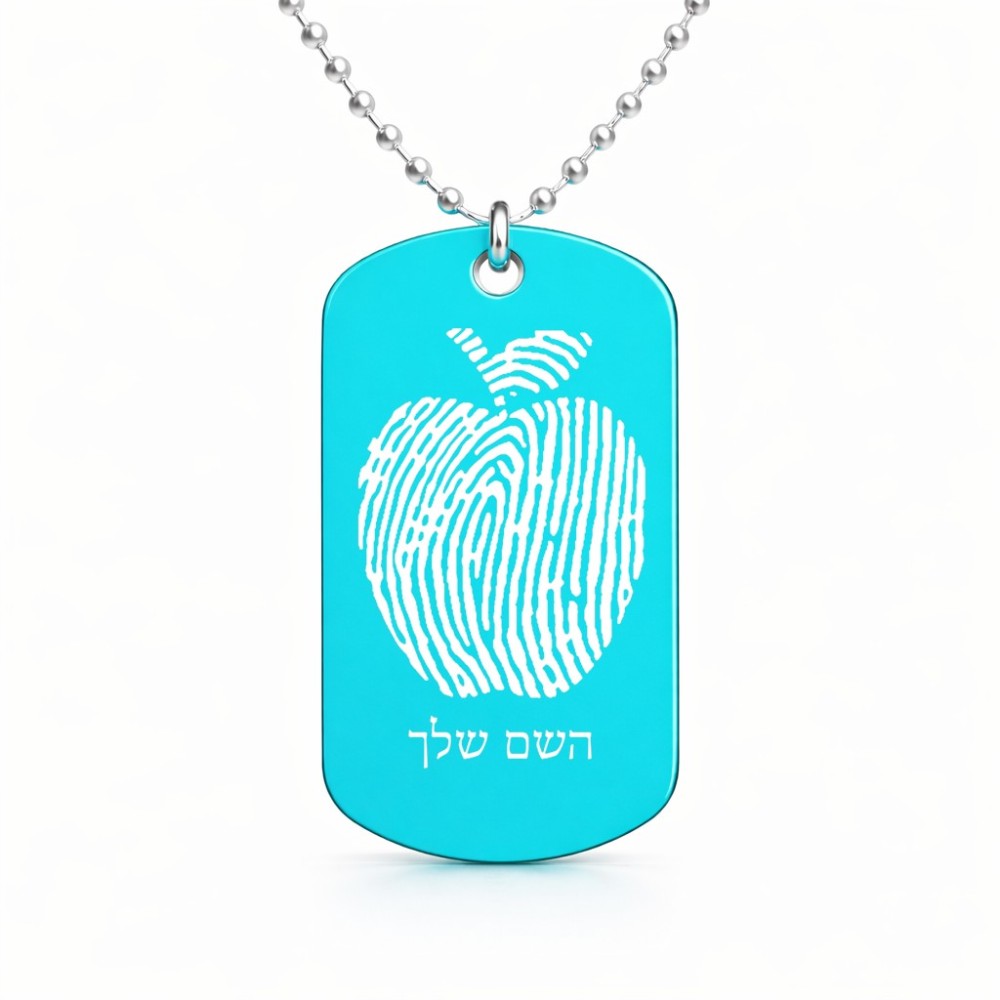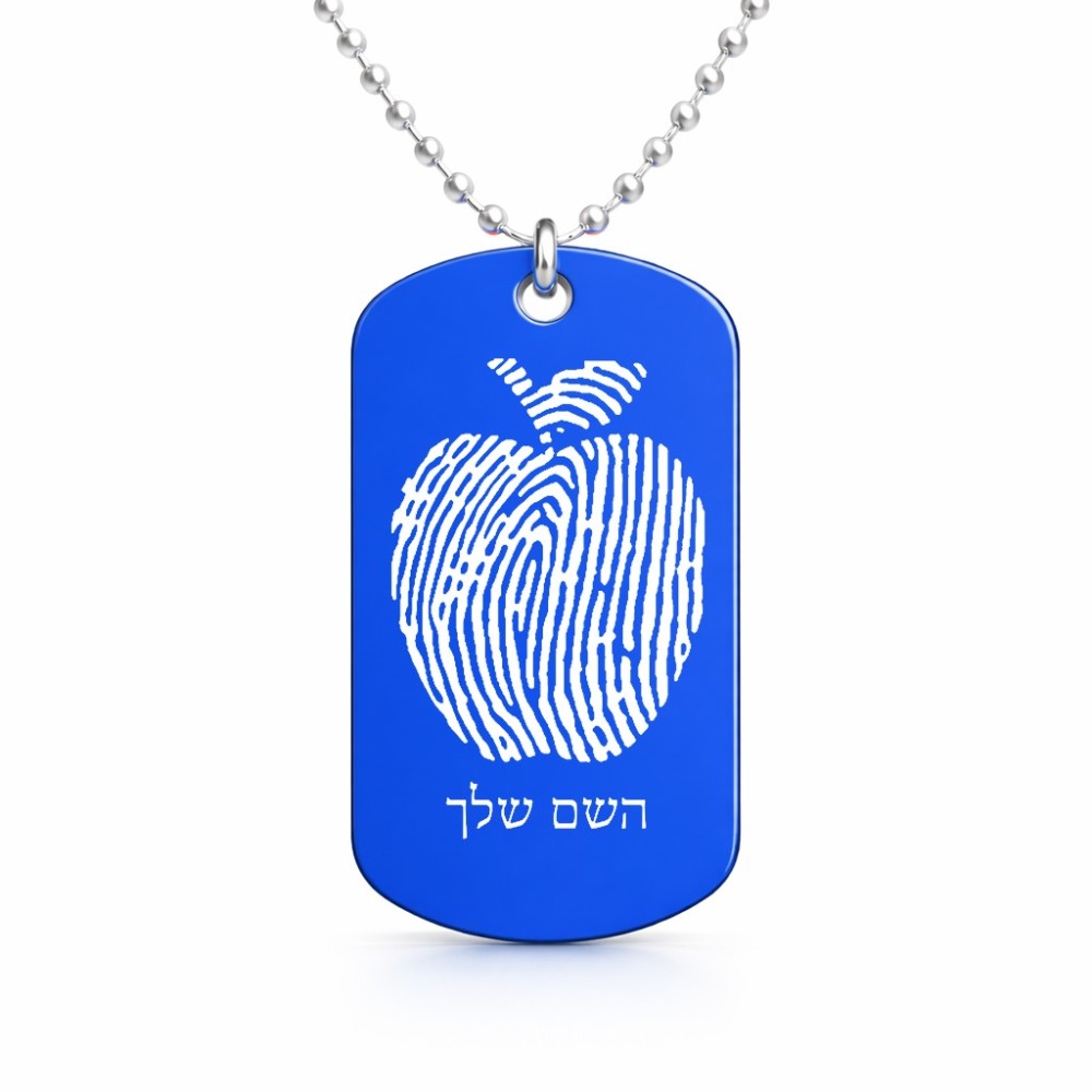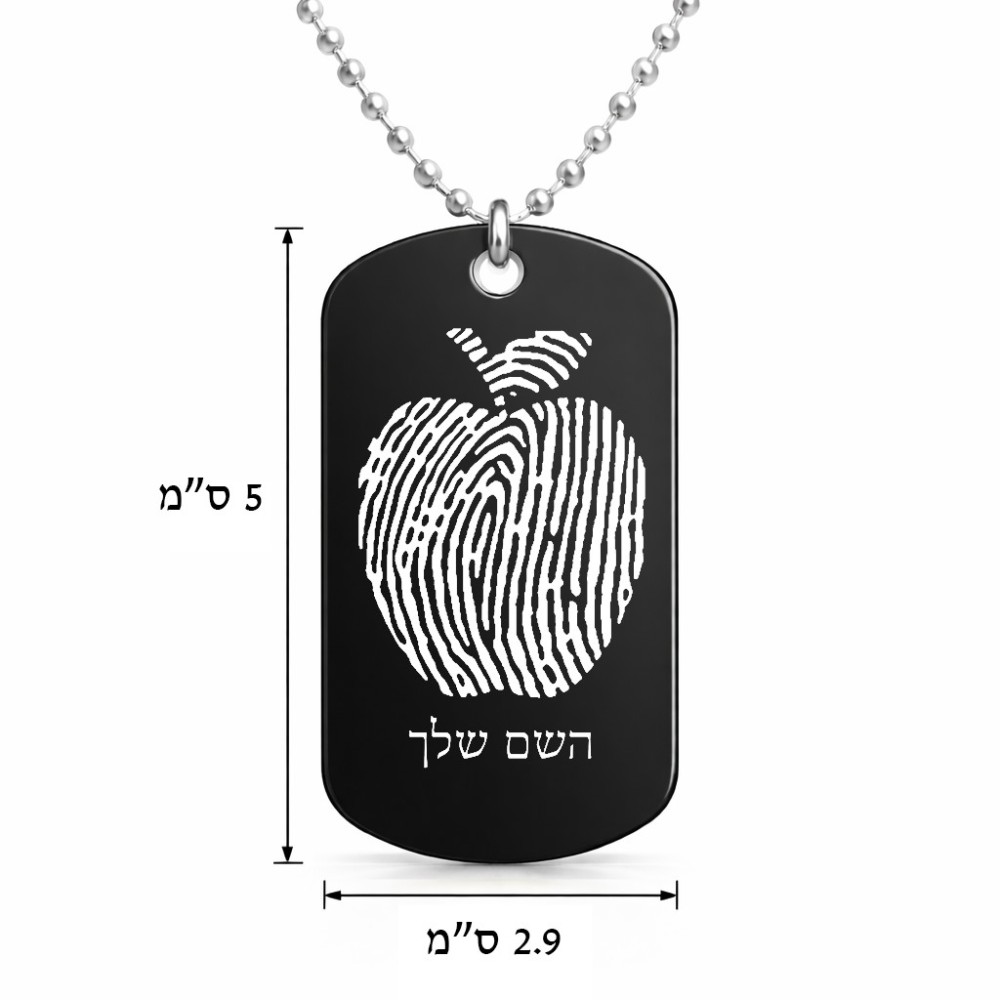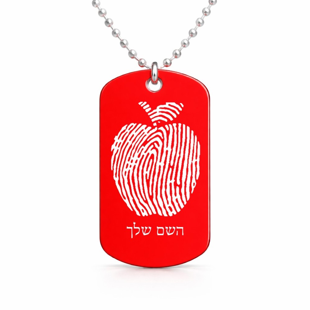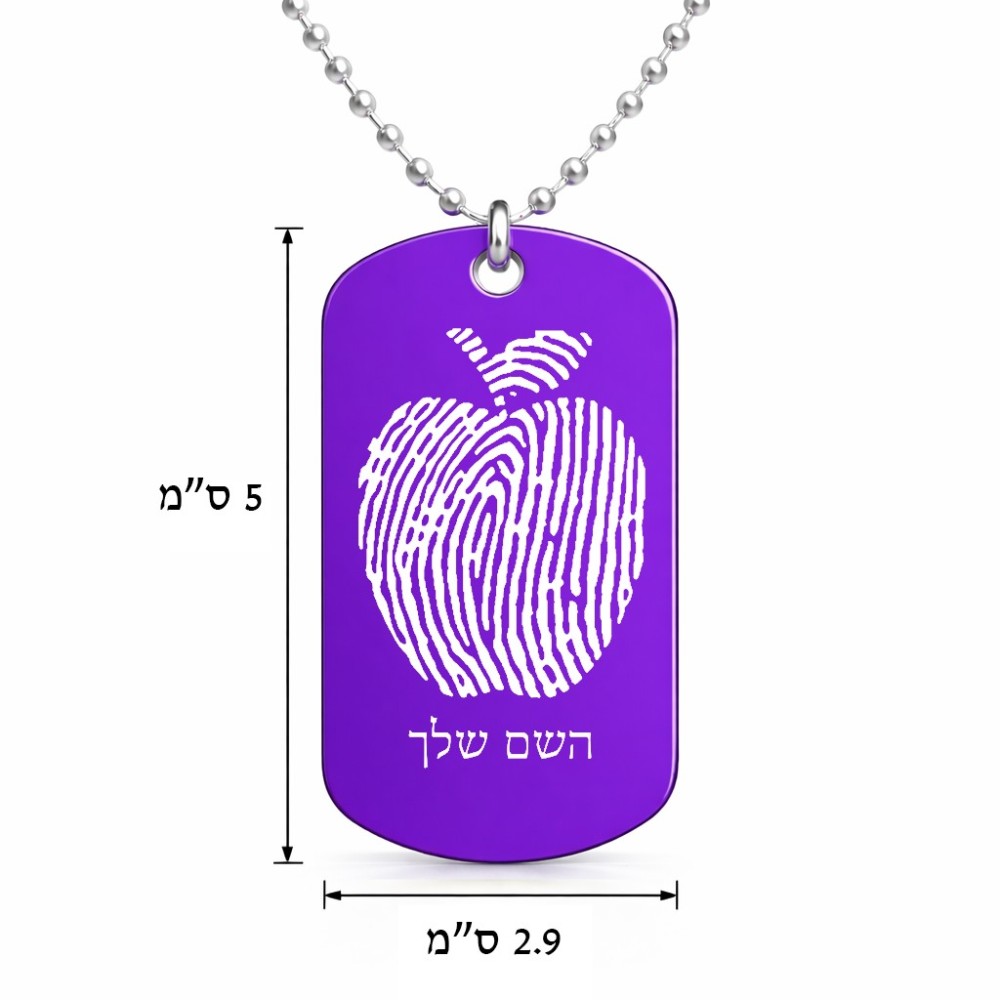 שרשרת דיסקיט מאלומיניום בעיצוב אישי עם השם שלך בעיצוב הדפס תפוח גודל הדיסקיט 2.9 × 5 ס"מ. את השם המבוקש ניתן לציין בהזמנה, אם לא צויין אנחנו ניצור קשר לבירור.