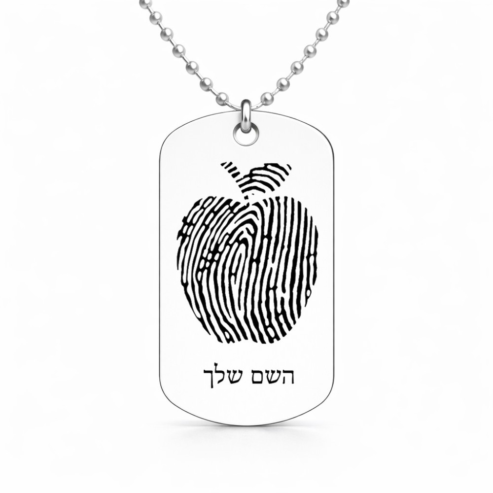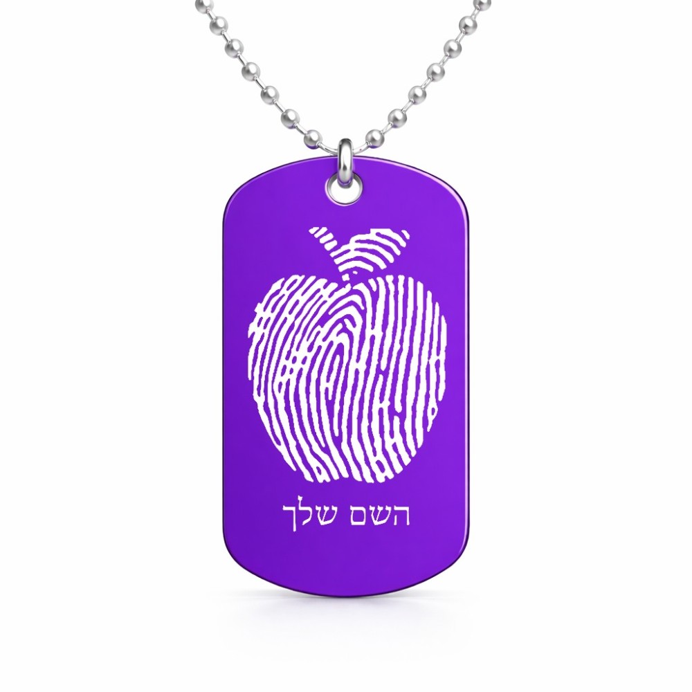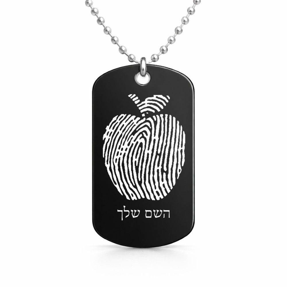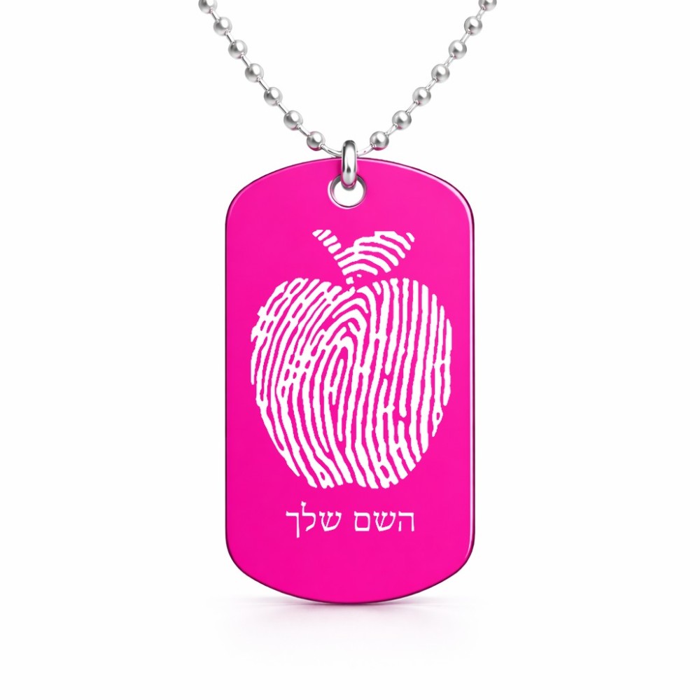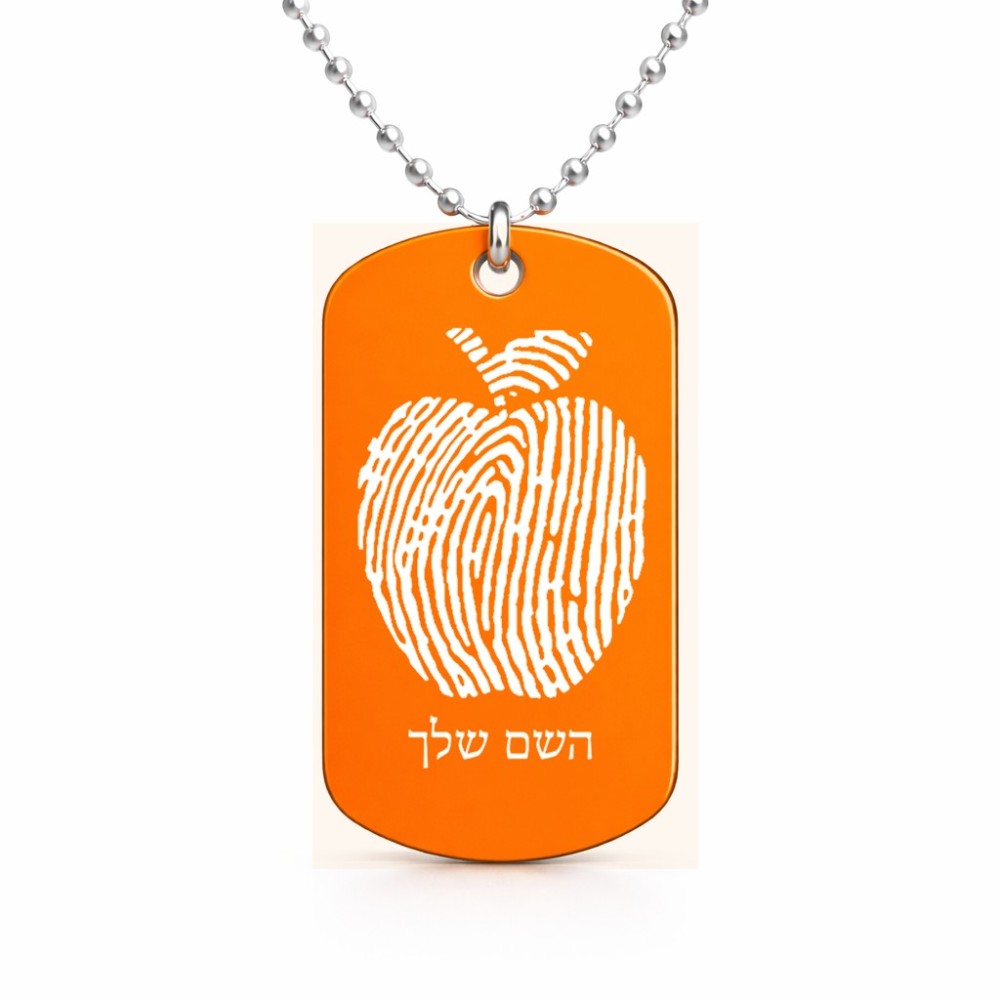 שרשרת דיסקיט מאלומיניום בעיצוב אישי עם השם שלך בעיצוב הדפס תפוח גודל הדיסקיט 2.9 × 5 ס"מ. את השם המבוקש ניתן לציין בהזמנה, אם לא צויין אנחנו ניצור קשר לבירור.
