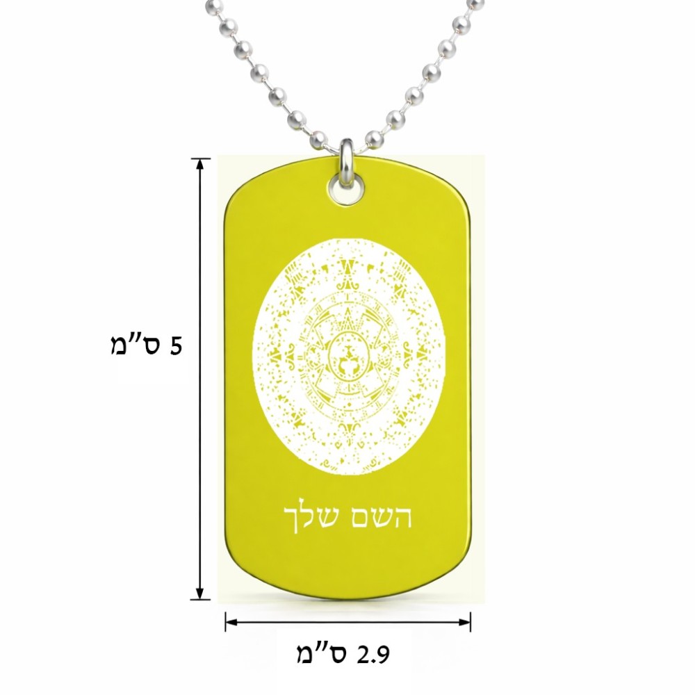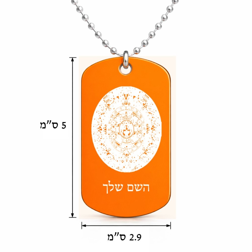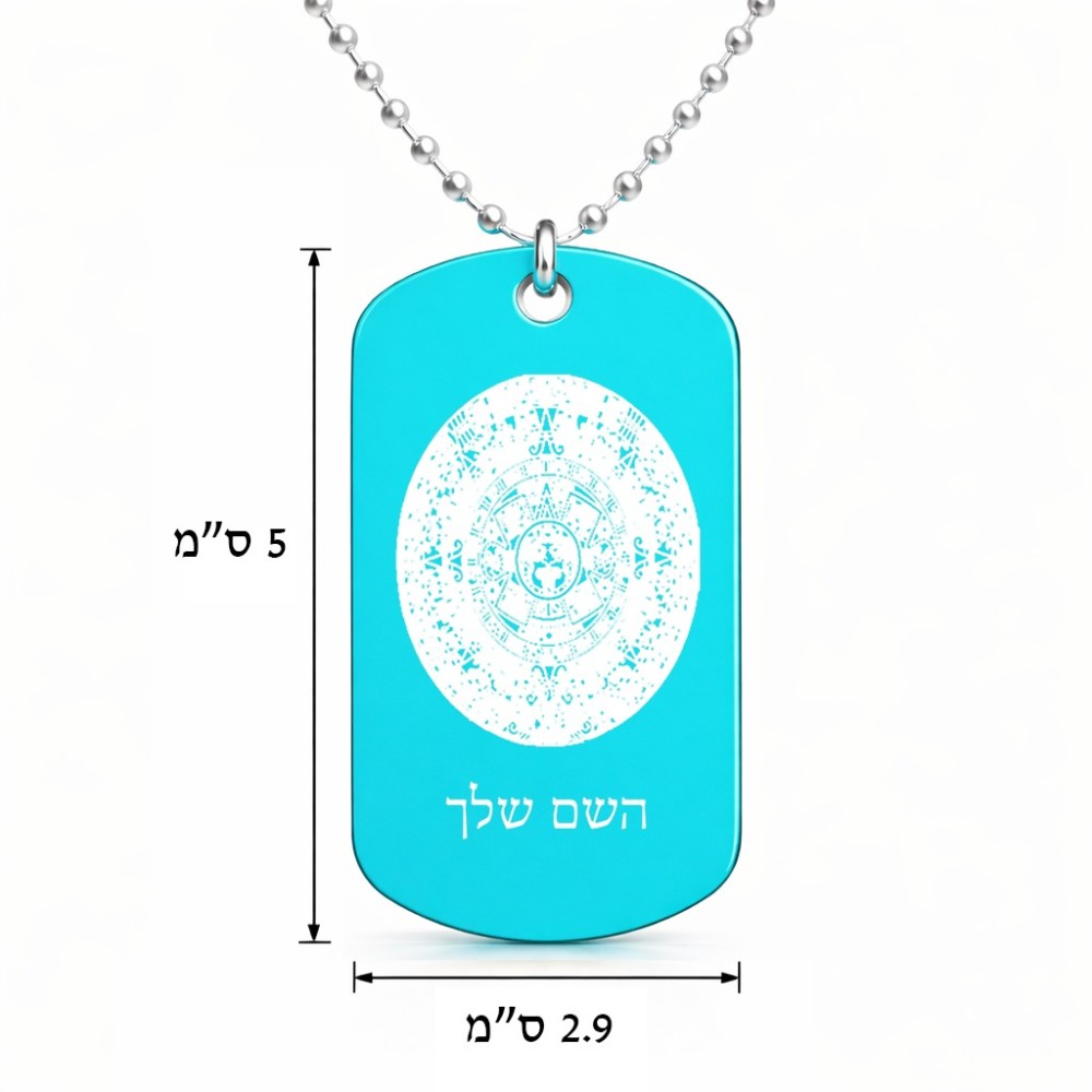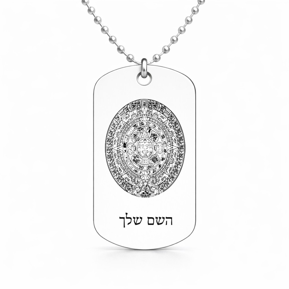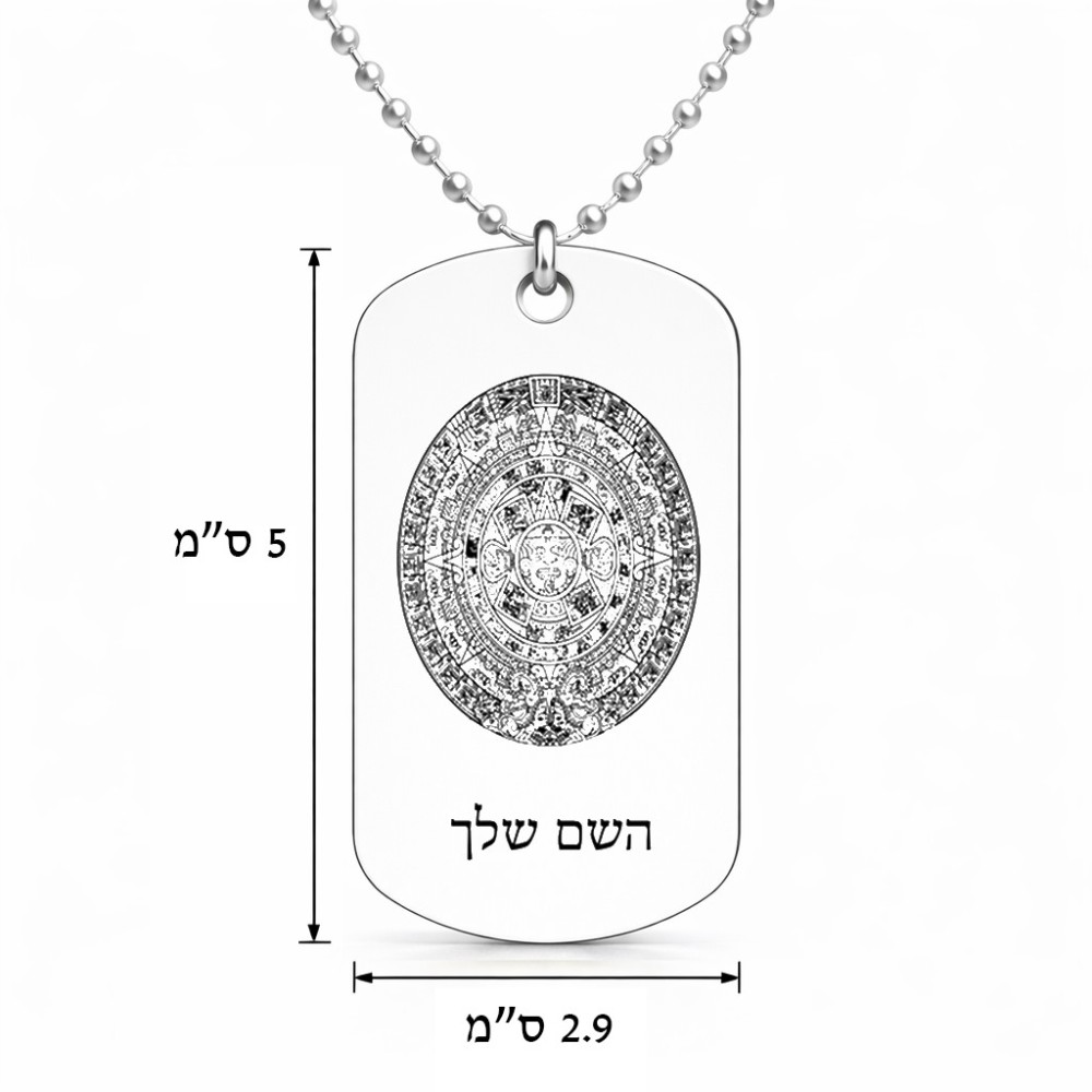 שרשרת דיסקיט מאלומיניום בעיצוב אישי עם השם שלך בעיצוב לוח שנה אצטקי של המאיה גודל הדיסקיט 2.9 × 5 ס"מ. את השם המבוקש ניתן לציין בהזמנה, אם לא צויין אנחנו ניצור קשר לבירור.