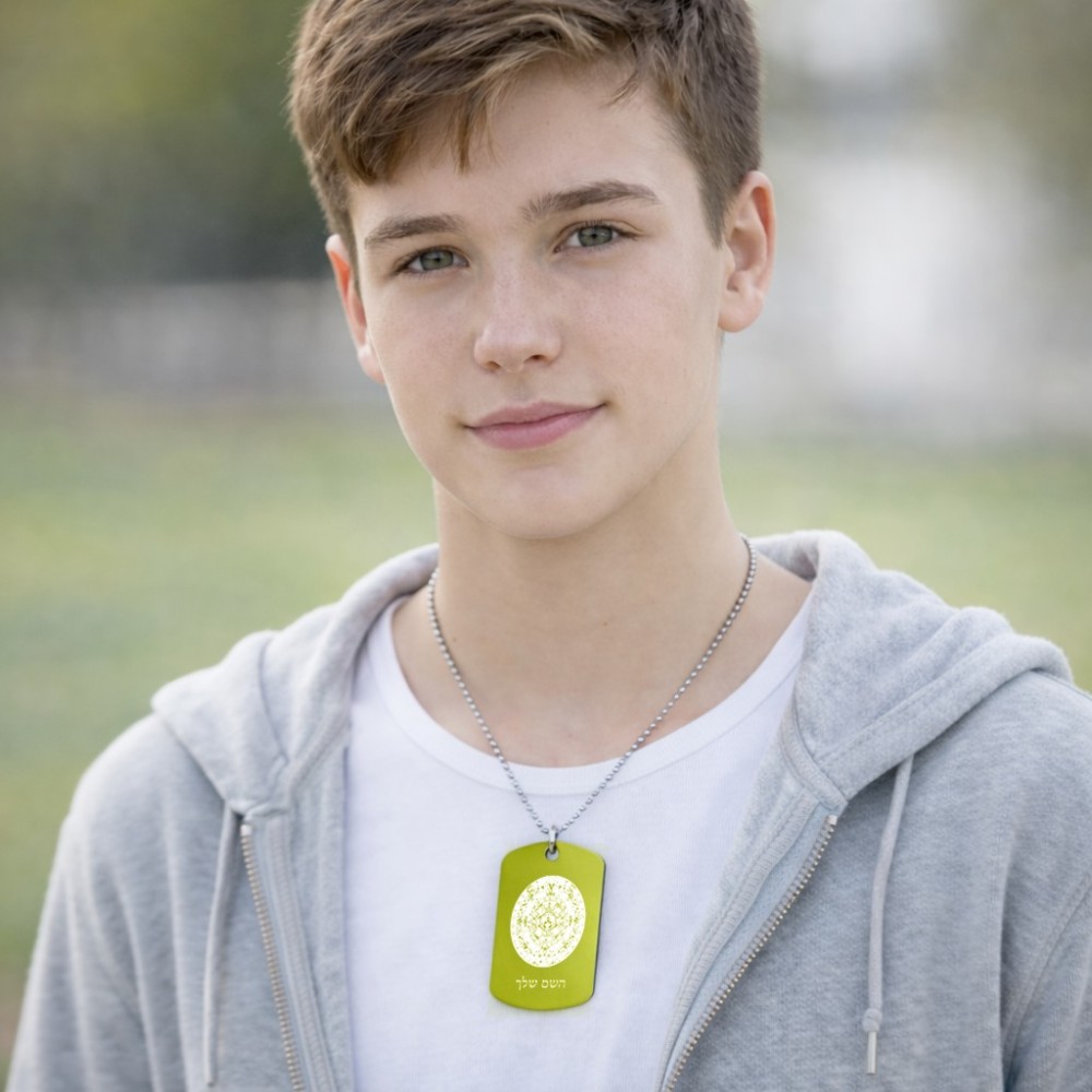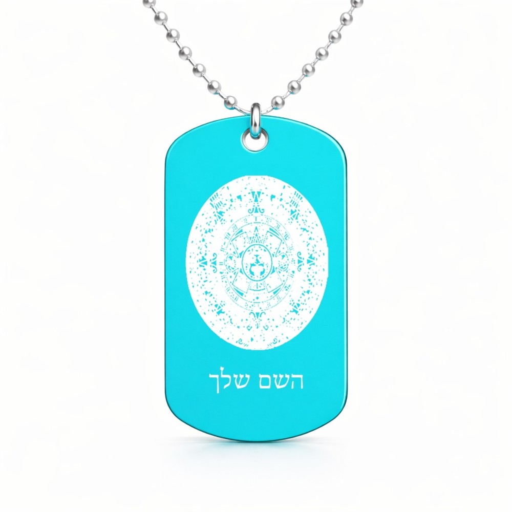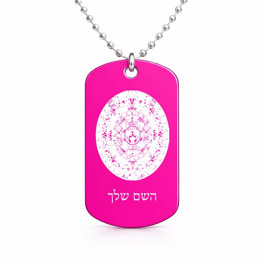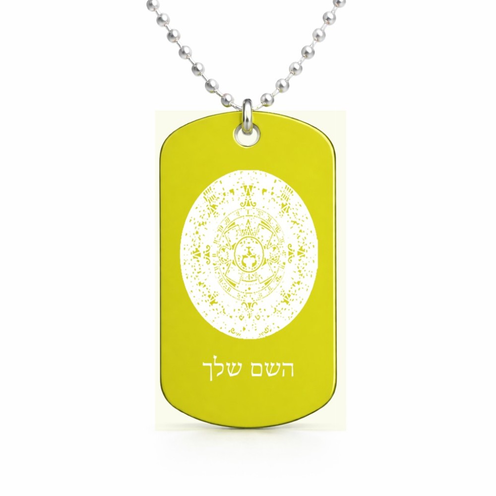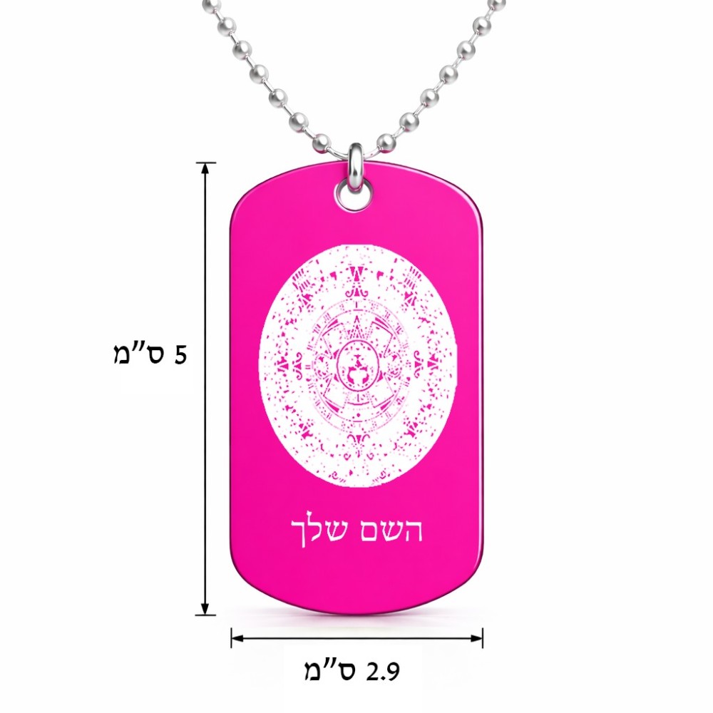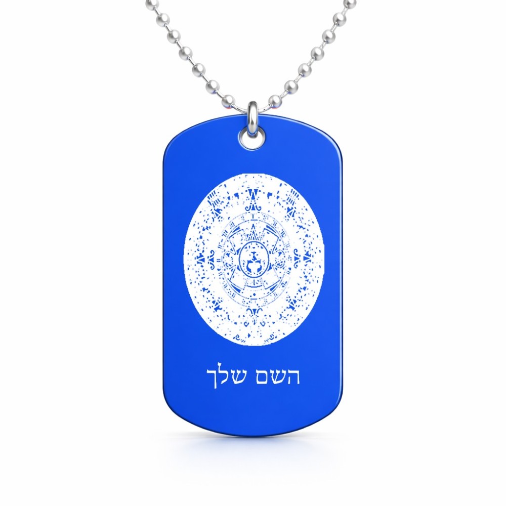 שרשרת דיסקיט מאלומיניום בעיצוב אישי עם השם שלך בעיצוב לוח שנה אצטקי של המאיה גודל הדיסקיט 2.9 × 5 ס"מ. את השם המבוקש ניתן לציין בהזמנה, אם לא צויין אנחנו ניצור קשר לבירור.