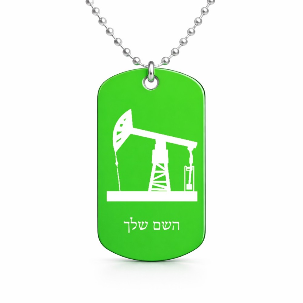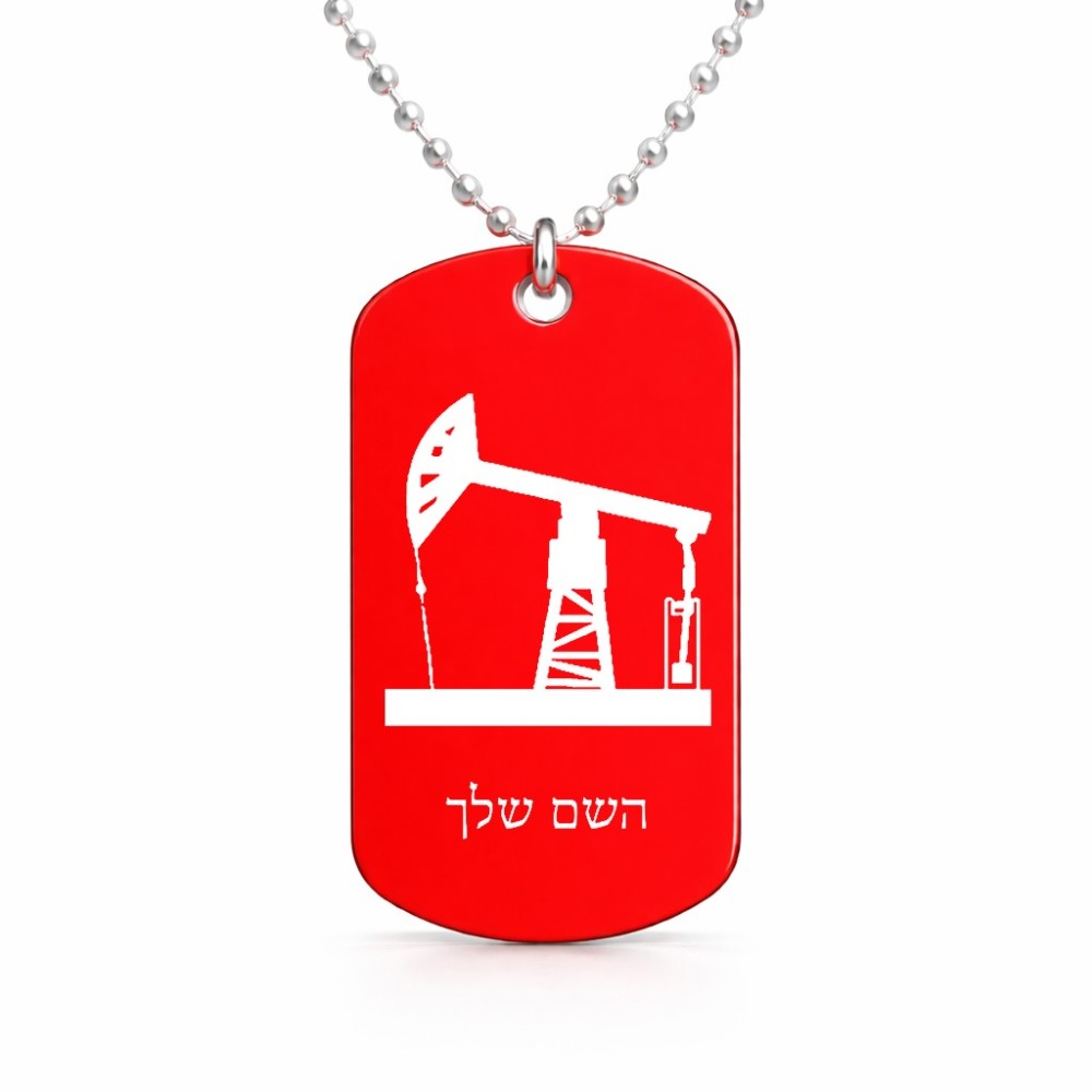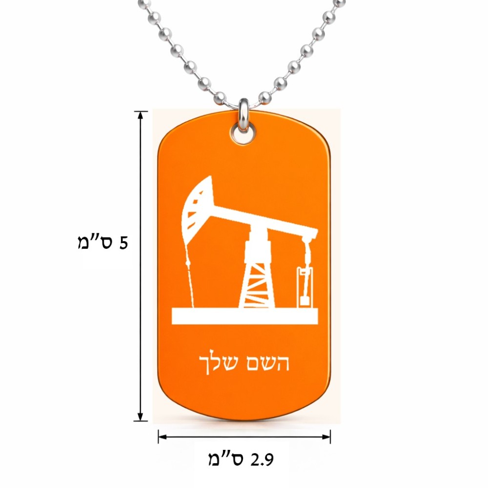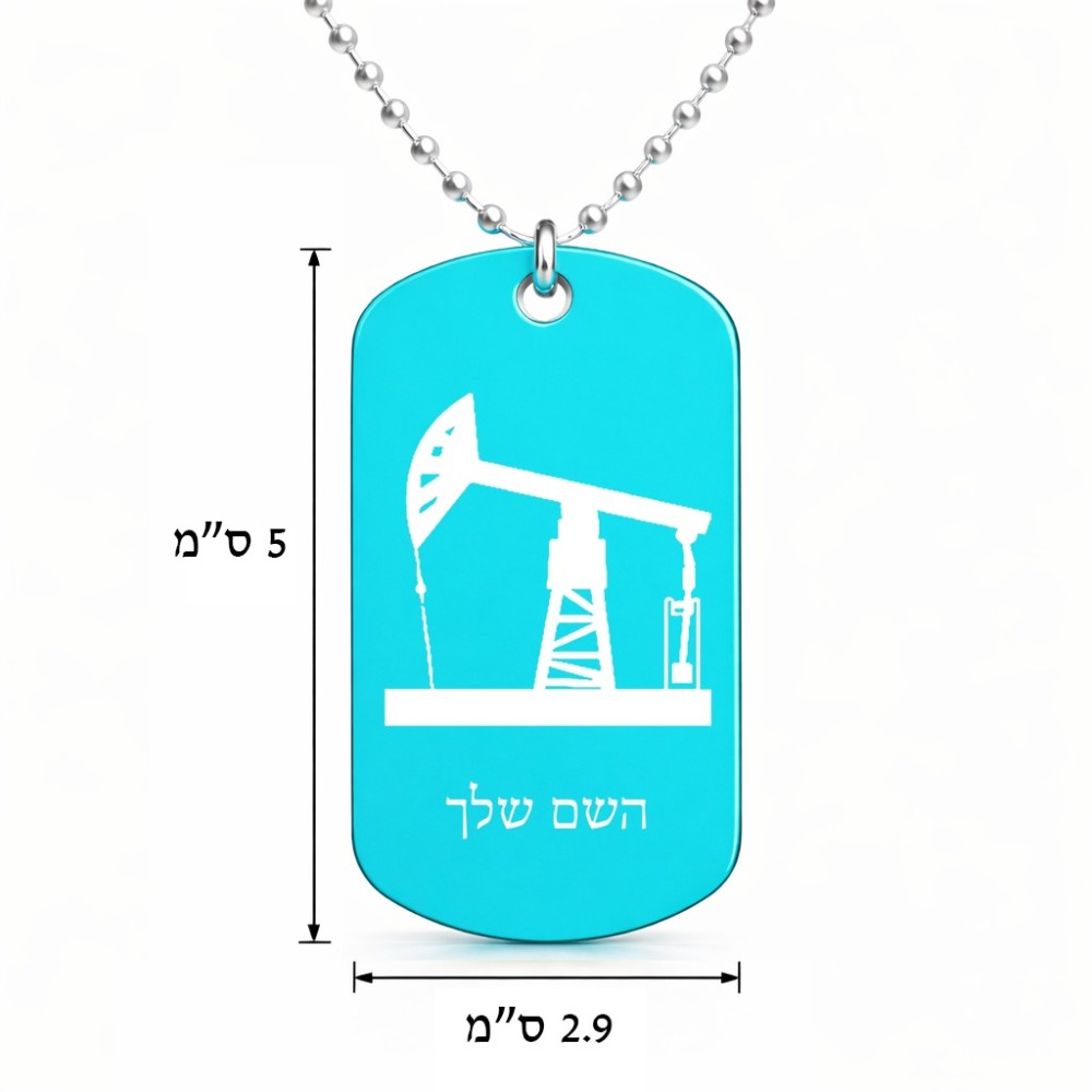שרשרת דיסקיט מאלומיניום בעיצוב אישי עם השם שלך בעיצוב באר נפט גודל הדיסקיט 2.9 × 5 ס"מ. את השם המבוקש ניתן לציין בהזמנה, אם לא צויין אנחנו ניצור קשר לבירור.