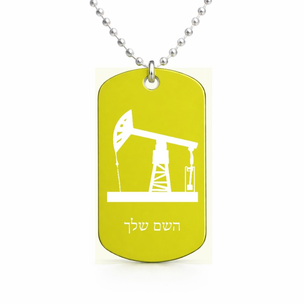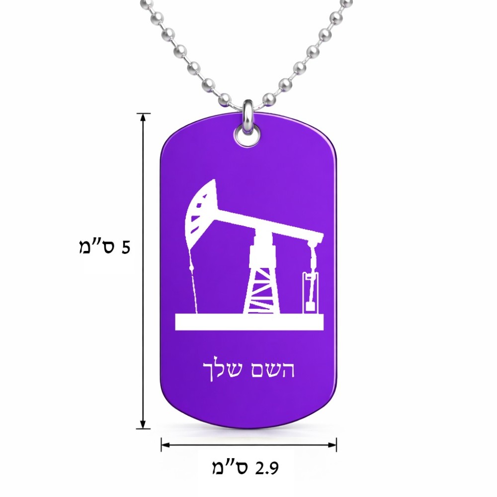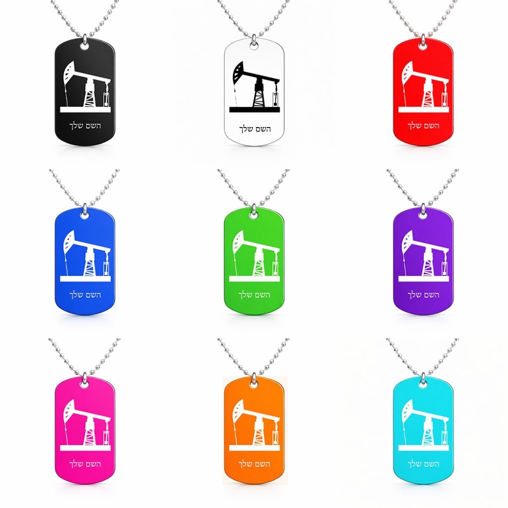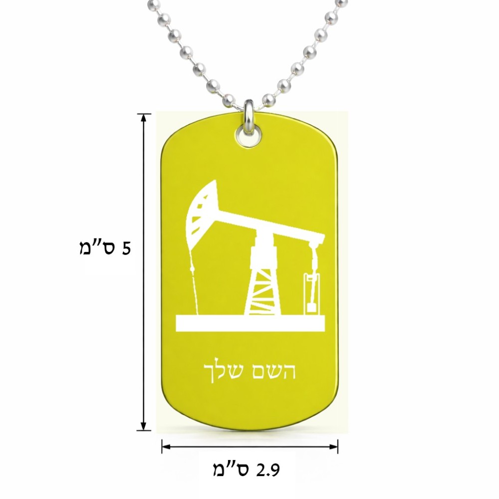 שרשרת דיסקיט מאלומיניום בעיצוב אישי עם השם שלך בעיצוב באר נפט גודל הדיסקיט 2.9 × 5 ס"מ. את השם המבוקש ניתן לציין בהזמנה, אם לא צויין אנחנו ניצור קשר לבירור.