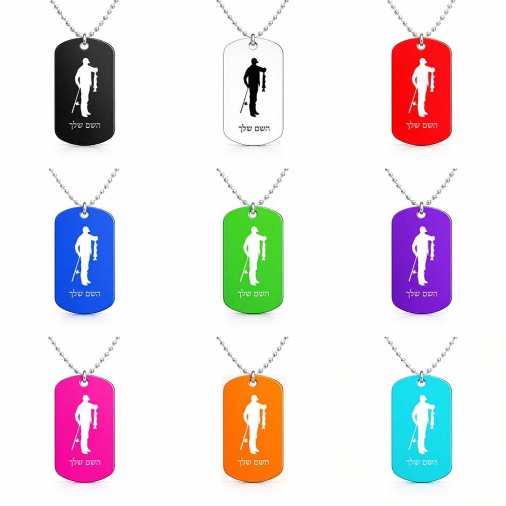 שרשרת דיסקיט מאלומיניום בעיצוב אישי עם השם שלך בעיצוב פישמן גודל הדיסקיט 2.9 × 5 ס"מ. את השם המבוקש ניתן לציין בהזמנה, אם לא צויין אנחנו ניצור קשר לבירור.