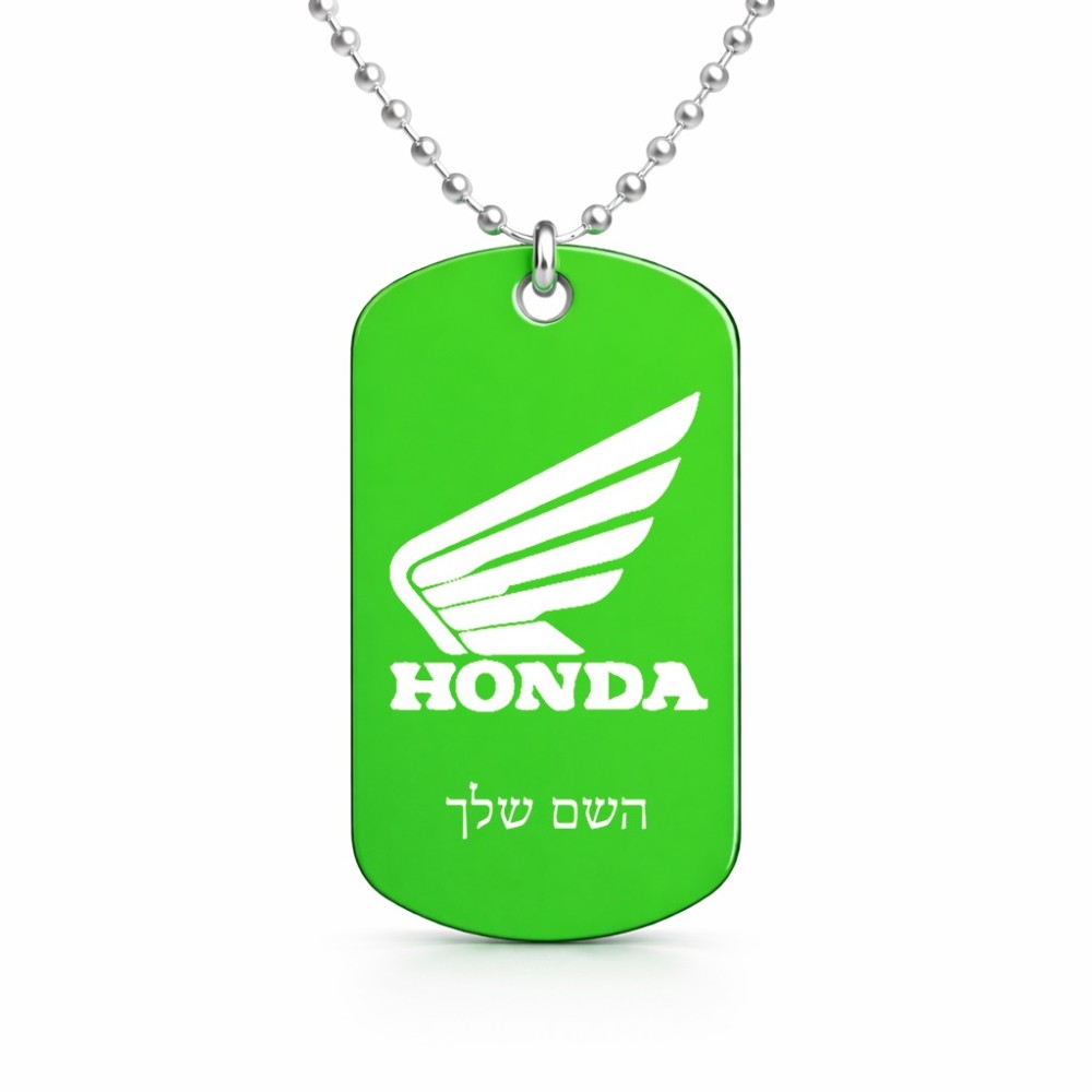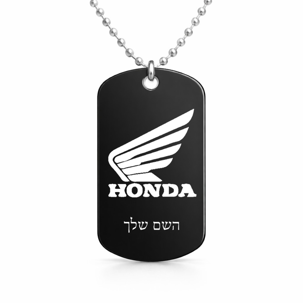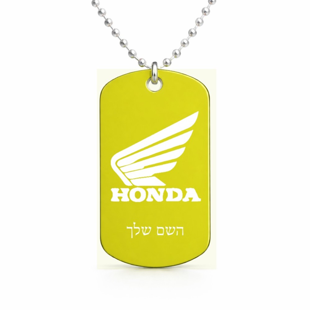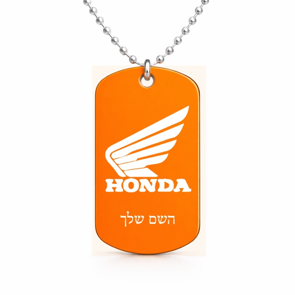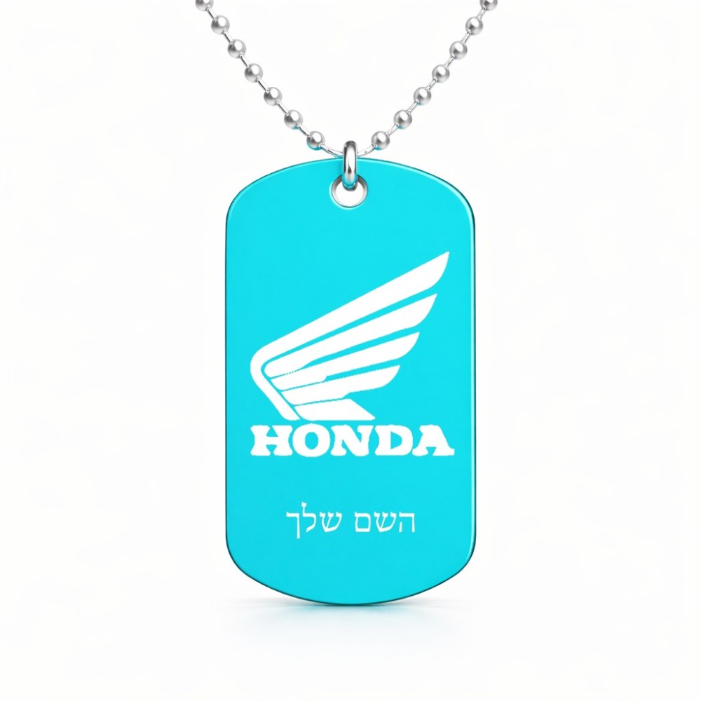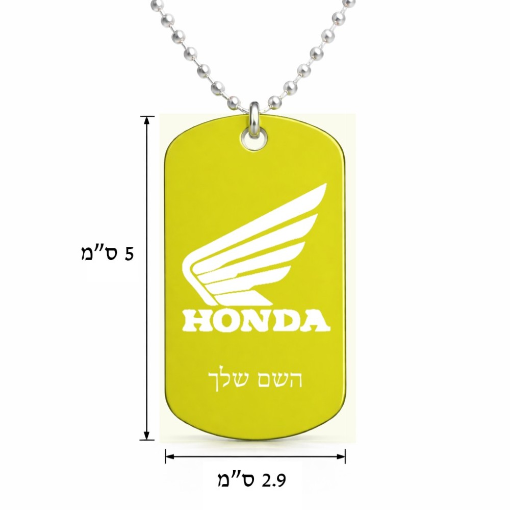 שרשרת דיסקיט מאלומיניום בעיצוב אישי עם השם שלך בעיצוב הונדה גודל הדיסקיט 2.9 × 5 ס"מ. את השם המבוקש ניתן לציין בהזמנה, אם לא צויין אנחנו ניצור קשר לבירור.