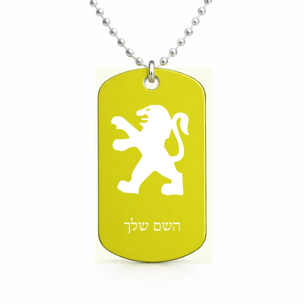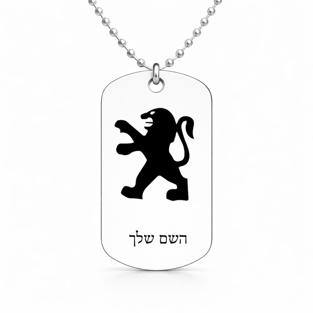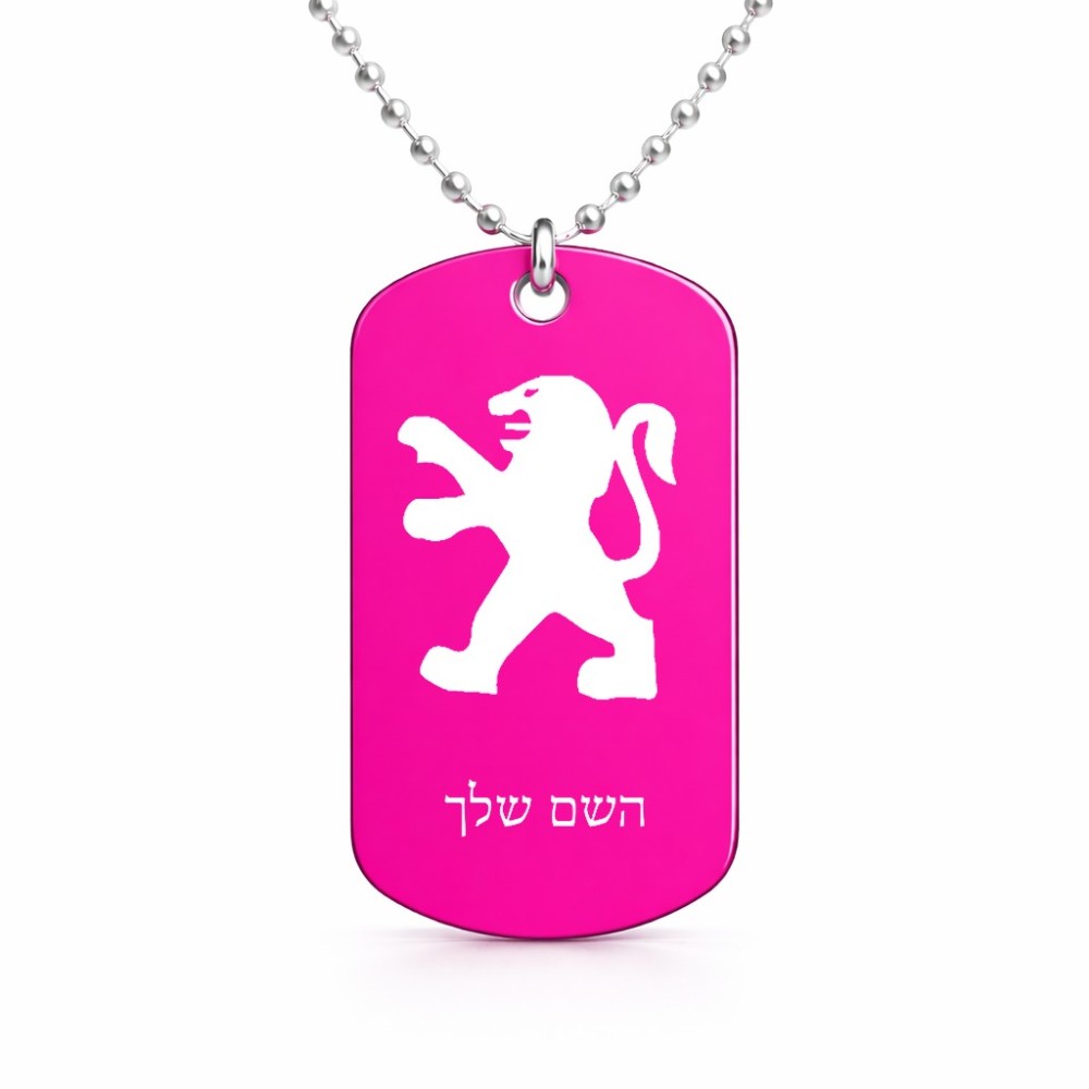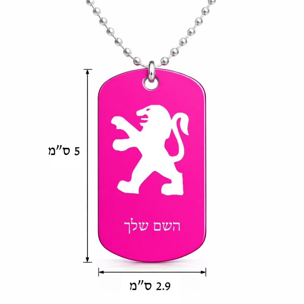 שרשרת דיסקיט מאלומיניום בעיצוב אישי עם השם שלך בעיצוב פיג'ו גודל הדיסקיט 2.9 × 5 ס"מ. את השם המבוקש ניתן לציין בהזמנה, אם לא צויין אנחנו ניצור קשר לבירור.